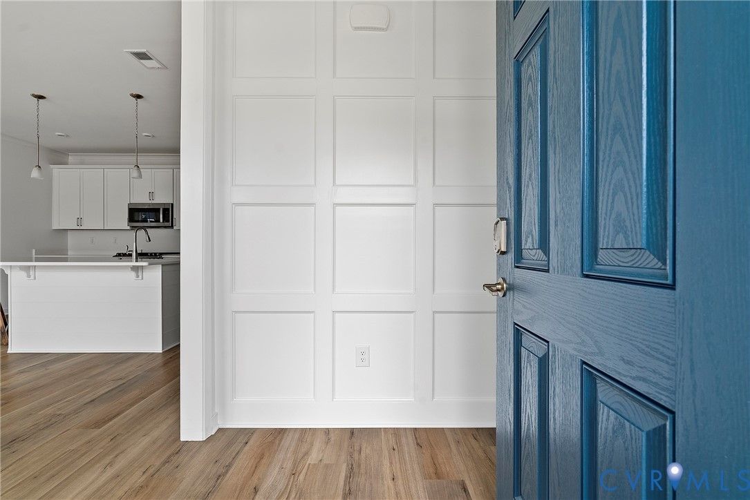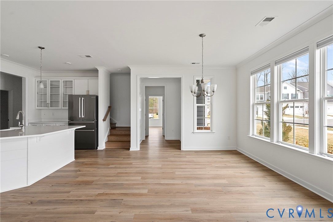 Newly built home (2024) in Mosaic at West Creek offering modern upgrades, flexible living spaces, and a prime location in Goochland County. Designed with full accessibility in mind, this thoughtfully planned 2-story home provides comfortable, barrier-free living with wide doorways, step-free access, and a layout that supports ease of mobility throughout the main level. The home features 4 bedrooms and 3 full bathrooms, including a first-floor primary suite and an additional first-floor bedroom with a full bath, providing ideal convenience for guests or multigenerational living. The open floor plan showcases luxury vinyl plank flooring throughout, crown molding, accent trim details, and custom shelving in the walk-in closets and pantry. The kitchen is beautifully appointed with quartz countertops, gas cooking, Energy Star appliances, a center island, and a breakfast nook, creating the perfect space for everyday living and entertaining. Additional features include a finished bonus/flex room, finished 2-car garage, and two laundry rooms—one conveniently located on the first floor and a second on the upper level—offering added flexibility and functionality for busy households. The home also offers 9+ ft ceilings, recessed lighting, a tray ceiling in the primary suite, and abundant natural light throughout. Exterior highlights include Hardiplank siding, an irrigation system, outdoor lighting, porch and pathway lighting, plus a gas hookup for a grill or generator. Efficient systems include natural gas heat, a tankless gas water heater, and dual-zone HVAC. Residents enjoy community amenities including a clubhouse, pool, exercise room, jogging paths, and low-maintenance living with yard care, snow removal, and trash service included.