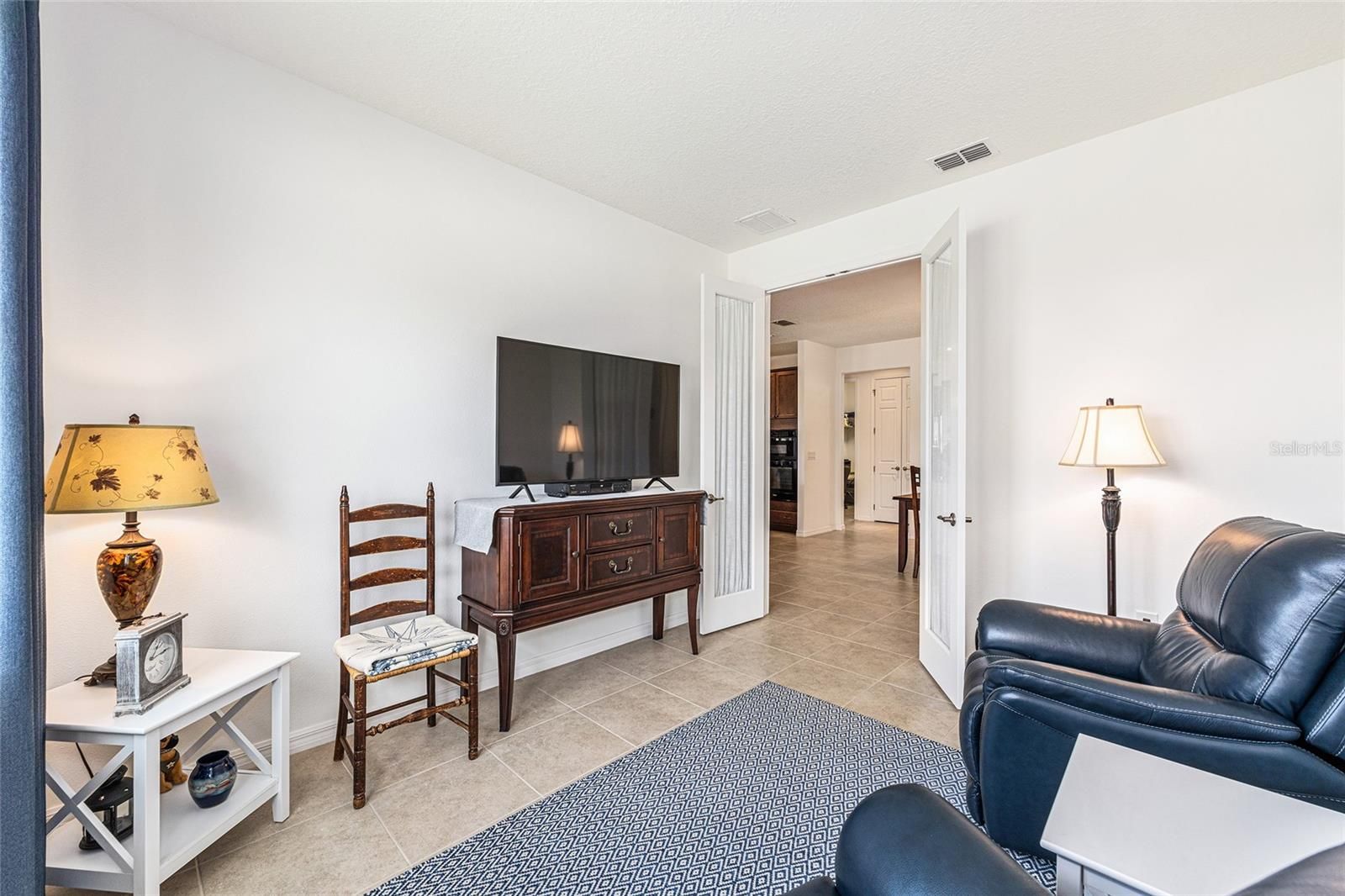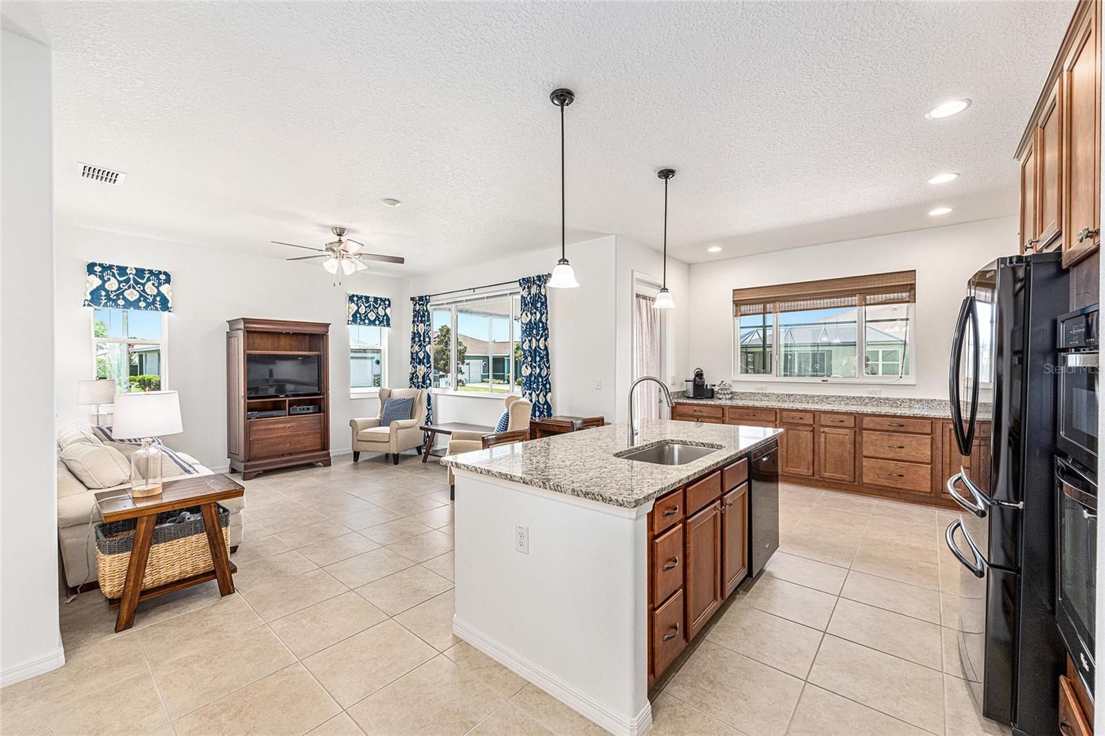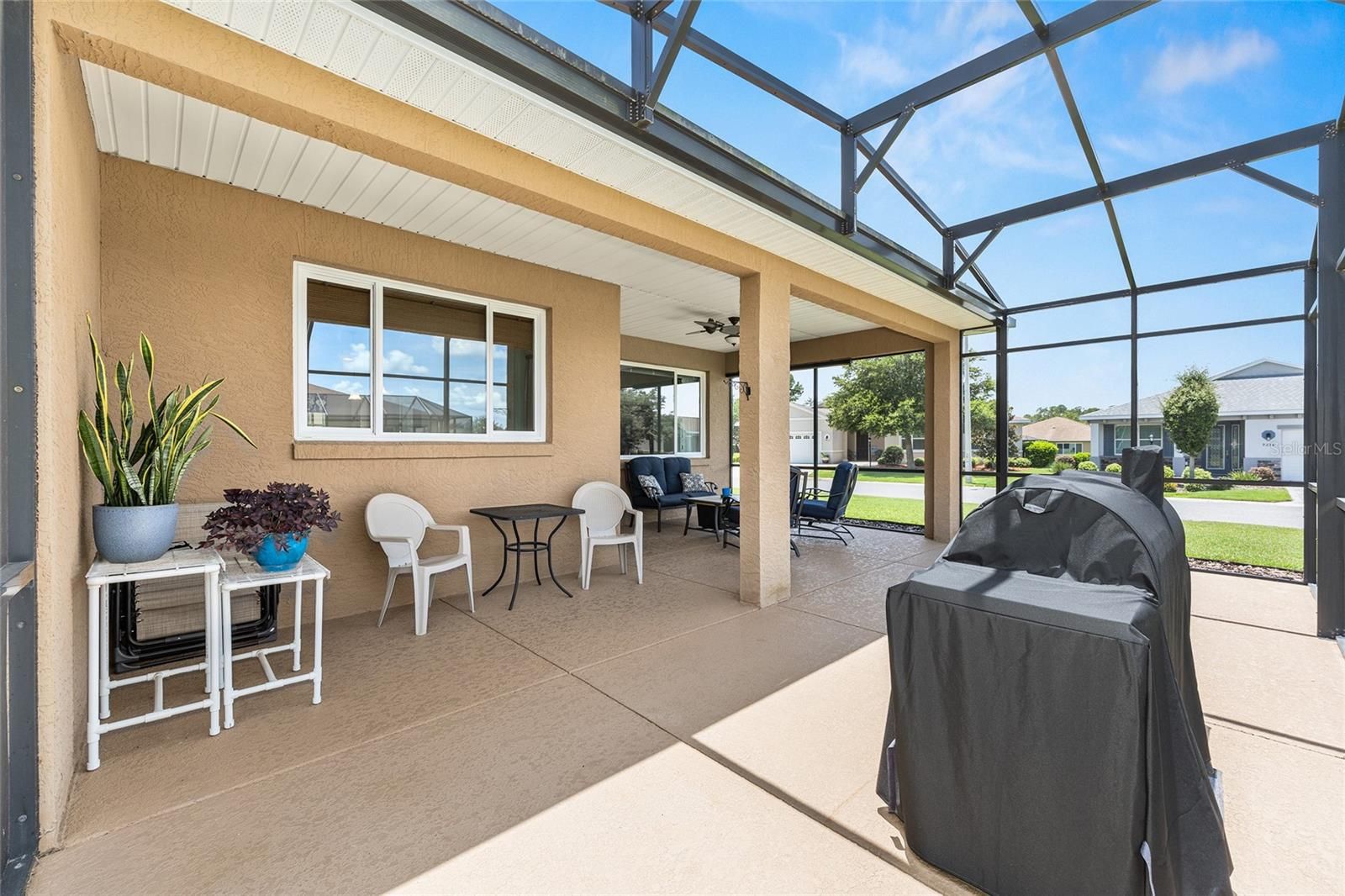 Welcome to this immaculate Yvette Floorplan located in Providence at On Top of the World where the beautiful Tortoise & The Hare Golf Course is located. Beautifully landscaped with mature trees gives this home great curb appeal. This Yvette is located on a corner lot near the Arbors recreation center. This meticulously maintained split 2 bedroom, 2 bathroom, with a flex room and 2 car garage home boasts a wealth of features designed for both elegance and functionality. This open concept home features a gourmet kitchen, tile floors throughout and rounded corners add elegant architectural style. The kitchen has a huge picture window overlooking the peaceful extended lanai, featuring quartz counters, center island, and beautiful staggered cabinets with crown molding. Solid wood cabinets, a large pantry, tons of countertop space and cabinets for maximum storage. The main bedroom has an oversized closet and an en suite with separate vanity sinks and a large walk-in shower. This home features a peaceful lanai which has been extended by 10' to allow lots of space for entertaining and is the perfect spot for relaxing year-round. This home is so thoughtfully planned that even the laundry room and garage are designed with space for extra storage. The garage features an extra large utility sink. On Top of the World is Ocala's premier active adult community featuring golf cart access to 3 shopping centers.