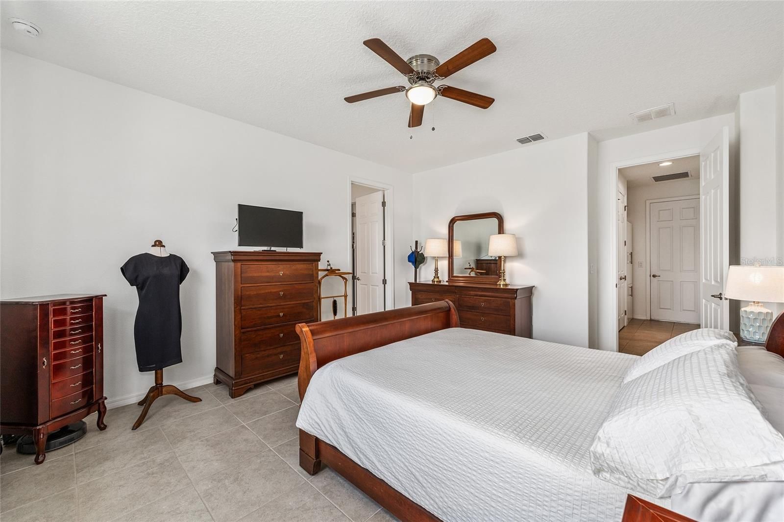 - Ceiling Fan(s), High Ceilings, Open Floorplan, Main Level Primary, Solid Surface Counters, Solid-Wood Cabinets, Split Bedrooms