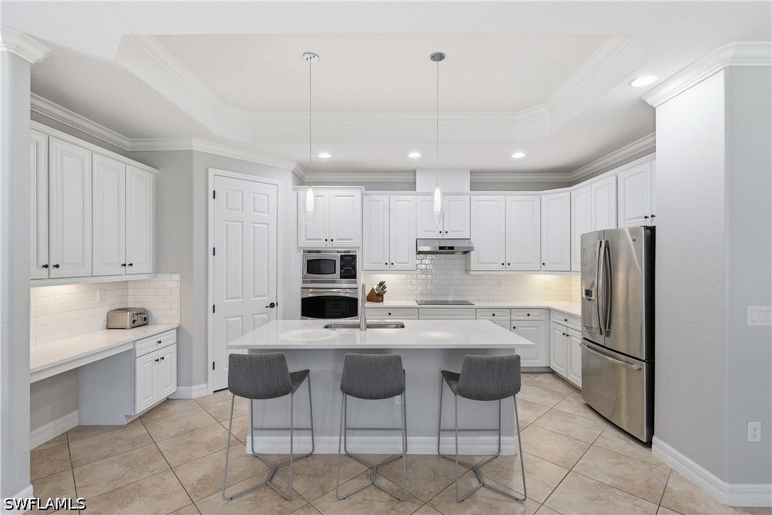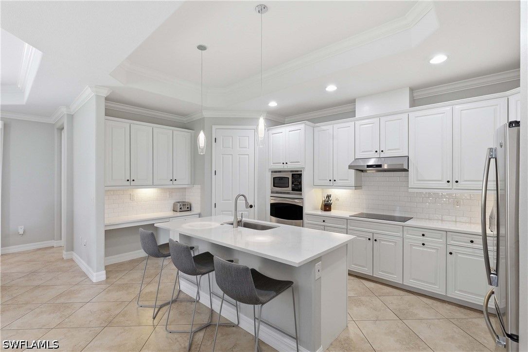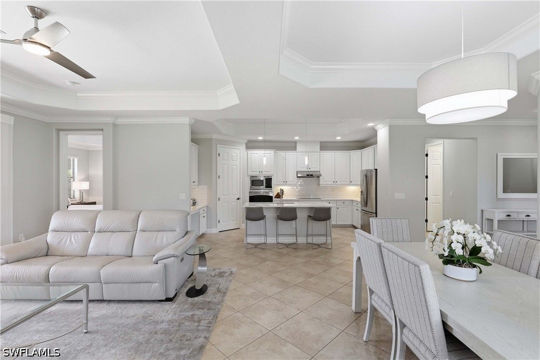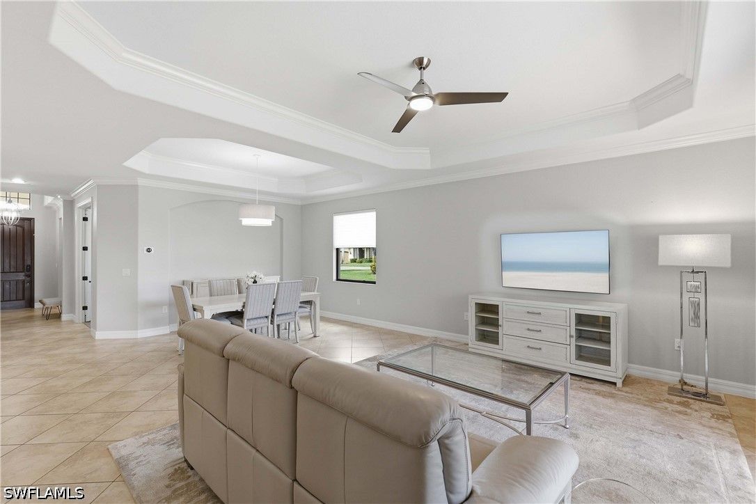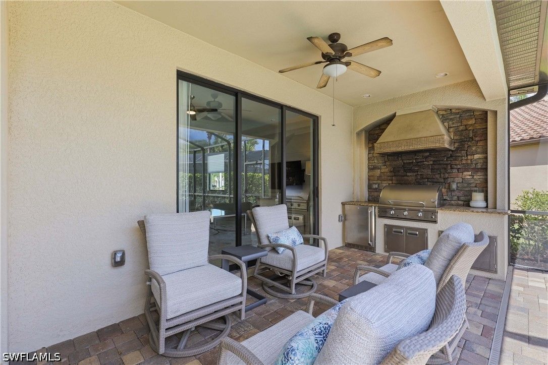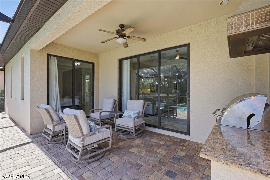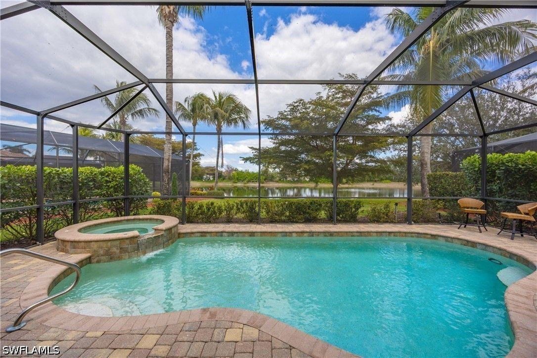Welcome to this beautifully updated Sophia model in the highly sought-after community of Treviso Bay, offering 2,035 square feet of thoughtfully designed living space and a deeded TPC golf membership. This 3-bedroom + den/office, 3-bath single-family home blends comfort, style, and resort living. The open-concept floor plan features tile flooring throughout with luxury vinyl in the den, creating a seamless and modern feel. The kitchen has been tastefully refreshed with painted cabinetry, new quartz countertops, a new induction cooktop and hood, and flows effortlessly into the main living and dining areas—perfect for entertaining. Each bathroom has been upgraded with painted cabinets, new quartz counters and new Toto toilets. A new hot water heater (January 2026) adds peace of mind. Step outside to your private oasis where the saltwater-converted pool and spa overlook a tranquil lake view. The lanai features new screens and a fully equipped outdoor kitchen with a new 36” grill, ideal for enjoying Southwest Florida’s indoor-outdoor lifestyle year-round. Additional highlights include a 2-car garage and all the luxury amenities Treviso Bay is known for, including championship TPC golf, resort-style pool, fitness center, tennis, dining, and more. Experience the best of Naples living in this move-in-ready golf home.