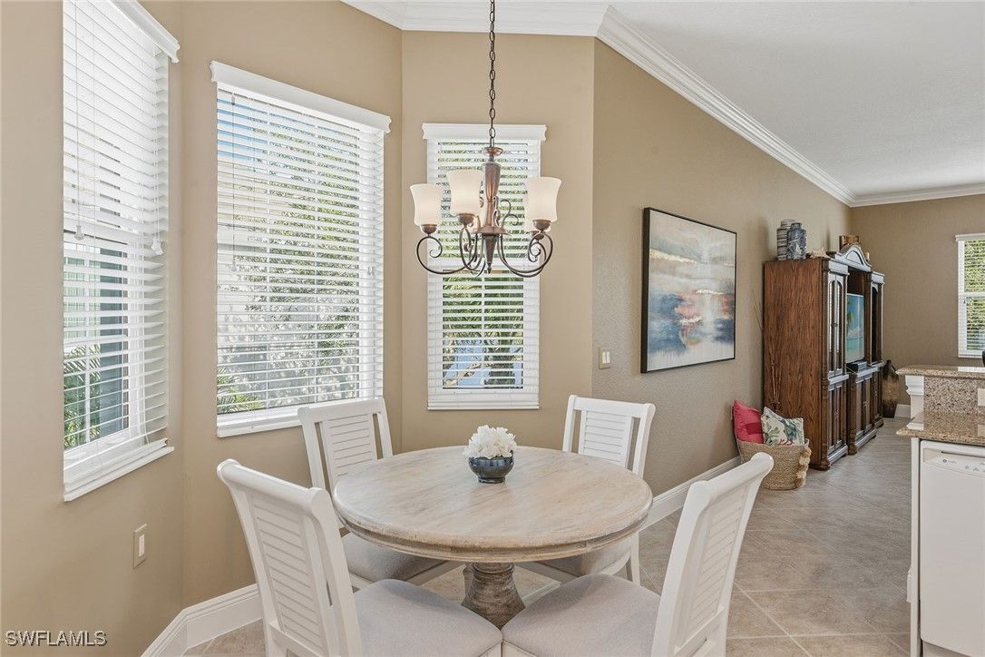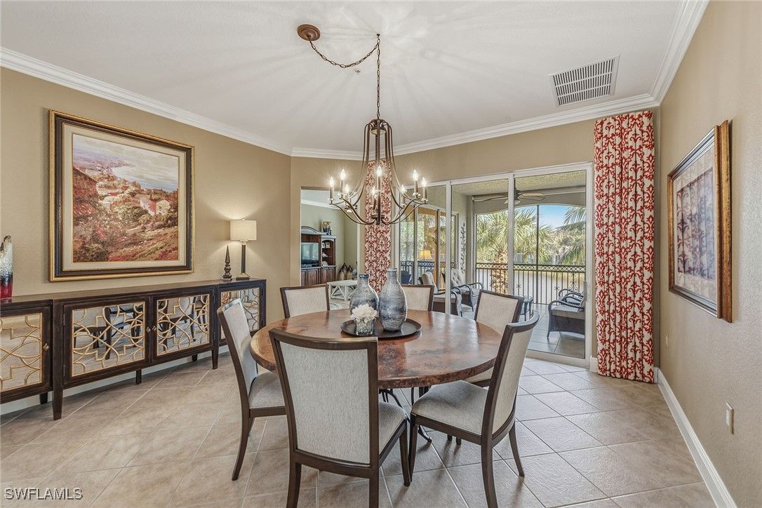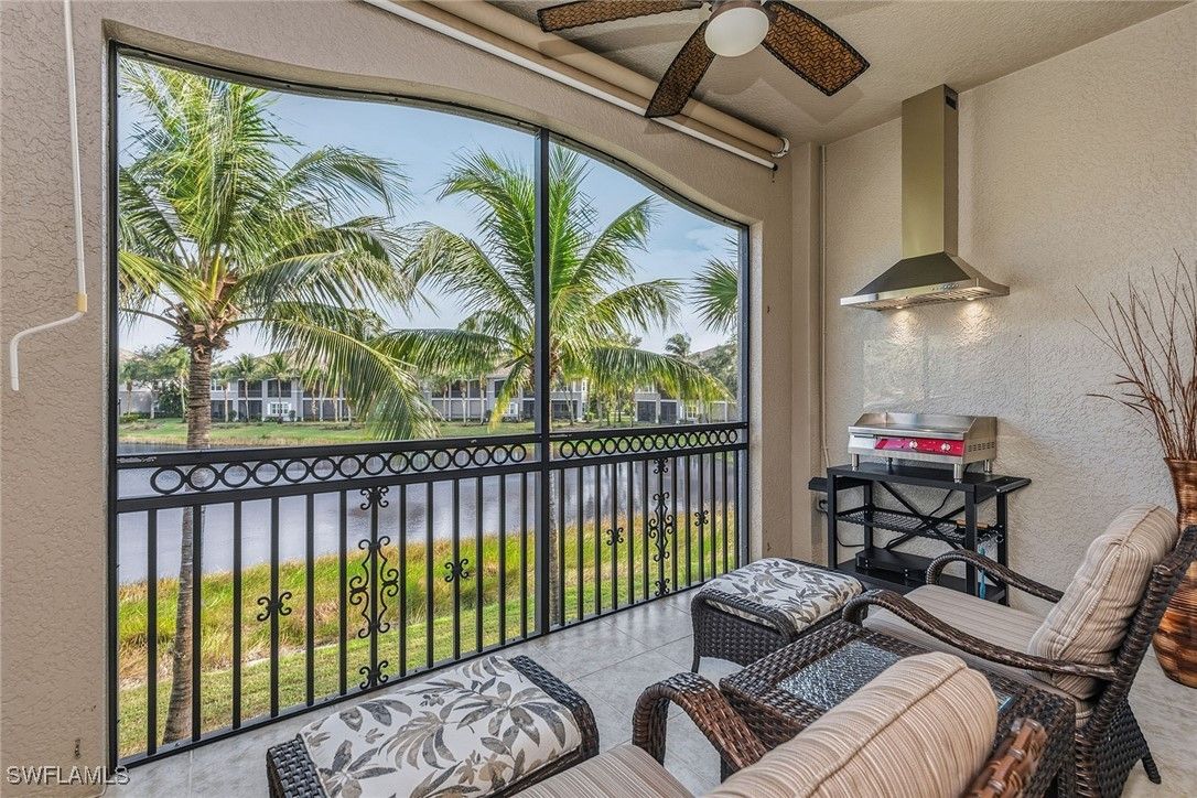 Enjoy peaceful eastern exposure and serene lake views from this spacious three-bedroom plus den, three-bath end-unit residence in the desirable Varenna neighborhood of Fiddler’s Creek. With a generous 3,029 square feet of living space, a two-car garage, impact windows and ability to add an elevator, this beautifully maintained second-floor coach home, quality-built by Gulf Bay, offers exceptional comfort, privacy, and livability. A paver driveway and new tile roof enhance the exterior, while a large screened-in lanai overlooking the lake provides an inviting space for sunrises, morning light, outdoor dining, and relaxation, complete with porcelain tile flooring, two ceiling fans, roll-down shades, shutters for slider protection, and an electric cooktop/griddle with stainless steel hood. Inside, a spacious foyer with two walk-in closets introduces the bright, open interior, where diagonal-set tile flooring, crown molding and window coverings enhance the main living areas. The kitchen features quality Raffinati Italian cabinetry, granite countertops and GE Profile appliances, including a natural gas range, along with a breakfast bar and an eat-in nook with bay windows. Adjacent to the kitchen, the family room offers a comfortable gathering space with direct access to the lanai. The living room also opens to the lanai and includes a formal dining area along with a free-standing bar and entertainment area, creating an elegant and flexible setting for everyday living and entertaining while highlighting the tranquil lake views. The owner’s suite offers two walk-in closets and sliders opening to the lanai. Its spacious bath includes dual vanities, a soaking tub and a walk-in shower with a glass enclosure. The front guest bedroom includes a private balcony on west side of the home to enjoy sunsets, and an en-suite bath with a walk-in shower. The second guest bedroom offers an en-suite bath featuring a shower-tub combination that is also accessible from the hallway for added convenience. A den with double doors serves as an ideal home office, study or flexible retreat. Additional highlights include wood stairs, an alarm system, a well-equipped laundry room with storage and a utility sink, and a two-car garage with a painted floor and a tankless gas water heater. Residents enjoy an award-winning, gated community with newly enhanced amenities, including a refreshed resort-style pool, updated Gator Grille and 10 new pickleball courts. The clubhouse offers fitness and spa facilities, tennis, pickleball, dining and activity and event calendar. Optional memberships with no golf waitlist provide access to the championship course, new clubhouse, marina and beach club. CDD bond is paid in full, resulting in tax bill savings for the buyer!