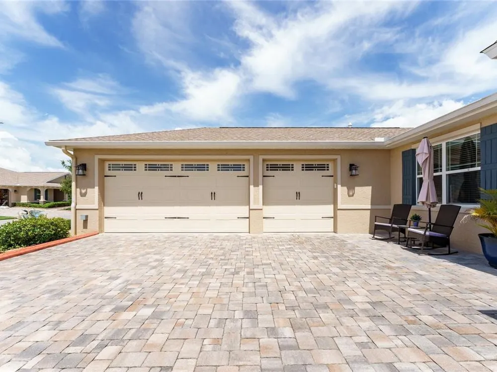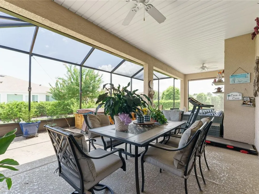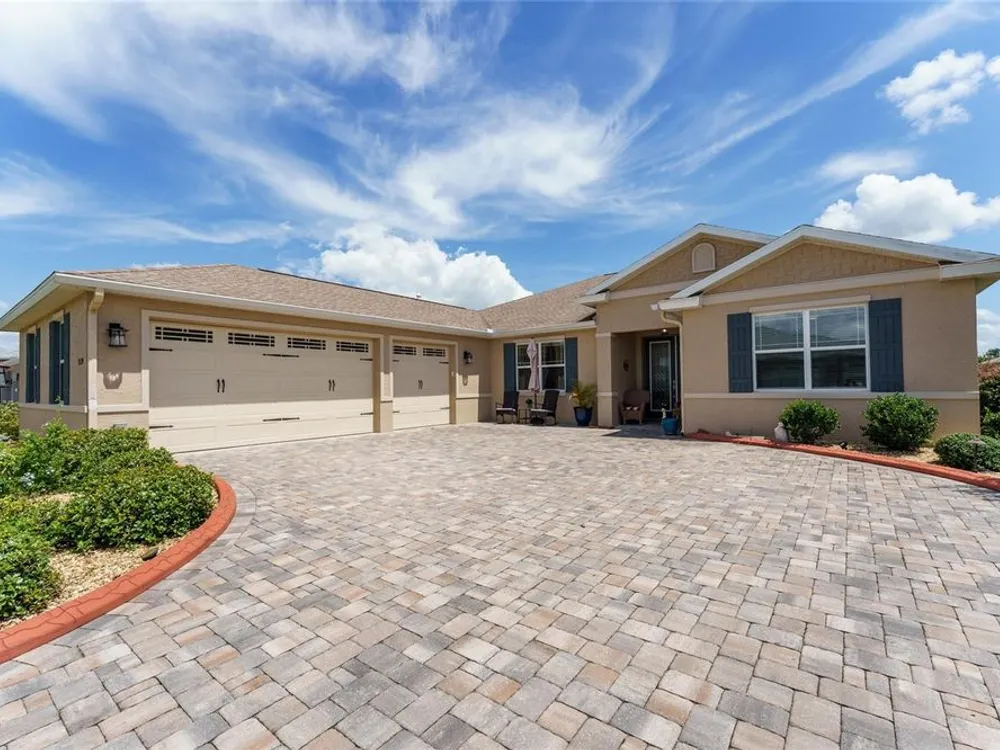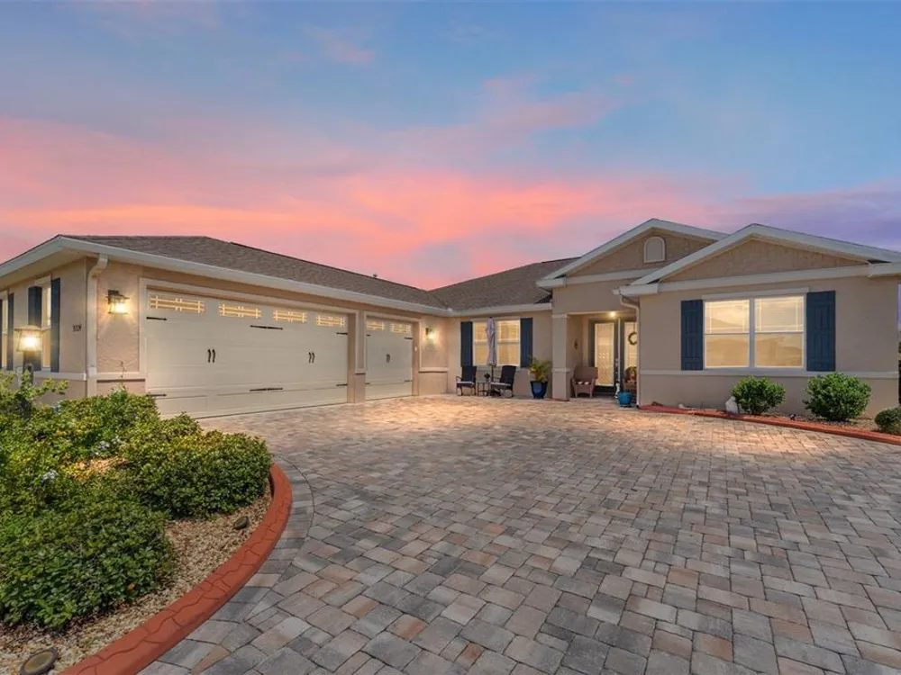 Welcome to Candler Hills in On Top of the World – West Newcastle! This beautifully designed Northhampton Estate Series home offers just under 2,700 square feet of thoughtfully planned living space, featuring 3 spacious bedrooms, 3 full bathrooms, and a 3-car garage. Step through the leaded glass entry doors into a light-filled Great Room with a tray ceiling, flowing seamlessly into a flex room perfect for an office, den, or hobby space. The split-bedroom floor plan provides privacy for all, with the Primary Suite boasting a tray ceiling, an oversized walk-in closet, dual vanities, a sit-down makeup area, a private water closet, and a roll-in shower. The heart of the home is the gourmet kitchen, complete with stainless steel appliances, a gas range, expansive granite countertops, a center breakfast bar, generous pantry, and abundant cabinetry for all your storage needs. A private en-suite in the second bedroom makes an ideal guest retreat, while the third bedroom is located in its own wing—perfect for a triple split layout. The indoor laundry room includes a utility sink and additional storage. Enjoy Florida living year-round in the enclosed 10'x31' lanai, half-covered and half-screened, offering an ideal space for entertaining or relaxing. A paver driveway leads to the spacious three-car garage, and the meticulously landscaped yard features curbed garden beds. This home is a SMART home also energy-efficient with PAID-FOR SOLAR PANELS! All of this is located just a short golf cart ride or walk from The Lodge Clubhouse and Pool. Residents of On Top of the World enjoy an unmatched resort-style lifestyle with multiple clubhouses and pools, fitness centers, pickleball, RC flying field, dog parks, clubs, cultural and educational activities at Master the Possibilities, and 24/7 gated entries for peace of mind. Don't miss the opportunity to own this exceptional home in one of Ocala’s most desirable 55+ communities. Great price for this package!