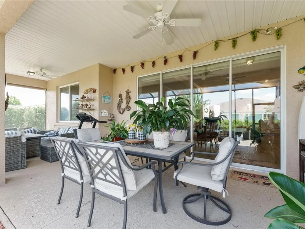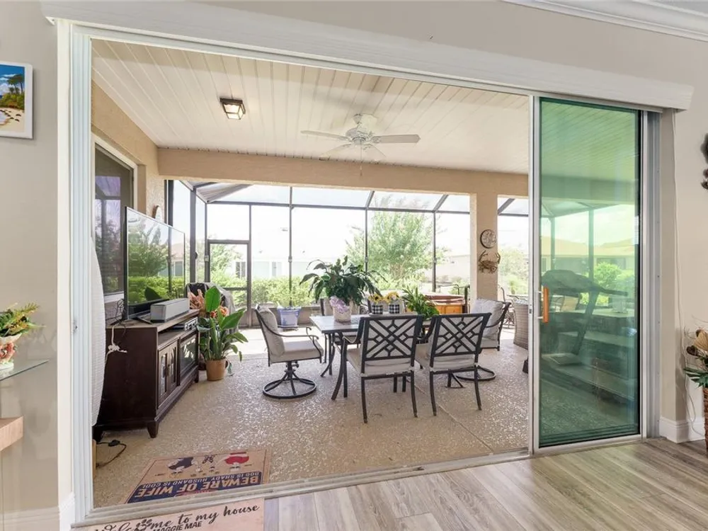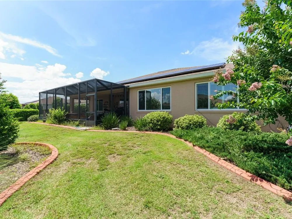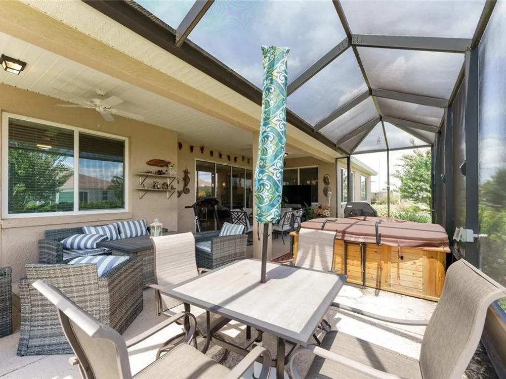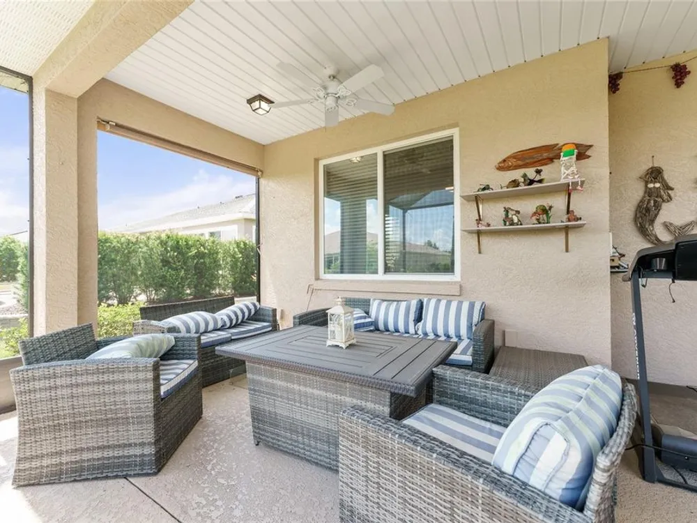 Welcome to Candler Hills in On Top of the World – West Newcastle! This beautifully designed Northhampton Estate Series home offers just under 2,700 square feet of thoughtfully planned living space, featuring 3 spacious bedrooms, 3 full bathrooms, and a 3-car garage. Step through the leaded glass entry doors into a light-filled Great Room with a tray ceiling, flowing seamlessly into a flex room perfect for an office, den, or hobby space. The split-bedroom floor plan provides privacy for all, with the Primary Suite boasting a tray ceiling, an oversized walk-in closet, dual vanities, a sit-down makeup area, a private water closet, and a roll-in shower. The heart of the home is the gourmet kitchen, complete with stainless steel appliances, a gas range, expansive granite countertops, a center breakfast bar, generous pantry, and abundant cabinetry for all your storage needs. A private en-suite in the second bedroom makes an ideal guest retreat, while the third bedroom is located in its own wing—perfect for a triple split layout. The indoor laundry room includes a utility sink and additional storage. Enjoy Florida living year-round in the enclosed 10'x31' lanai, half-covered and half-screened, offering an ideal space for entertaining or relaxing. A paver driveway leads to the spacious three-car garage, and the meticulously landscaped yard features curbed garden beds. This home is a SMART home also energy-efficient with PAID-FOR SOLAR PANELS! All of this is located just a short golf cart ride or walk from The Lodge Clubhouse and Pool. Residents of On Top of the World enjoy an unmatched resort-style lifestyle with multiple clubhouses and pools, fitness centers, pickleball, RC flying field, dog parks, clubs, cultural and educational activities at Master the Possibilities, and 24/7 gated entries for peace of mind. Don't miss the opportunity to own this exceptional home in one of Ocala’s most desirable 55+ communities. Great price for this package!