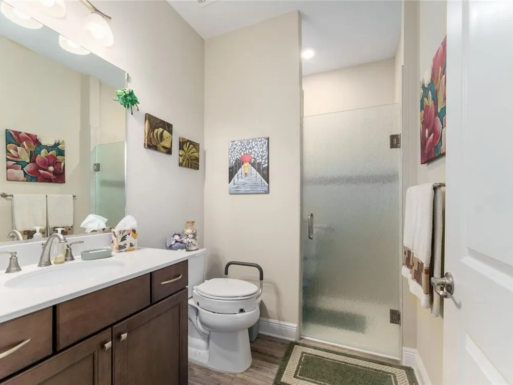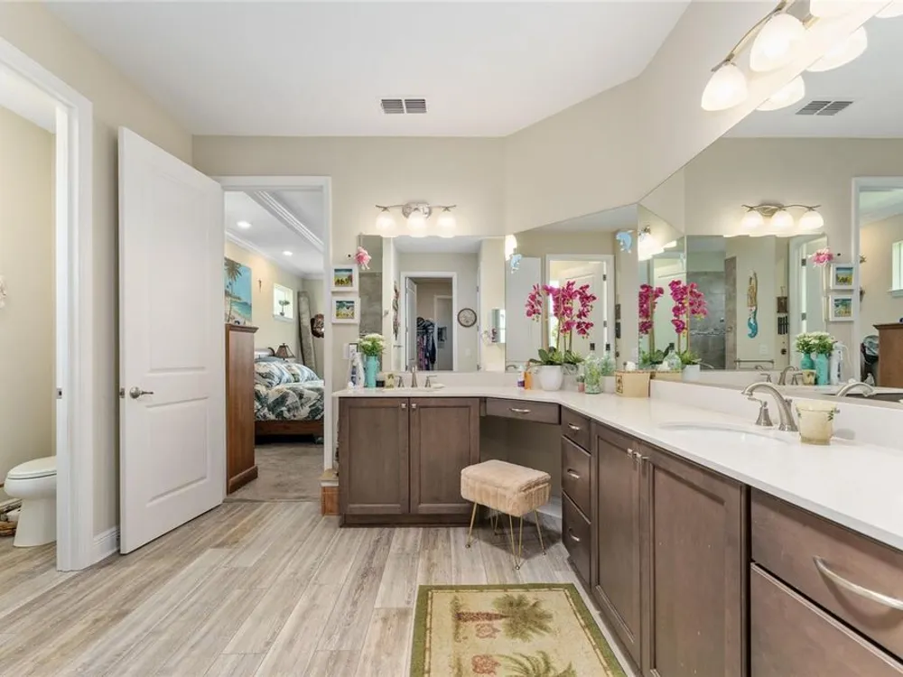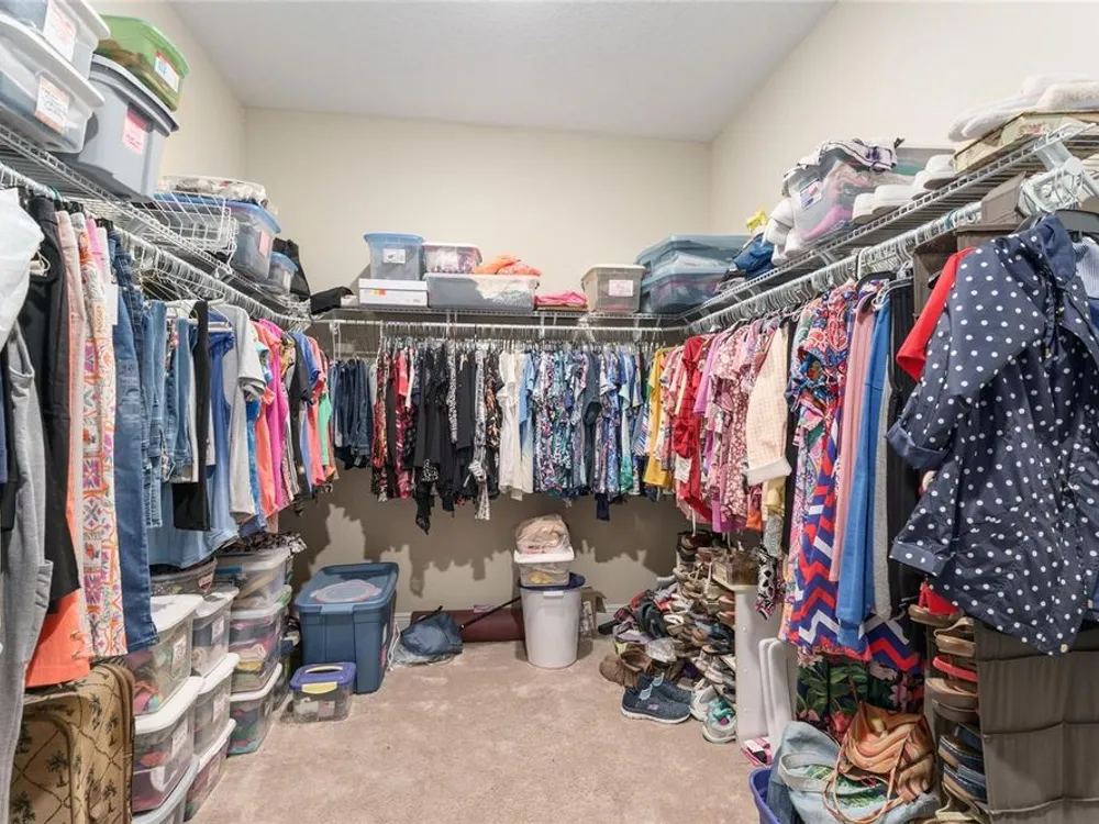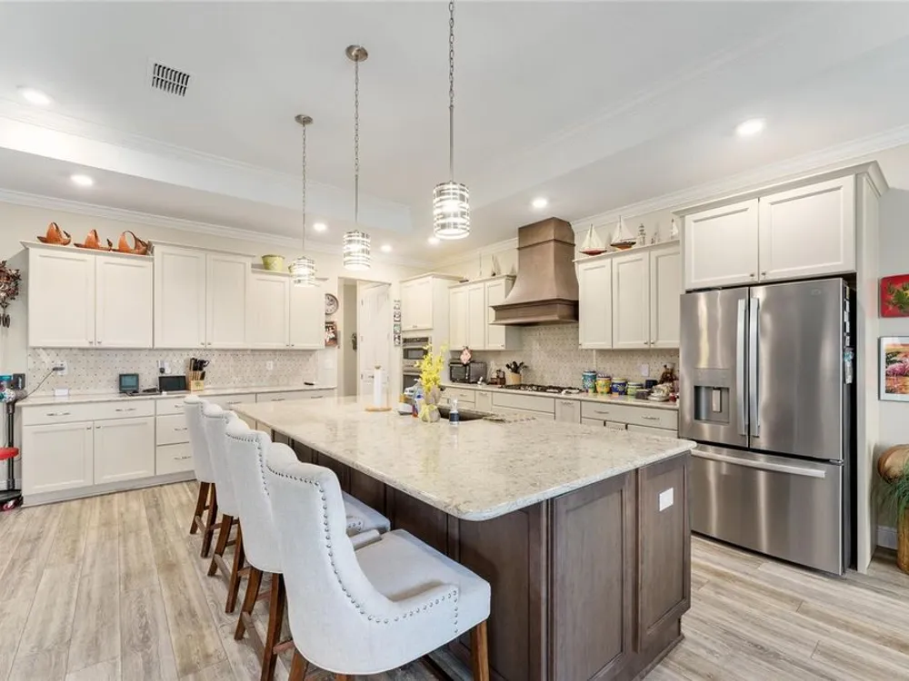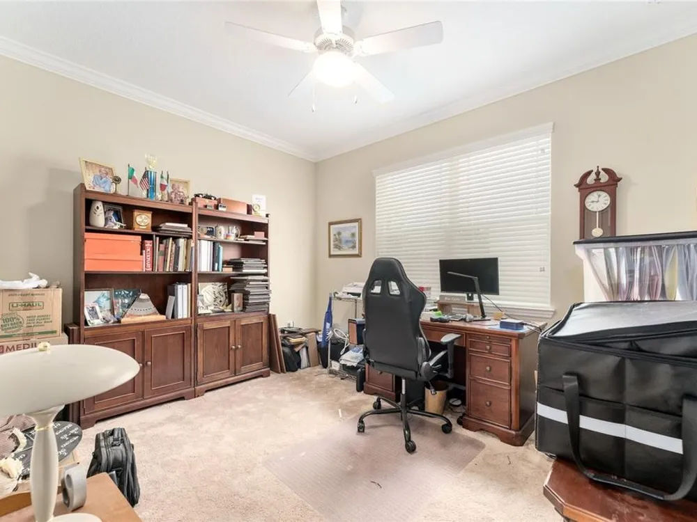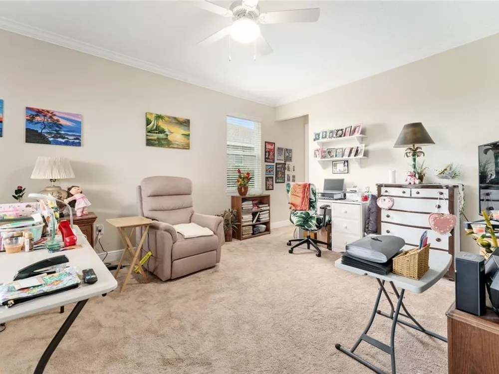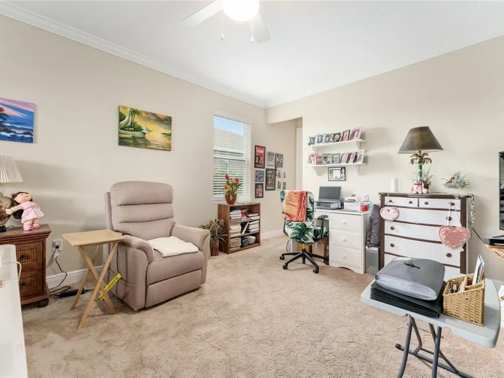 - Ceiling Fan(s), Crown Molding, Kitchen/Family Room Combo, Open Floorplan, Main Level Primary, Split Bedrooms, Stone Counters, Tray Ceiling(s), Walk-In Closet(s)