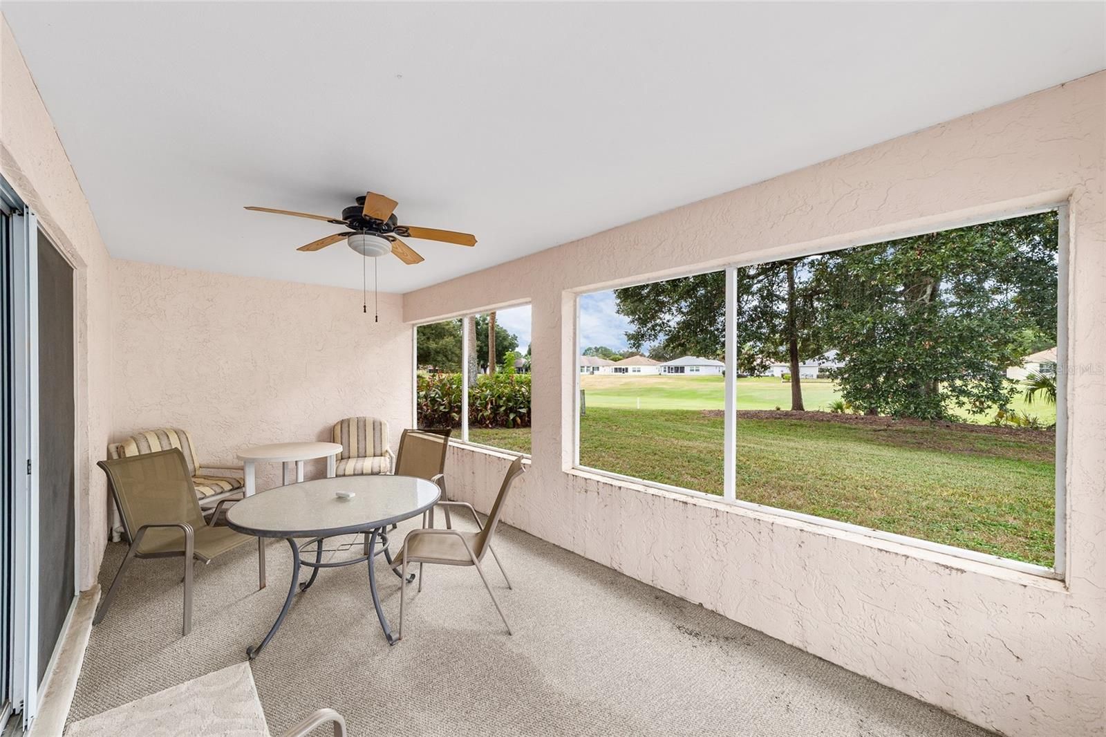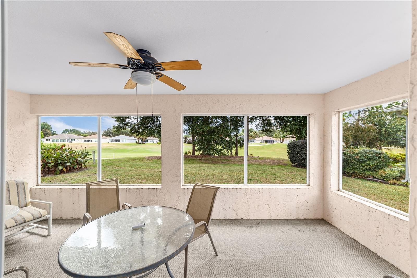 One or more photo(s) has been virtually staged. This well-maintained 3 bedroom, 2 bathroom home with a 2-car garage offers just under 1,500 sq. ft. of comfortable living space and sits directly on the golf course overlooking the 14th hole. Enjoy morning coffee on the large front porch or relax in the spacious screened-in back porch while taking in the peaceful views of the greens. Inside, the master suite features a walk-in closet, a large vanity, a walk-in shower, and an additional linen closet. The second bedroom also boasts a walk-in closet, providing ample storage throughout. The third bedroom is perfect for an office or bedroom. Well-maintained with a 2020 roof, this home is move-in ready and offers the perfect opportunity to add your personal touch with some updating. This community offers everything you need to stay active and connected. Enjoy tennis courts, covered pickleball courts, three fitness centers, three pools, and a welcoming clubhouse. Plus, golf cart-friendly pathways make it easy to reach nearby shopping, dining, and daily conveniences. Don’t miss this opportunity to own a slice of paradise! VISIT HOMES DOTCOM FOR A 3D TOUR.