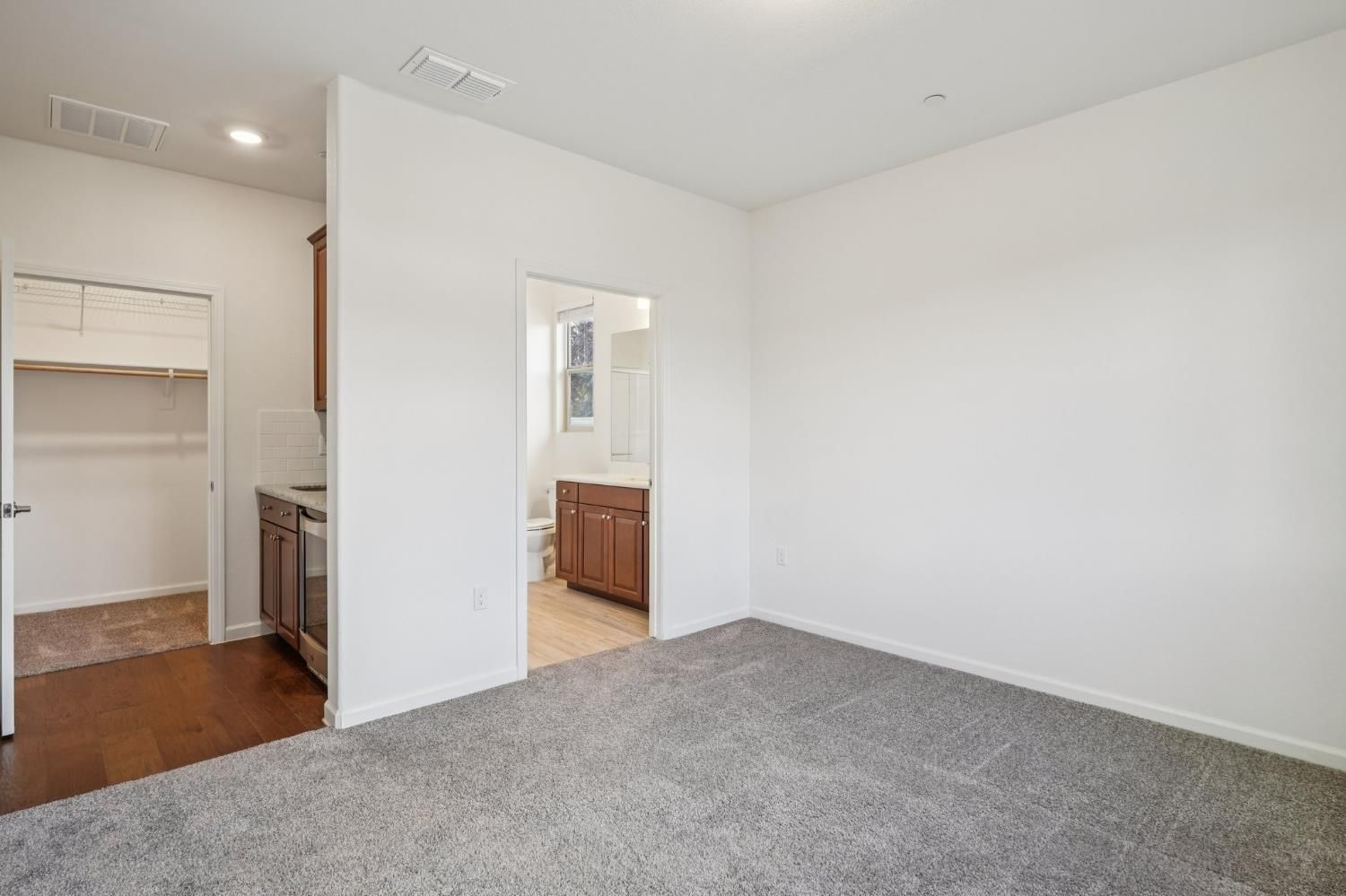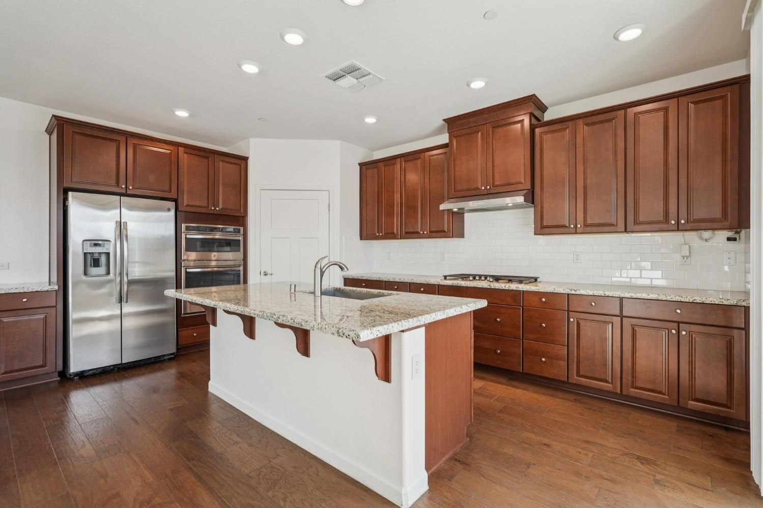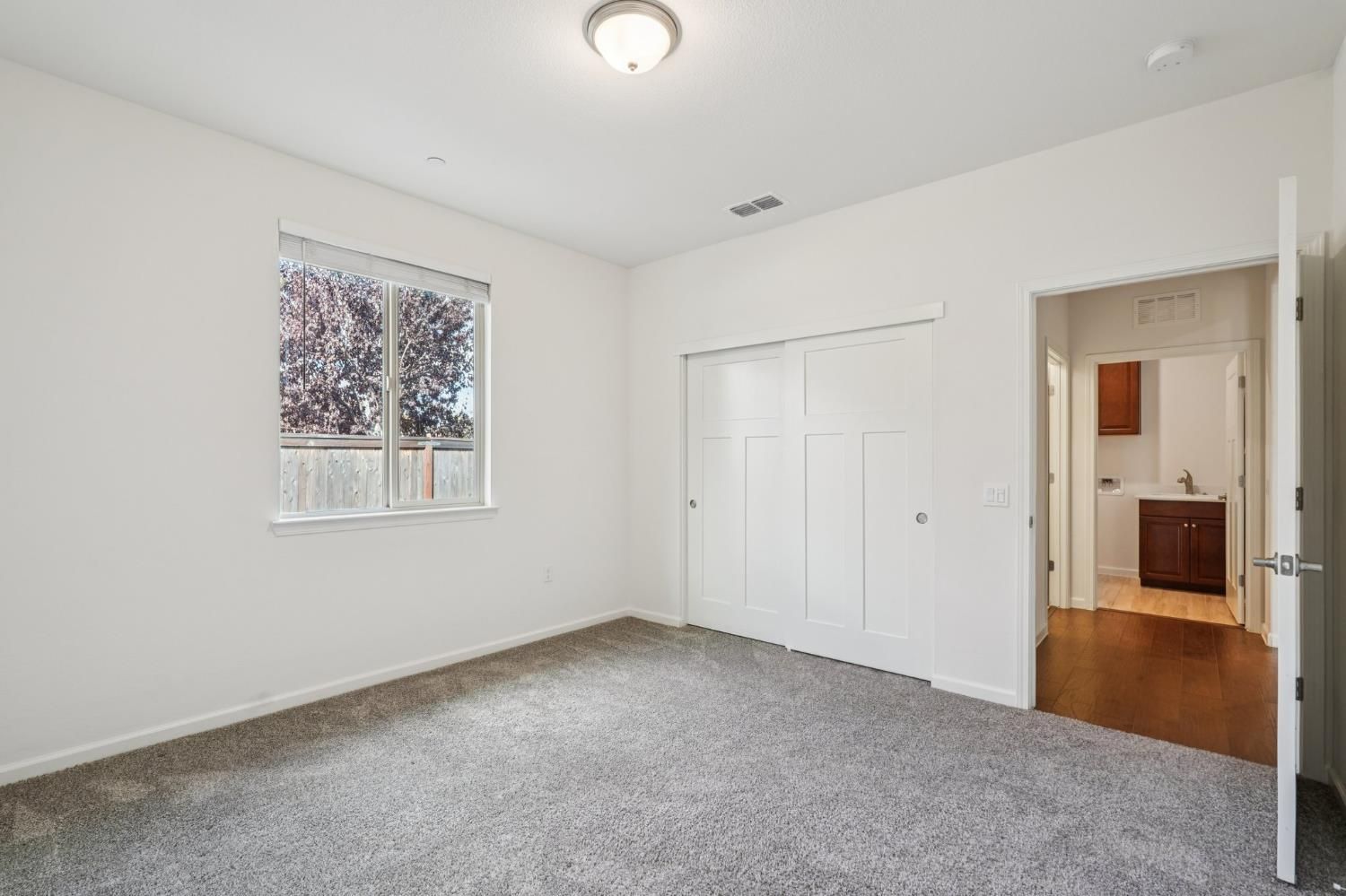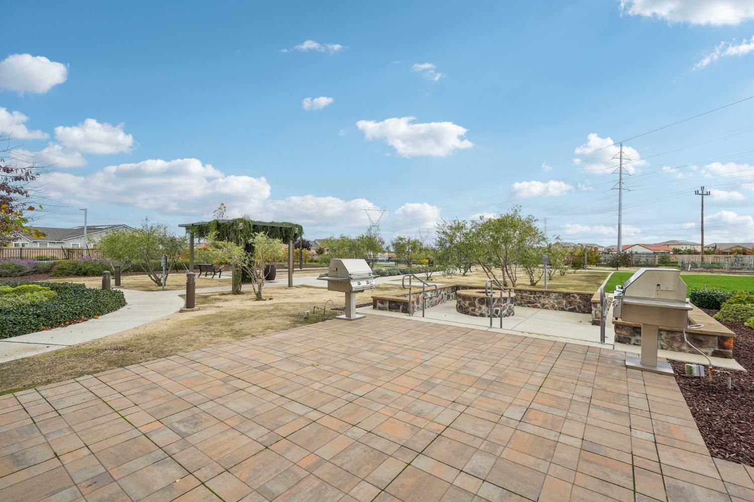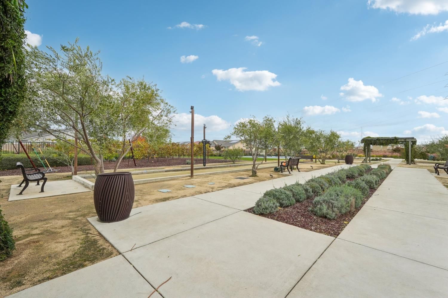 Located in the sought-after 55+ gated community of Dakota at Elk Grove, this beautifully maintained single-story home features three bedrooms and three full bathrooms on a premium corner lot. Built in 2020, the open layout includes wide-plank flooring, abundant natural light, and a spacious great room that flows into a well-appointed kitchen with espresso cabinetry, quartz counters, stainless appliances, a subway tile backsplash, and an oversized island. The floor plan offers a private junior suite and a generous primary suite with a walk-in closet and dual-sink vanity. Energy-efficient upgrades include owned solar and a tankless water heater, providing comfort and long-term savings. The low-maintenance backyard showcases a sky-view design, extensive concrete and river-rock hardscape, and a custom retaining wall with integrated lighting. Additional features include EV charging in the garage and upgraded side-yard hardscape. Residents enjoy resort-style amenities including a pool, spa, lounge areas, walking paths, tennis courts, a gym, and a dog park. Ideally located near Costco, Target, Sprouts, parks, trails, dining, medical facilities, and with quick access to Highway 99.