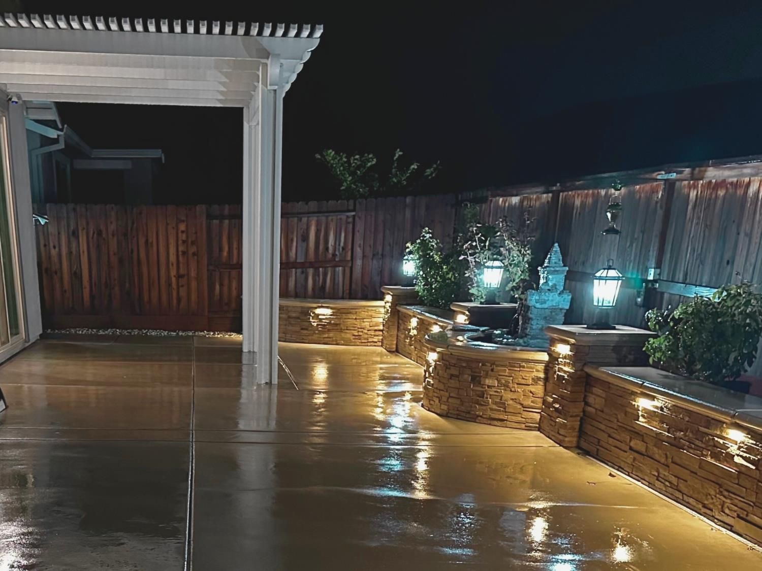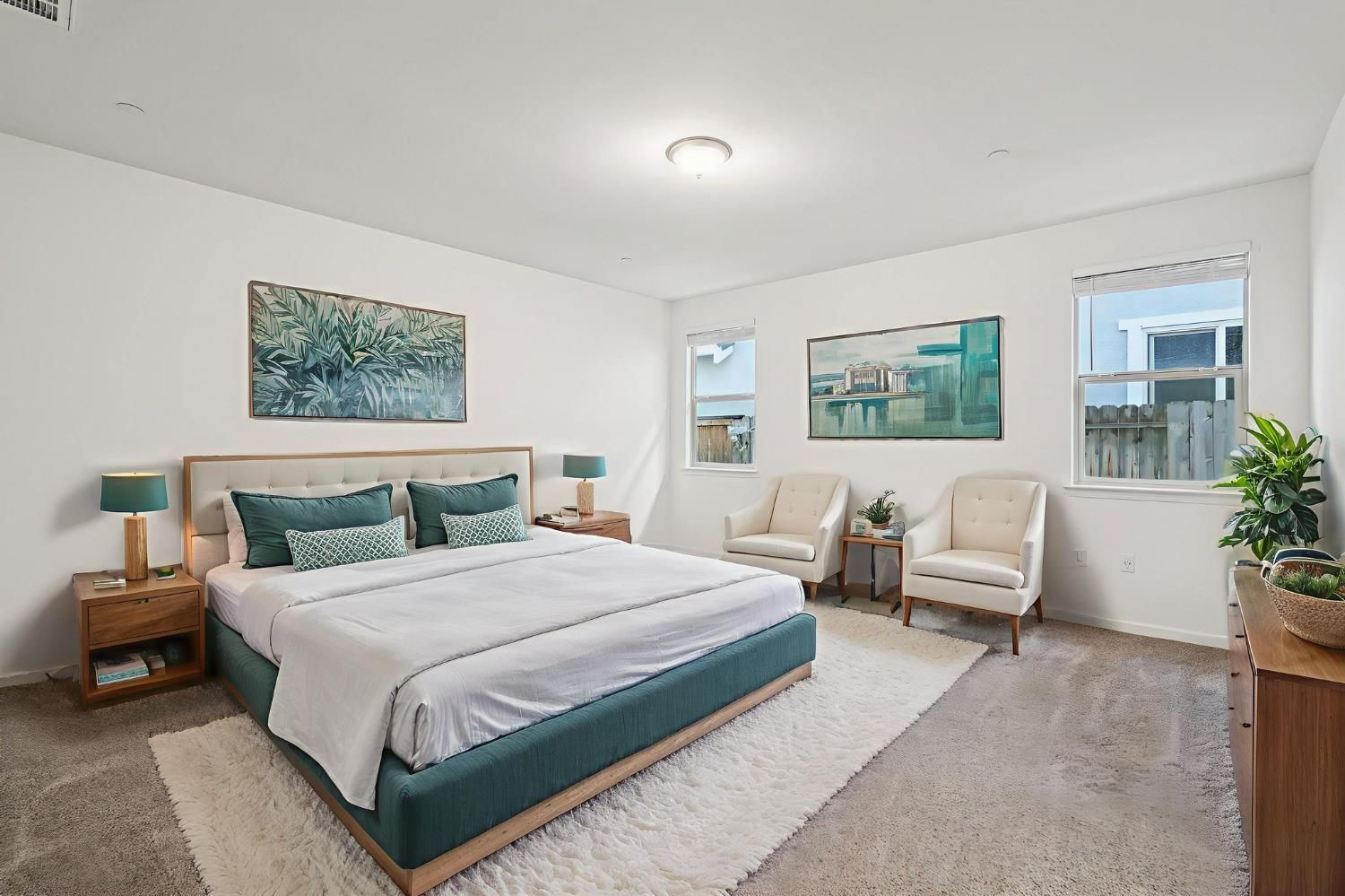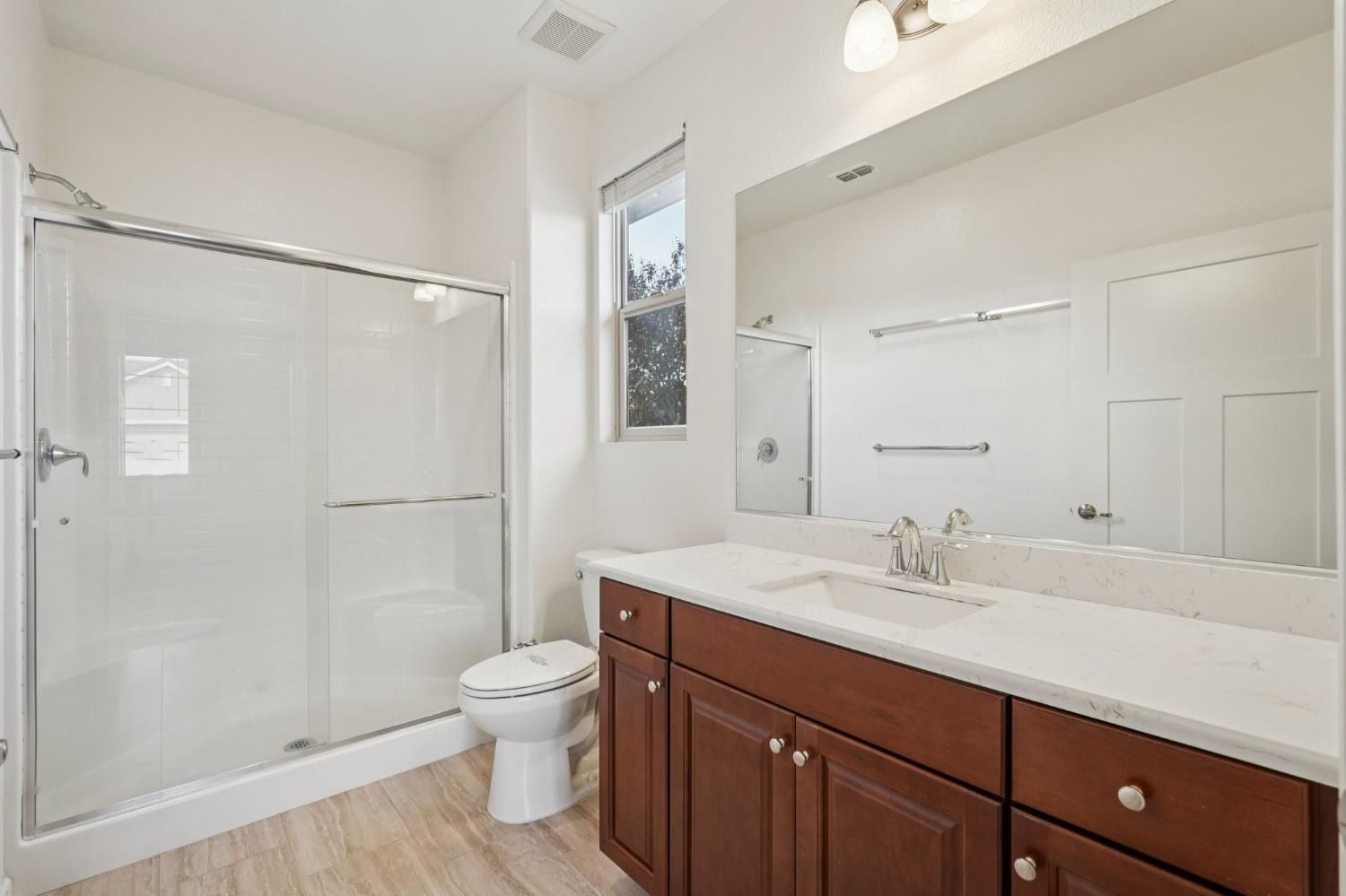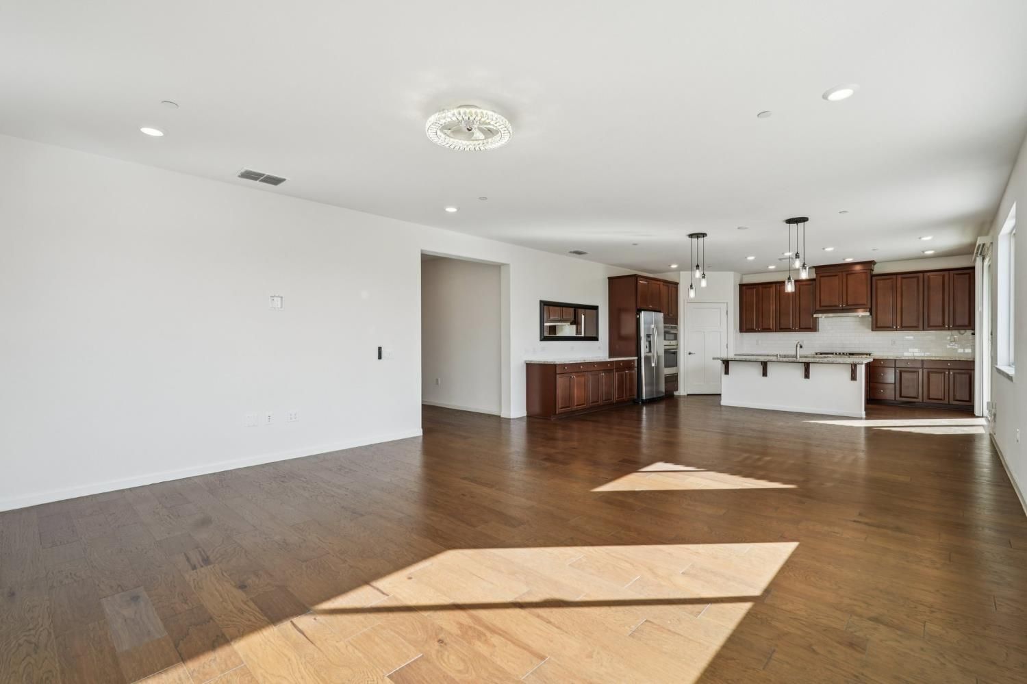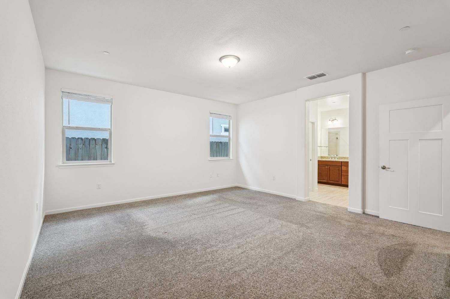 Located in the sought-after 55+ gated community of Dakota at Elk Grove, this beautifully maintained single-story home features three bedrooms and three full bathrooms on a premium corner lot. Built in 2020, the open layout includes wide-plank flooring, abundant natural light, and a spacious great room that flows into a well-appointed kitchen with espresso cabinetry, quartz counters, stainless appliances, a subway tile backsplash, and an oversized island. The floor plan offers a private junior suite and a generous primary suite with a walk-in closet and dual-sink vanity. Energy-efficient upgrades include owned solar and a tankless water heater, providing comfort and long-term savings. The low-maintenance backyard showcases a sky-view design, extensive concrete and river-rock hardscape, and a custom retaining wall with integrated lighting. Additional features include EV charging in the garage and upgraded side-yard hardscape. Residents enjoy resort-style amenities including a pool, spa, lounge areas, walking paths, tennis courts, a gym, and a dog park. Ideally located near Costco, Target, Sprouts, parks, trails, dining, medical facilities, and with quick access to Highway 99.