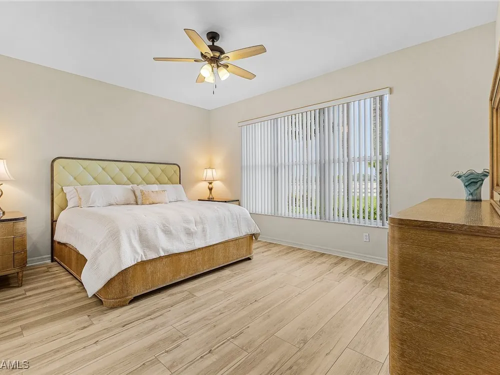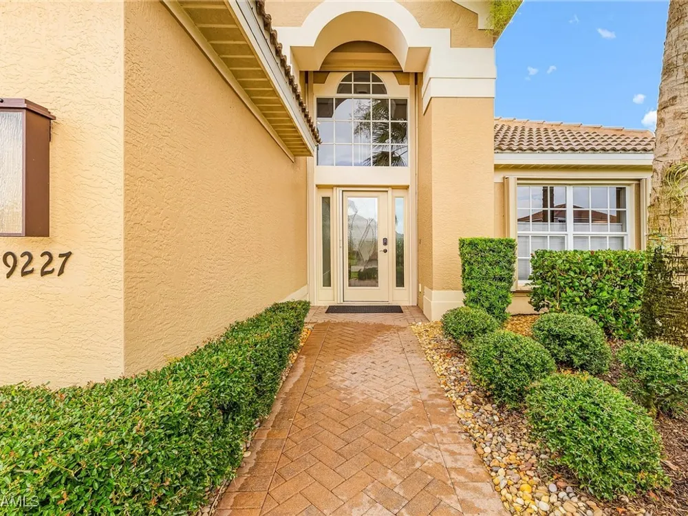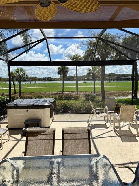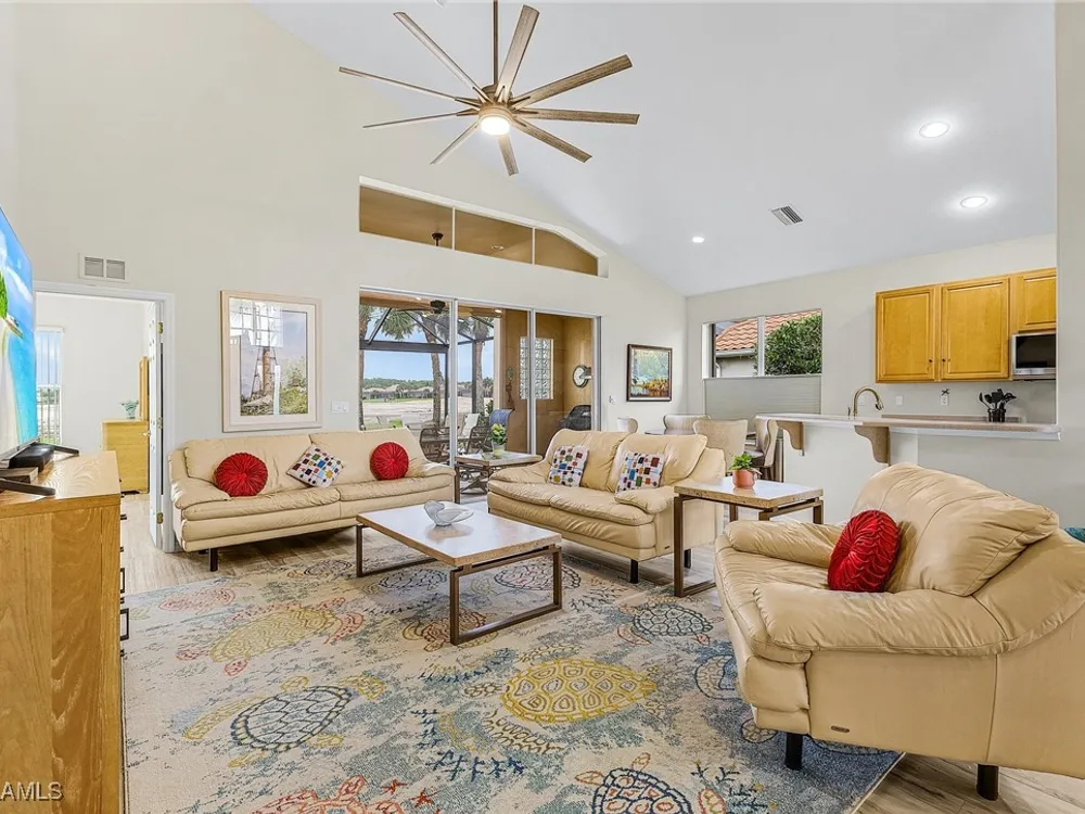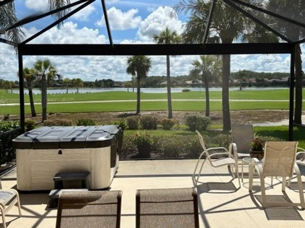 GOLF MEMBERSHIP INCLUDED! It’s the perfect time to purchase this fabulous home if you want to be among the first to tee off on the newly renovated Gordon Lewis-designed course! This stunning 3-bedroom + loft, 3 full bath home is perfectly located just steps from the main pool and clubhouse. This tastefully done home offering luxury, convenience, and unbeatable golf course and lake views. Step inside to a soaring 20-foot ceiling and a spacious open-concept layout bathed in natural light. Your eyes will be immediately drawn through to the picture window lanai screen and expansive eastern view of Fairway #1, with tranquil lake views and breathtaking sunrises greeting you each morning. This home is loaded with premium upgrades and thoughtful updates, including: New “real tile” roof (2023) Luxury wide plank vinyl flooring through out Custom, fiberglass front door with sidelights & Phantom screen Electric hurricane screen on lanai, rolldown screen on front door + accordion storm shutters on all windows Whole-house water filtration + whole-house electrical surge protector Newer washer, dryer, new, high quality convection oven, microwave, dishwasher Fresh interior paint, including ceilings Updated lighting, fans, and custom top-down/bottom-up blinds The extended lanai offers ideal outdoor living space for entertaining, relaxing, or soaking in your private hot tub—complete with a 240V hookup and maximum privacy. Retreat to the oversized owner’s suite, designed for serenity with large sliders and triple windows showcasing those gorgeous morning views. Enjoy the custom spa-like bathroom featuring extra storage, double sinks, a no-lip walk-in shower, and a delightfully large walk-in closet. Don’t miss this chance to own a move-in-ready home in a premier golf community where every detail has been considered. Schedule your private showing today—this gem won’t last long!