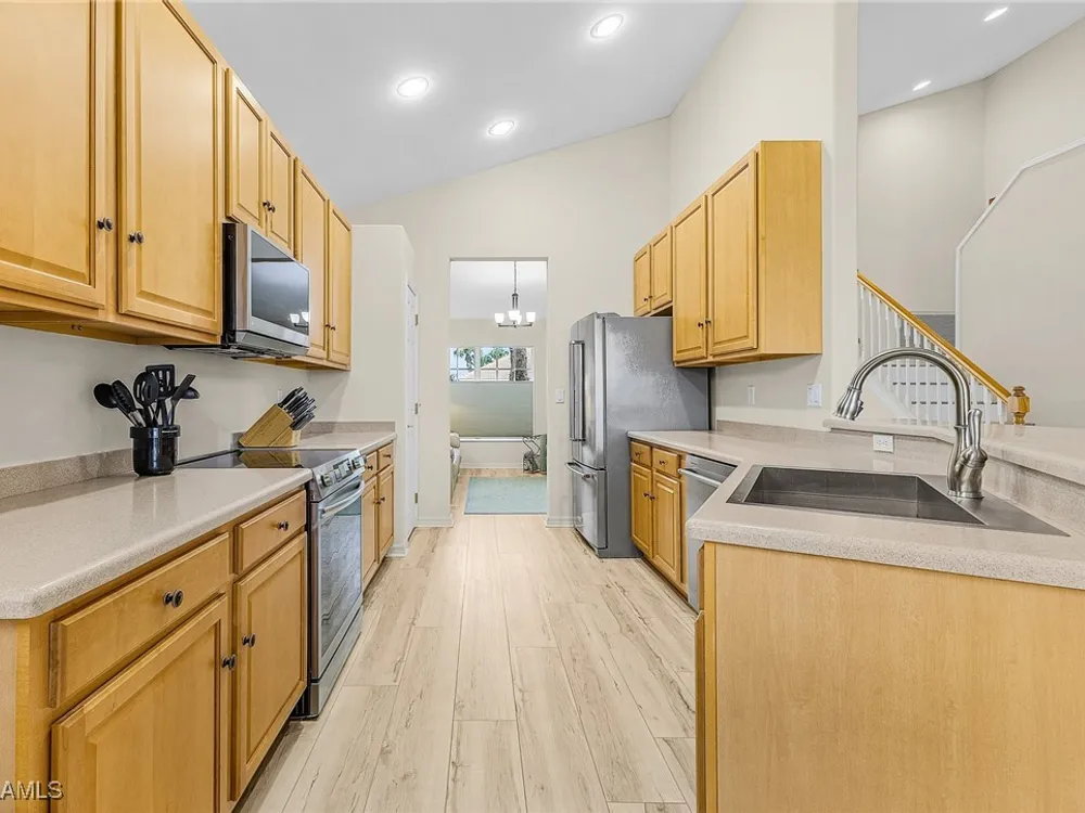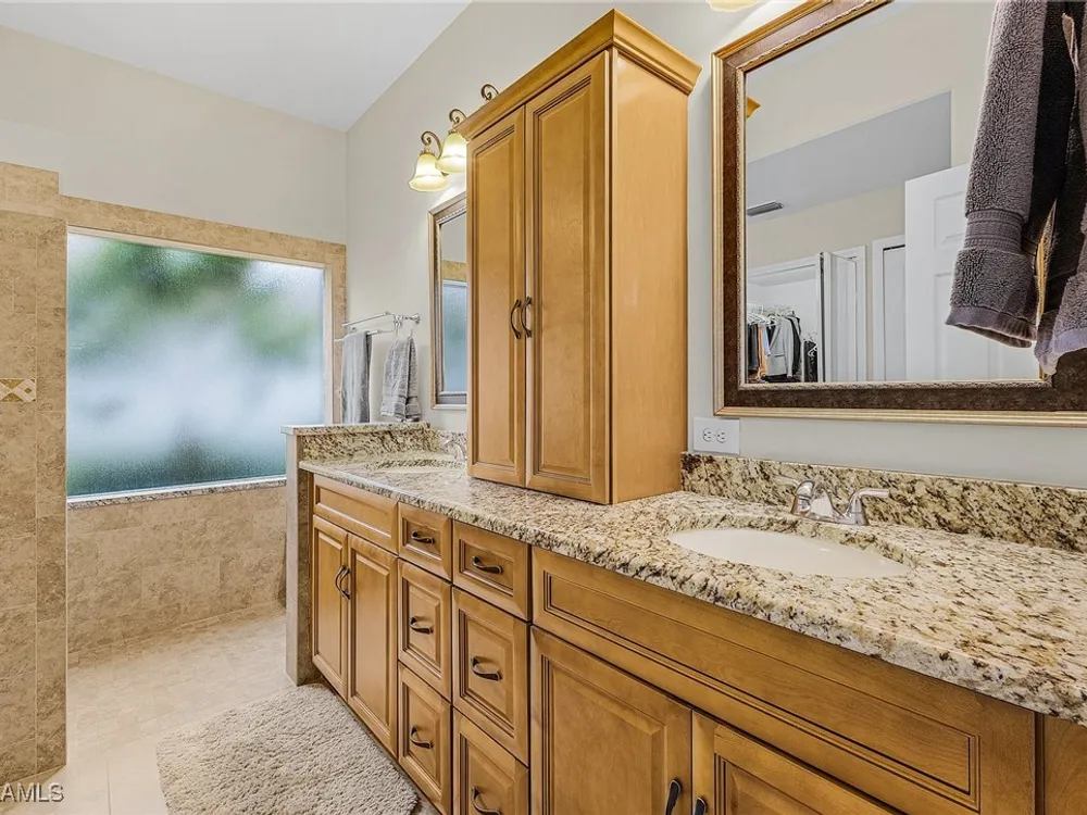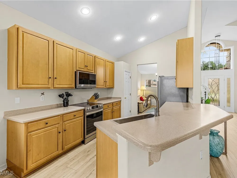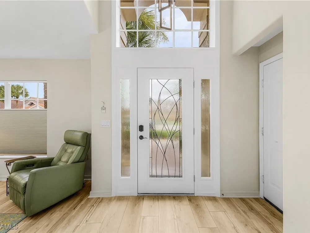 GOLF MEMBERSHIP INCLUDED! It’s the perfect time to purchase this fabulous home if you want to be among the first to tee off on the newly renovated Gordon Lewis-designed course! This stunning 3-bedroom + loft, 3 full bath home is perfectly located just steps from the main pool and clubhouse. This tastefully done home offering luxury, convenience, and unbeatable golf course and lake views. Step inside to a soaring 20-foot ceiling and a spacious open-concept layout bathed in natural light. Your eyes will be immediately drawn through to the picture window lanai screen and expansive eastern view of Fairway #1, with tranquil lake views and breathtaking sunrises greeting you each morning. This home is loaded with premium upgrades and thoughtful updates, including: New “real tile” roof (2023) Luxury wide plank vinyl flooring through out Custom, fiberglass front door with sidelights & Phantom screen Electric hurricane screen on lanai, rolldown screen on front door + accordion storm shutters on all windows Whole-house water filtration + whole-house electrical surge protector Newer washer, dryer, new, high quality convection oven, microwave, dishwasher Fresh interior paint, including ceilings Updated lighting, fans, and custom top-down/bottom-up blinds The extended lanai offers ideal outdoor living space for entertaining, relaxing, or soaking in your private hot tub—complete with a 240V hookup and maximum privacy. Retreat to the oversized owner’s suite, designed for serenity with large sliders and triple windows showcasing those gorgeous morning views. Enjoy the custom spa-like bathroom featuring extra storage, double sinks, a no-lip walk-in shower, and a delightfully large walk-in closet. Don’t miss this chance to own a move-in-ready home in a premier golf community where every detail has been considered. Schedule your private showing today—this gem won’t last long!