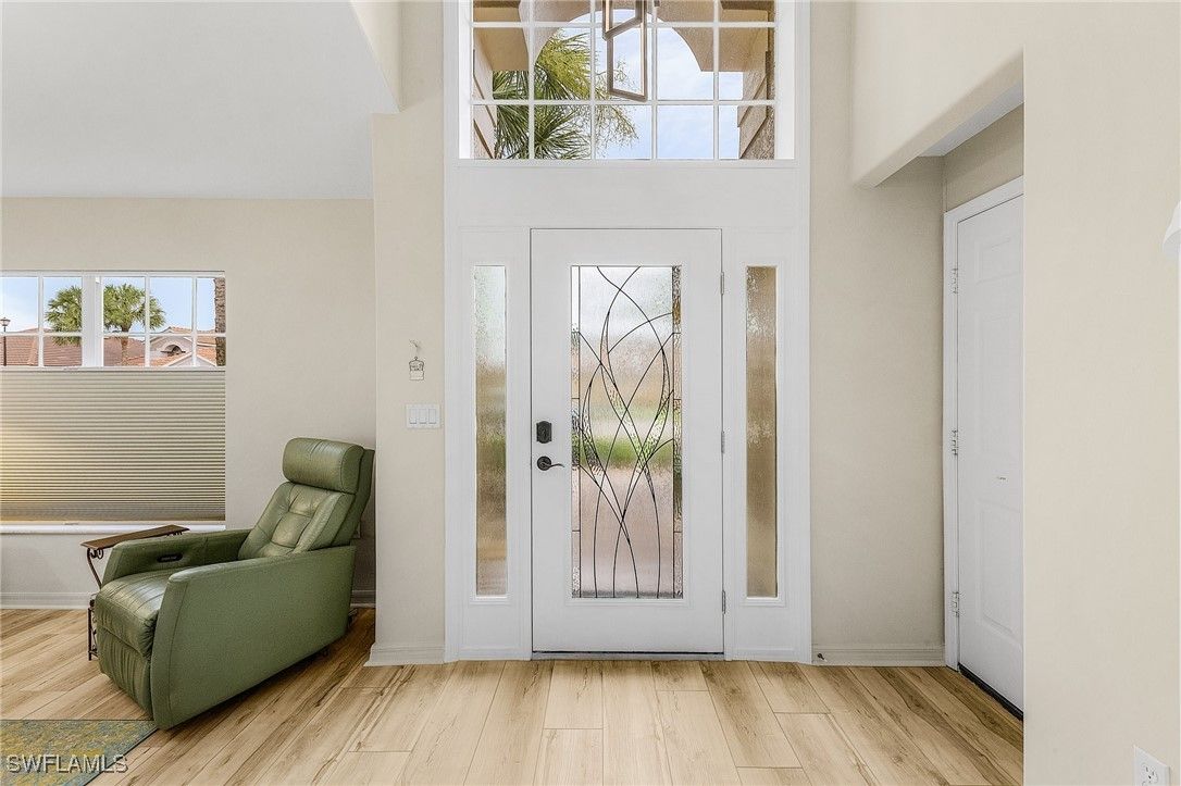 Priced to Sell! And offered Turn Key! Living your dream Imagine enjoying your morning coffee watching the sun rise over the lake and expansive golf course views in your extended lanai. This is the Florida lifestyle you’ve been dreaming of in a secure, gated community 15 minutes from the airport with easy access to I-75. This updated and well cared for home is turnkey and has 3 bedrooms, 3 bathrooms and a versatile loft on the second floor. The soaring 20’ ceiling fills this open concept home with light. Colonial Country Club is a Troon managed property and the resort-style amenities include bundled golf membership, tennis courts, pickleball courts, bocce courts, several pools, a gym, spa, exercise rooms and a walking trail through the Cypress preserve. The 18 hole Gordon Lewis designed golf course was just completely reimagined and renovated. This home is just steps from the clubhouse, restaurant, bar, main pool, gym, spa, aerobics, yoga, bocce court, community center and golf practice areas. This home has been well maintained including new cement tile roof (2023), new high capacity hot water heater (2025), whole-home water filtration system, whole-home electric surge protection, electric hurricane screen on the extended lanai, roll-down screen on the front entry and accordion shutters on all the windows. The beautiful, wide-plank luxury vinyl flooring is both comfortable and easy to care for. The appliances, ceiling fans, top-down bottom-up shades and neutral paint were all recently updated. The private spa on the extended lanai has 2 pumps and 40 jets for maximum relaxation. The oversized owners suite looks out over the lake and golf course for fantastic sunrises and includes a custom zero-entry walk-in shower with dual vanities and large walk-in closet. Stop by for a showing, and imagine living your dream at the best country club in Southwest Florida!