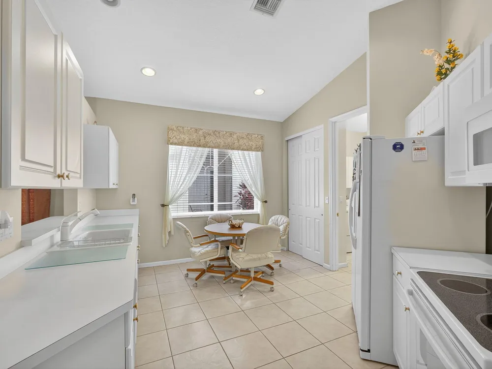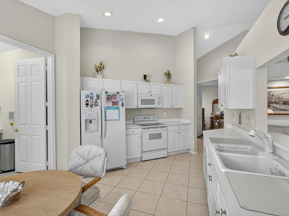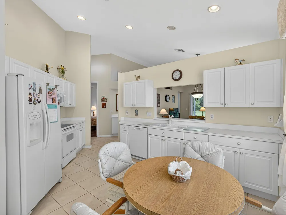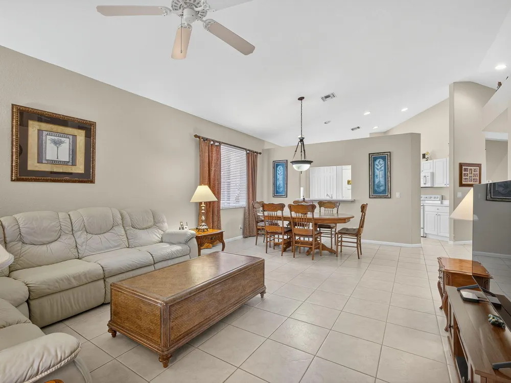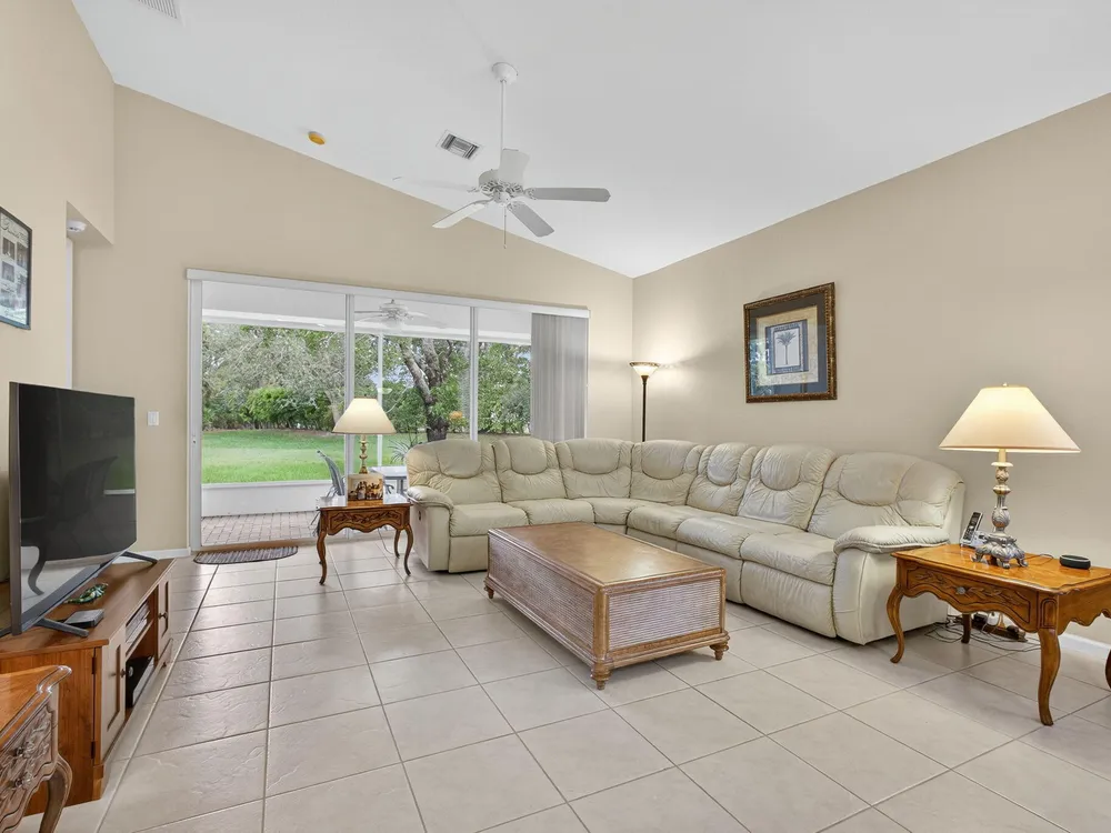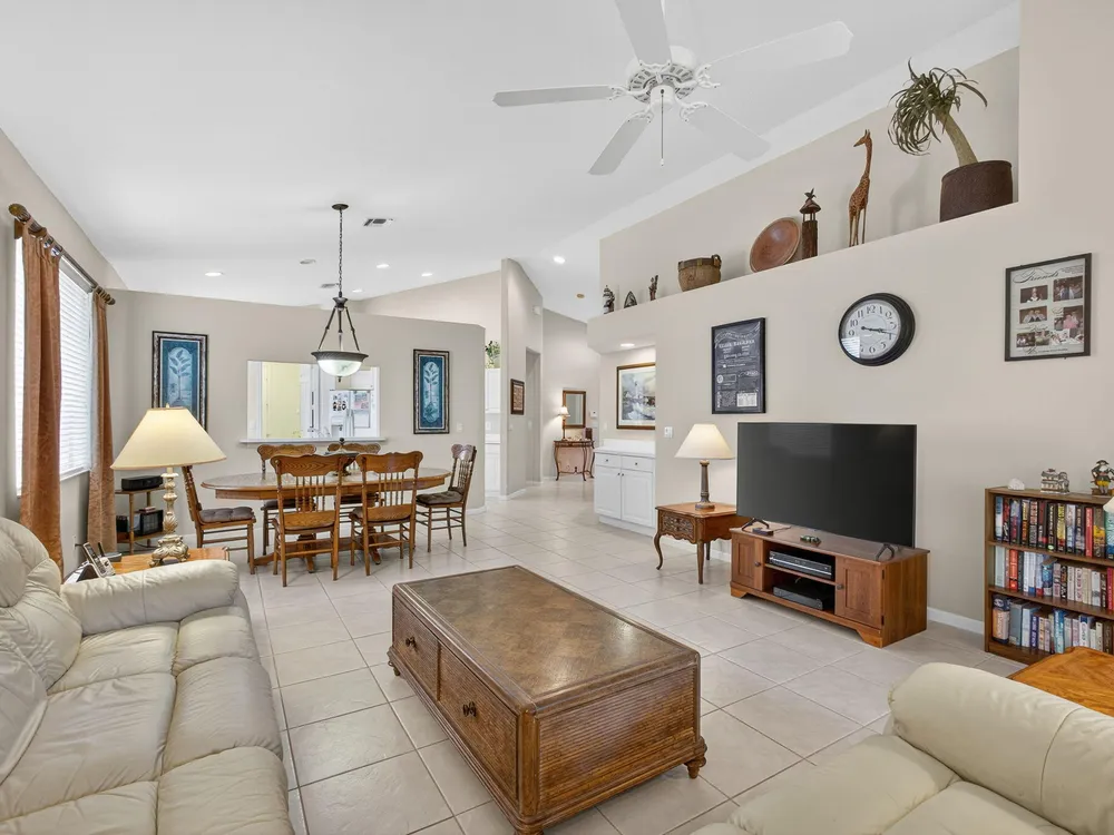 Welcome to this amazing 55+ very active adult community. This three beds, two baths, two car garage home has been lovingly cared for. Located on a large lot overlooking a nature reserve that offers privacy and serenity to enjoy from the large extended screened in patio. This home features a eat-in kitchen, a large dining/living room with volume ceilings. The primary bedroom offers a walk-in closet, large bathroom with a separate tub and shower. Two additional bedrooms with laminate flooring and volume ceilings. HOA fee includes cable - high speed internet - ADT monitoring- all lawn maintenance - 24-hour manned gate