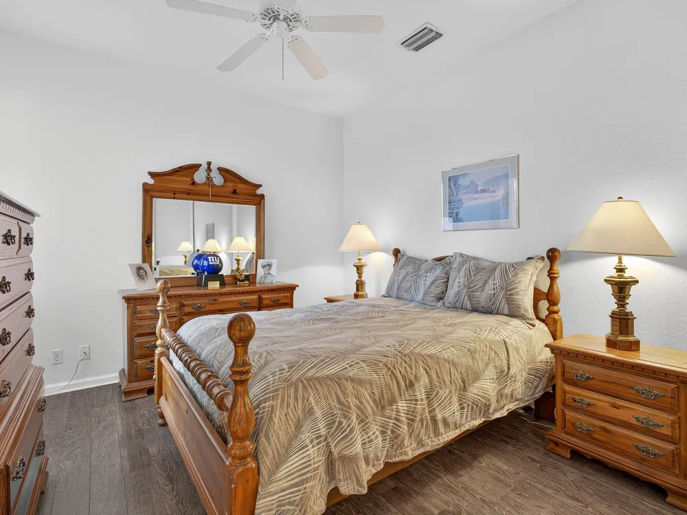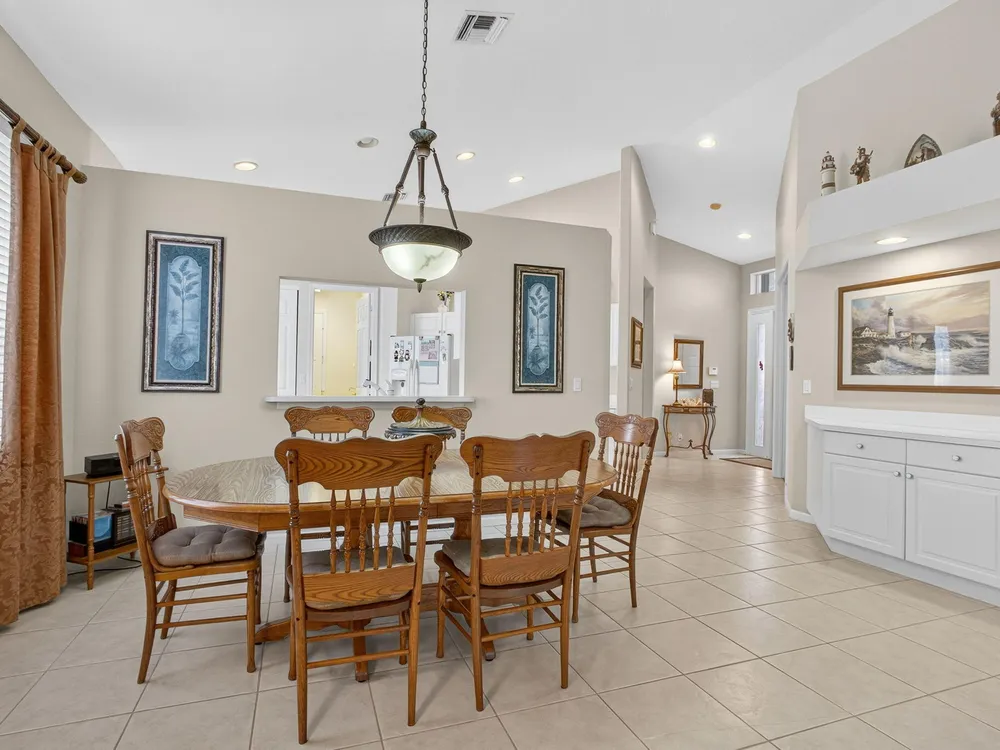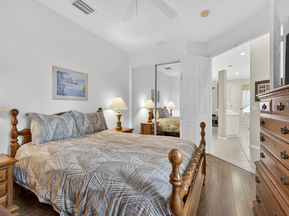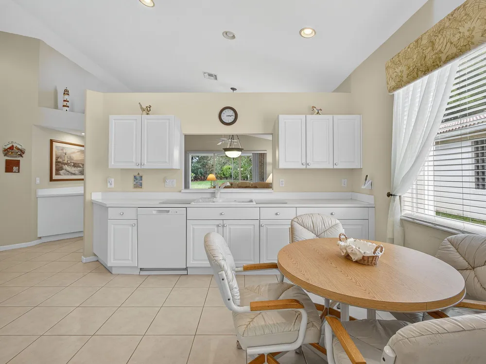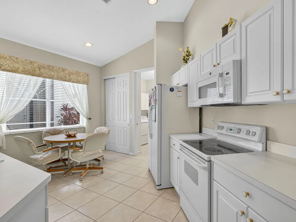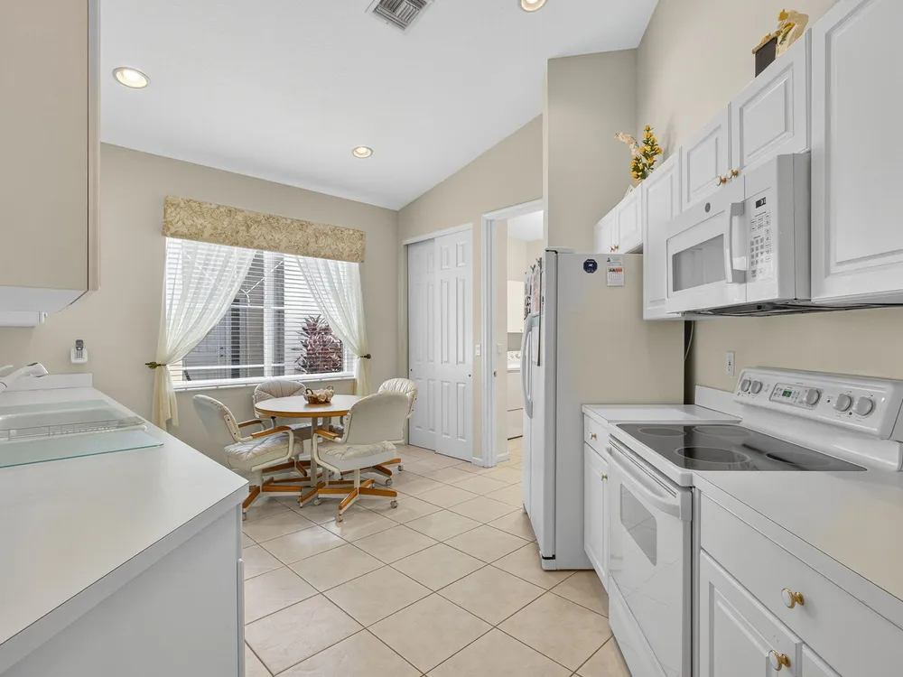 Welcome to this amazing 55+ very active adult community. This three beds, two baths, two car garage home has been lovingly cared for. Located on a large lot overlooking a nature reserve that offers privacy and serenity to enjoy from the large extended screened in patio. This home features a eat-in kitchen, a large dining/living room with volume ceilings. The primary bedroom offers a walk-in closet, large bathroom with a separate tub and shower. Two additional bedrooms with laminate flooring and volume ceilings. HOA fee includes cable - high speed internet - ADT monitoring- all lawn maintenance - 24-hour manned gate