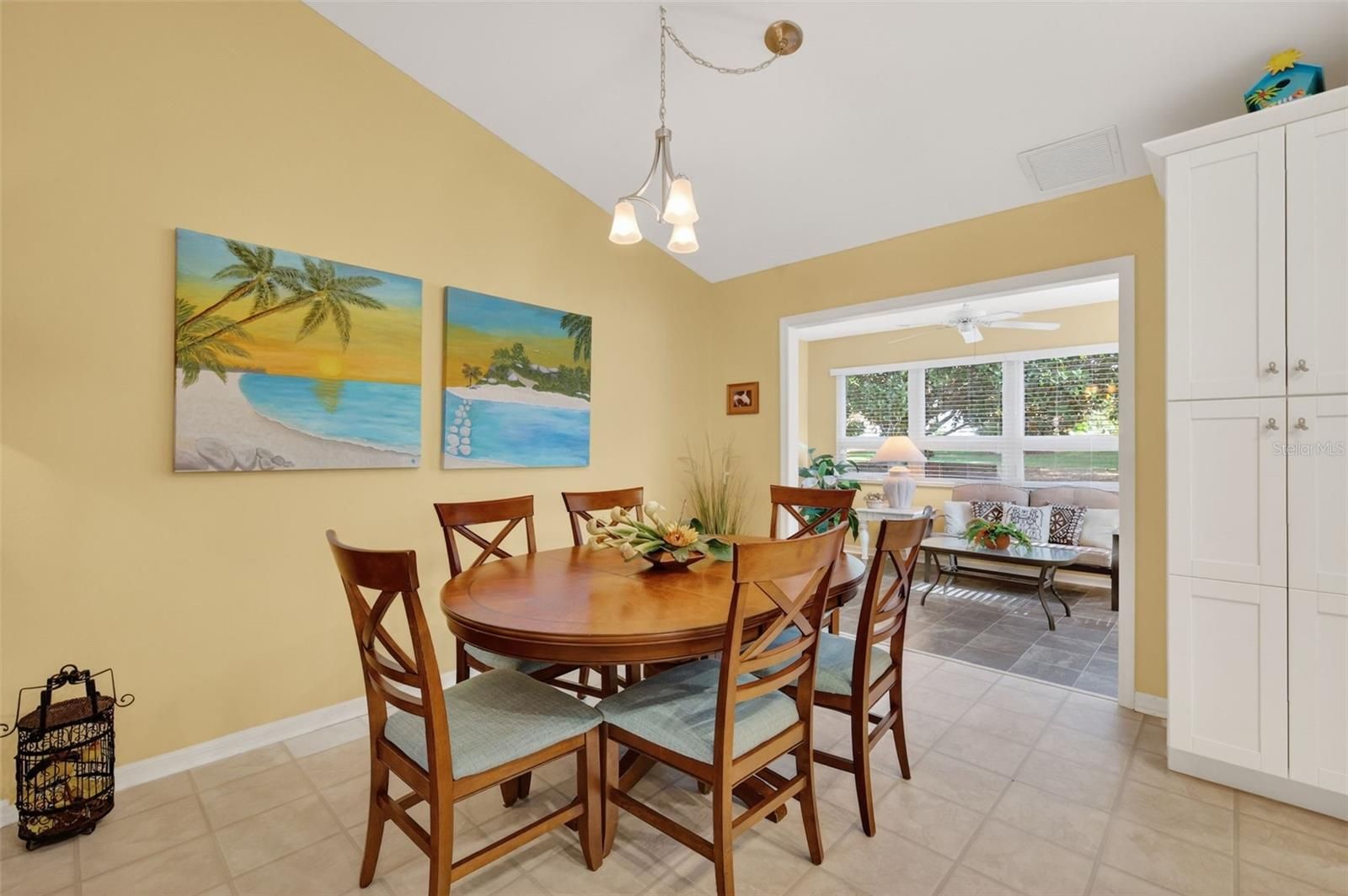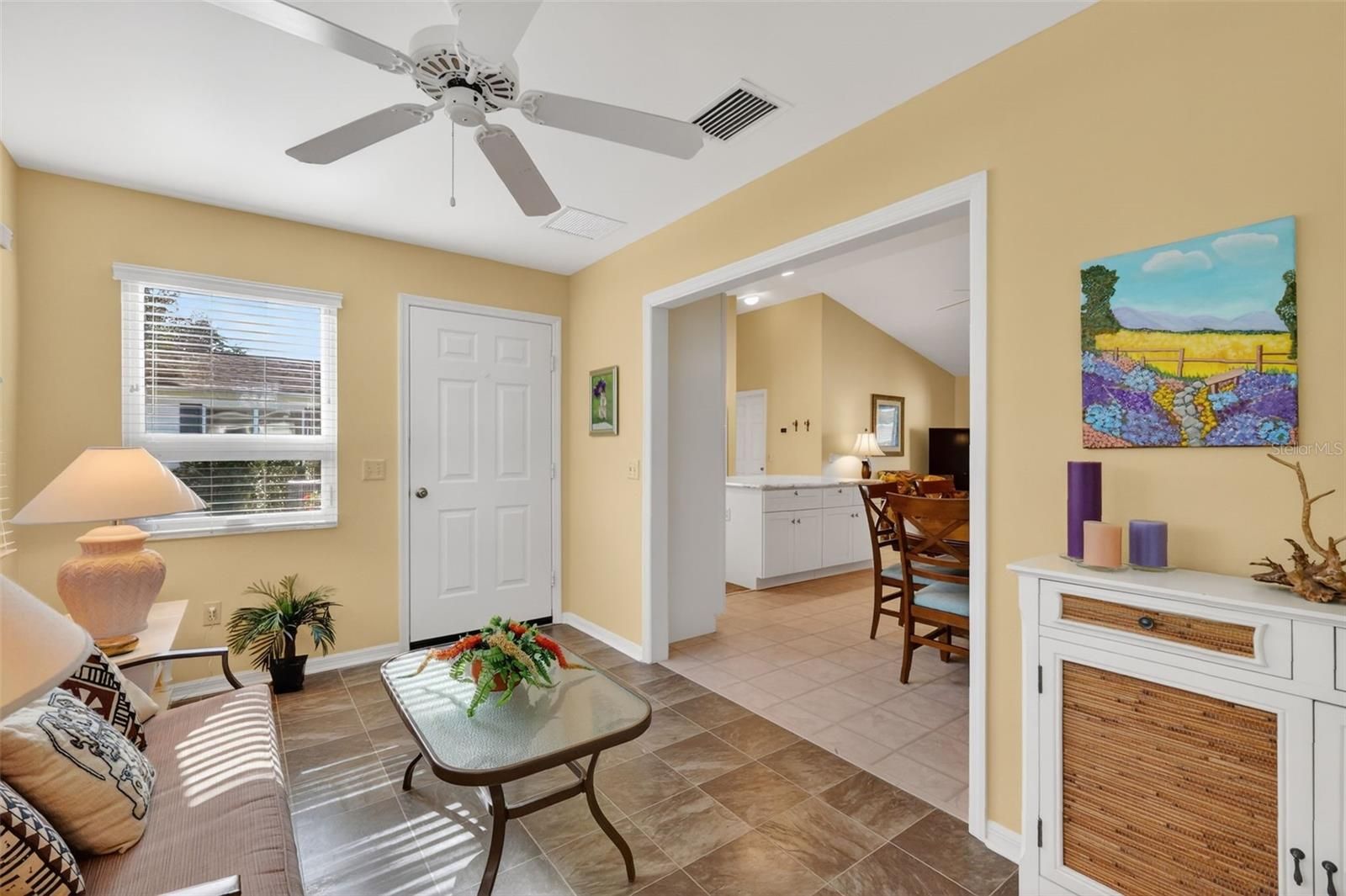 FABULOUS 3/2 Bougainvillea Designer featuring a SPACIOUS FLORIDA ROOM and REAR CHATTAHOOCHEE PAVER PATIO with professional and MATURE PRIVACY LANDSCAPING - CONVENIENTLY LOCATED near BOTH Spanish Springs Town Square and Lake Sumter Landing in the highly sought after Village of Rio Ranchero! BOND PAID! ROOF (2017), HVAC (2025) A quaint SCREENED FRONT PORCH with Chattahoochee flooring welcomes you in to this wonderful home! Step inside to discover VAULTED ceilings and the SPACIOUS, OPEN CONCEPT FLOOR PLAN of the living, dining and kitchen areas. The GORGEOUS, UPDATED kitchen showcases WHITE SHAKER cabinetry, MODERN CARRARA look counter tops, a generously sized CENTER ISLAND with DOUBLE sided cabinetry and a BUILT-IN PANTRY for ABUNDANT STORAGE. Directly behind the dining room, you will discover an AMAZING under-air Florida room with a plethora of windows that allows for an ABUNDANCE of NATURAL LIGHT. This VERSATILE, MULTI-PURPOSE ROOM offers the ideal space for a den, media room, or home office. There’s also an exterior door to the adjacent patio featuring Chattahoochee flooring for grilling or simply enjoying the beautiful Florida weather! Back inside, the primary bedroom boasts a GENEROUS WALK-IN closet and large window. It’s NEWLY REMODELED, EN-SUITE bathroom boasts LIGHT WOOD PLANK TILE flooring, WHITE SHAKER cabinetry with QUARTZ countertop and DUAL sinks, SPACIOUS, CARRARA TILED WALK-IN shower, and a LINEN closet. Designed for privacy, the SPLIT FLOOR PLAN creates a SEPARATE GUEST WING with two additional bedrooms and a second bathroom across the home. Bedroom two features DOUBLE windows and a BUILT-IN closet. The NEWLY REMODELED second bathroom is thoughtfully appointed with a WHITE SHAKER vanity, LIGHT WOOD PLANK TILE flooring, MARBLE countertop, and a tub and shower combination with CARRARA TILE. The third bedroom features a built-in closet and a large window. Additionally, a BONUS linen-closet in the hallway. A centrally located INTERIOR LAUNDRY ROOM with a UTILITY SINK and light WOOD cabinetry leads you to the two-car garage offering a SLIDING SCREEN PANEL and plenty of room for parking and storage! Another bonus - UPGRADED rain gutters that FLOW UNDERGROUND! DON’T MISS YOUR OPPORTUNITY to make this INCREDIBLE HOME YOUR OWN! The Village of Rio Ranchero is IDEALLY LOCATED near three large Regional Recreation Centers: Laurel Manor, Savannah Center, and La Hacienda; several Country Clubs and Championship Golf Courses: Tierra Del Sol, Hacienda Hills, Orange Blossom Hills; and multiple pools, golf, and pickle ball! ONLY MINUTES to County Road 466 with with an abundance of shopping, restaurants, banks, medical and more! PLEASE WATCH OUR WALKTHROUGH VIDEO of this FANTASTIC HOME in an AMAZING LOCATION and CALL TODAY to schedule your Private Showing or Virtual Tour! **Some furniture, decor, and Other Items Available Separately**