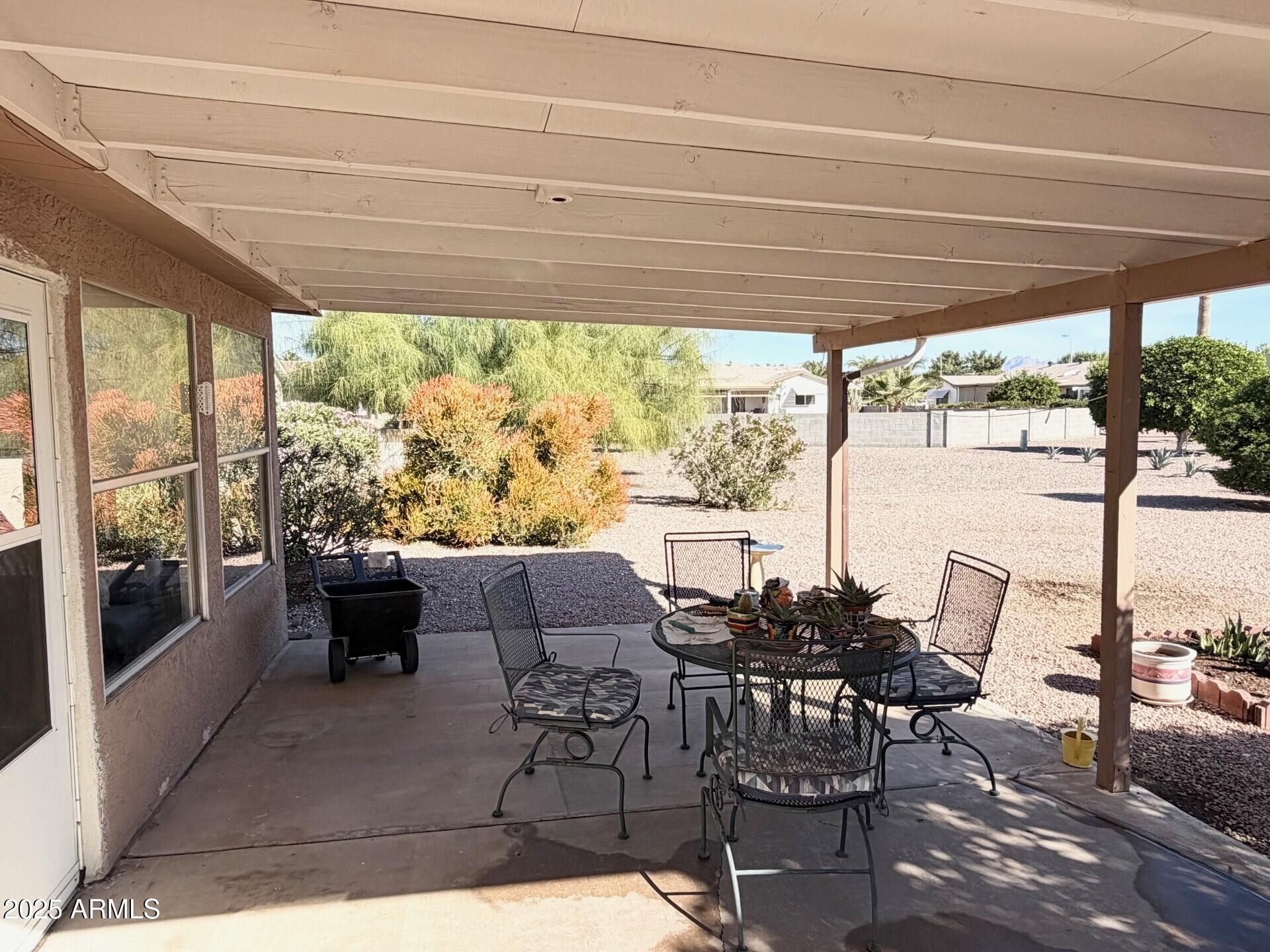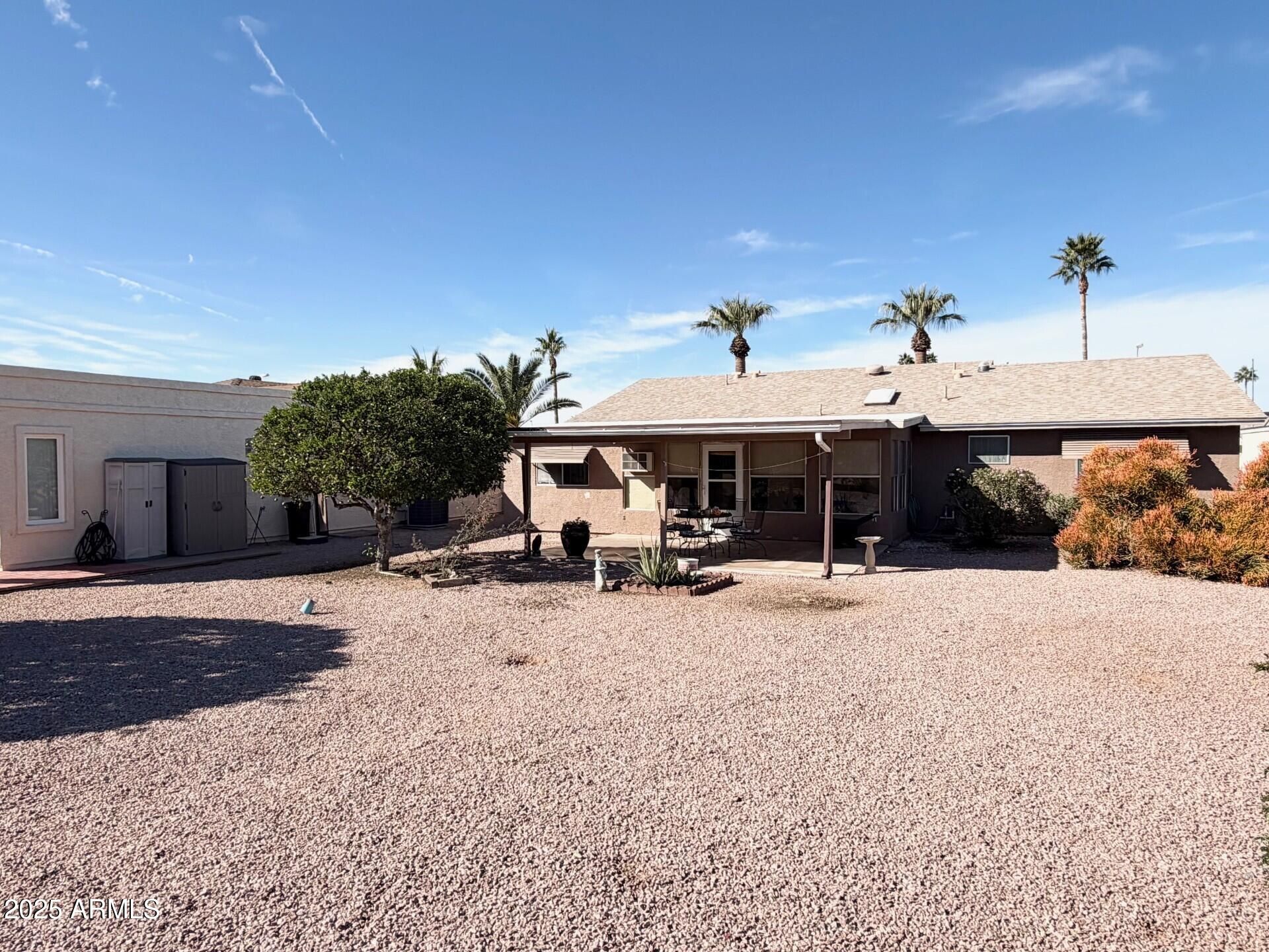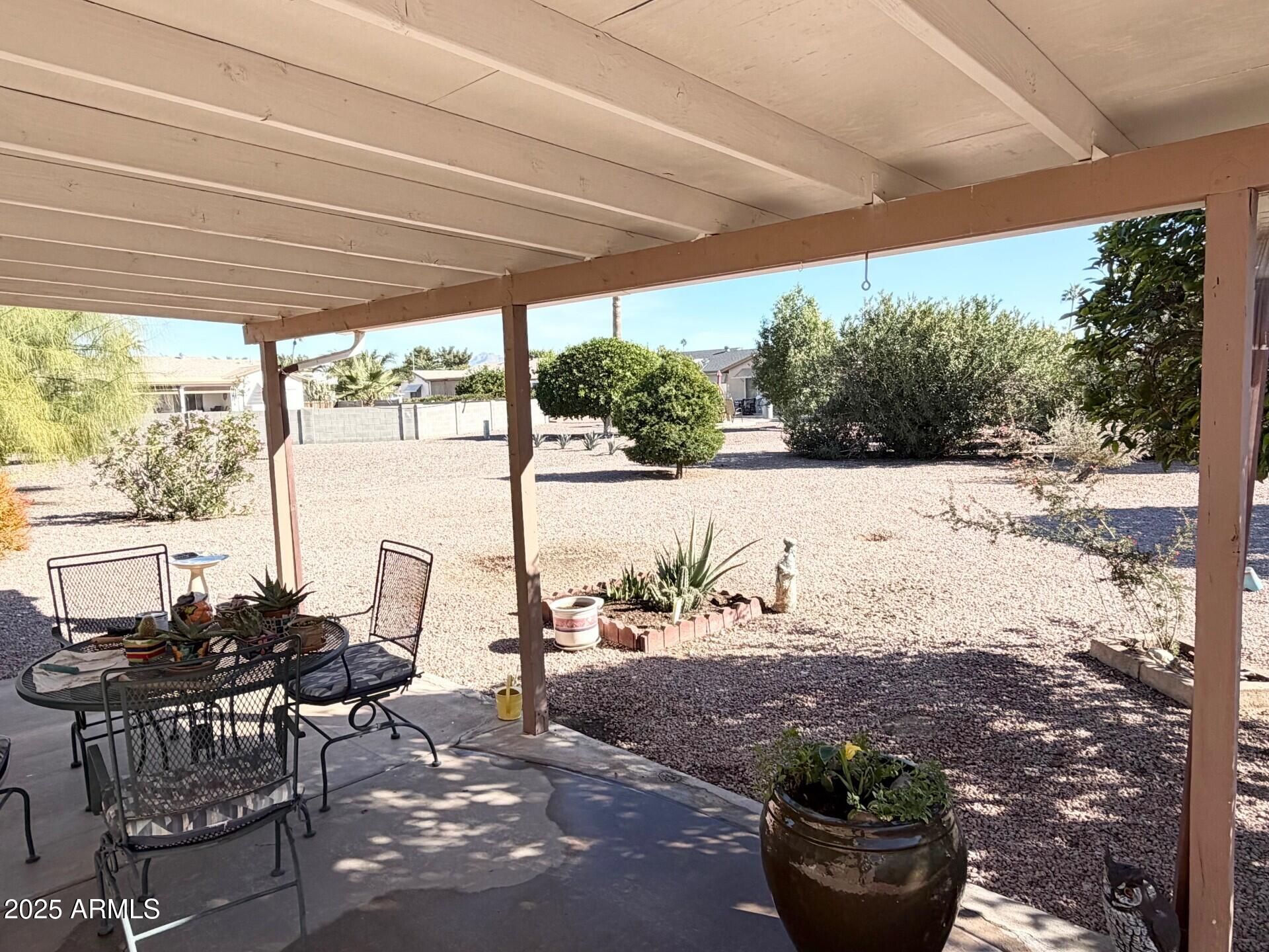 Great Home tucked away on a peaceful cul-de-sac in the Vibrant 55+ Gated Community of Fountain of the Sun, 2-bedroom, 2-bath home Plus AZ Room & Office, 2 Car Carport, Updated Kitchen w/ Kitchen Island, Granite countertops & Reverse Osmosis, ideal for entertaining or everyday ease, Sunlit Arizona Room and bonus hobby/office, Set on a spacious 8,485 sq ft lot with mature citrus trees (Orange & Tangelo) and low-maintenance desert landscaping, Newer Roof (2018) and Heat Pump (2020), Water Softener, Imagine Yourself enjoying the Quiet Life Here! Community Perks: Enjoy golf, pickleball, Bocce Ball, Heated pool, fitness center, and a full calendar of social activities—all within a secure, friendly neighborhood just minutes from shopping, dining, and freeway access.