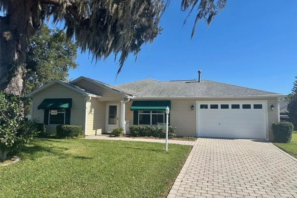 Must see this 2 bedroom, 2 full bath & 1.5 car garage located in the Village of Springdale. This popular ranch style, Austin model is situated on an oversized corner homesite, brick paver driveway & sidewalk. Newer architectural shingle roof & gutters (2022). Newer washer/dryer. Interior of home, newer interior paint, volume ceilings, recessed lights, hardwood flooring throughout living room/dining room & open floor plan concept. Newer gas range & refrigerator. Large master bedroom w/ walk-in closet & master en suite. Oversize lanai w/ outdoor carpet is perfect for enjoying Florida’s wonderful weather. This home is conveniently located near the Publix shopping center, VA clinic, adult pool, Nancy Lopez Country Club & restaurant, First Responders Rec Center & coming soon the Walmart Neighborhood Market off CR 42. All golf car accessible. Bond paid! Call today for your personal tour of this lovely home.