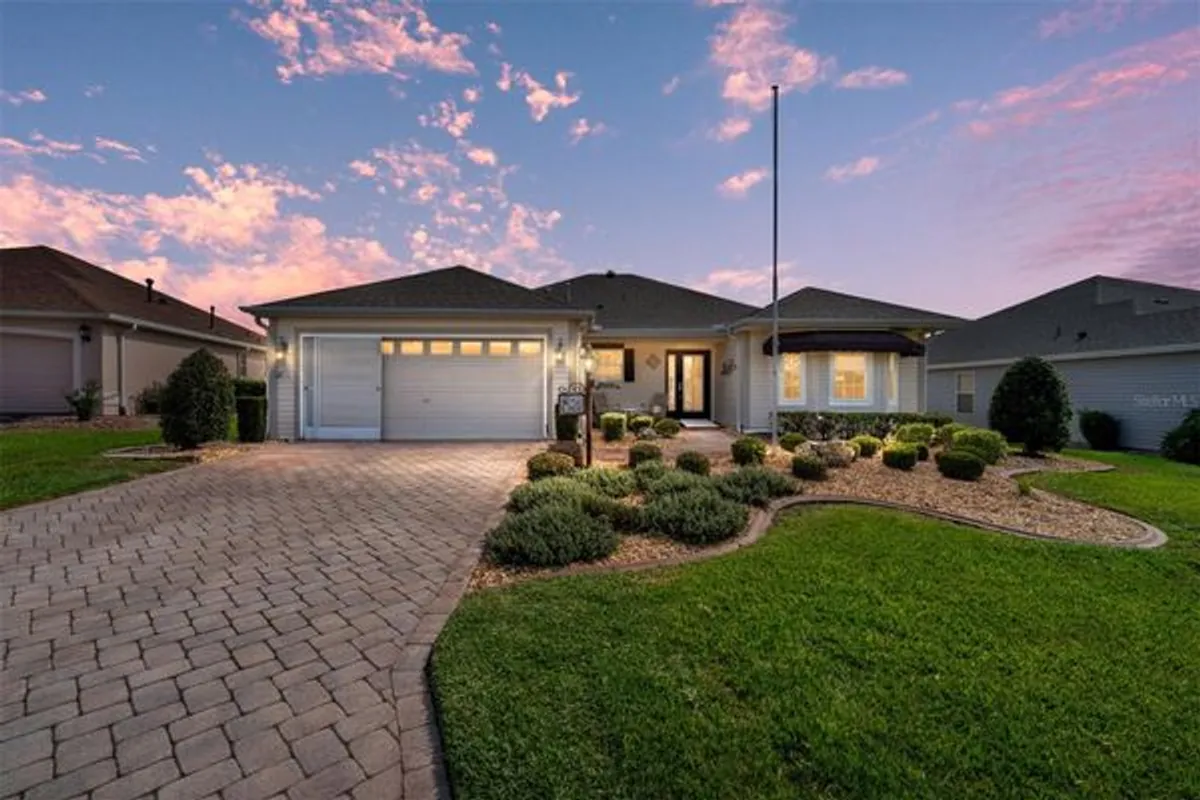 BOND PAID!! WELCOME TO THIS DESIGNER CYPRESS MODEL HOME IN THE VILLAGE OF WOODBURY! This beautifully maintained home offers numerous updates and desirable features throughout. Major improvements include a NEW ROOF (2021), NEW HOT WATER HEATER (2021), and FIVE WINDOWS REPLACED (2024). Seller offering a one year gold plan home warranty through Broward factory services, The HVAC was replaced in 2013, providing peace of mind. Great curb appeal with mature landscaping, a pavered driveway and walkway, and a nice front porch to sit out and have your morning cup of coffee and get to know your NEIGHBORS that are helpful and like family! Inside, you’ll find HIGH CEILINGS, WOOD FLOORING THOROUGHOUT THE MAIN LIVING AREA, and TILE FLOORING IN THE WET AREAS. The kitchen boasts CORIAN COUNTERTOPS WITH STAINLESS STEEL APPLIANCES, NATURAL GAS RANGE. LOTS OF CABINETS, A PANTRY CABINET, and an EAT-IN DINING AREA. Large formal dining and living area make it easy to entertain. The Primary Retreat WITH TWO WALK-IN CLOSETS, DUAL SINKS, SEPARATE WATER CLOSET, AND A WALK-IN SHOWER. The Split floor plan offers 2 GOOD SIZED GUEST BEDROOMS, linen closet and a guest bath that has a tub/shower combo. The ENCLOSED LANAI that extends your living space and leads you to an ELEVATED OUTDOOR AREA perfect for relaxing or entertaining. FABULOUS INSIDE LAUNDRY, with/ a folding area, tub sink, and cabinets leads you out to the 2-car garage with pull-down stairs to the attic for extra storage. The Village of Woodbury offers incredible convenience and amenities. Located near MULBERRY GROVE PLAZA, MULBERRY AND FIRST RESPONDERS REC CENTER, you’ll have easy access to shopping, dining, and medical facilities. Residents also enjoy proximity to THE VA CLINIC, SWIMMING POOLS, PICKLEBALL AND TENNIS COURTS, GOLF COURSES, AND THE NANCY LOPEZ LEGACY & GLENVIEW COUNTRY CLUB. This DESIGNER CYPRESS MODEL combines spacious living, thoughtful upgrades, and a fantastic location—ready for you to start living The Villages® lifestyle today! FURNITURE IS NEGOTIABLE SEPARATELY!