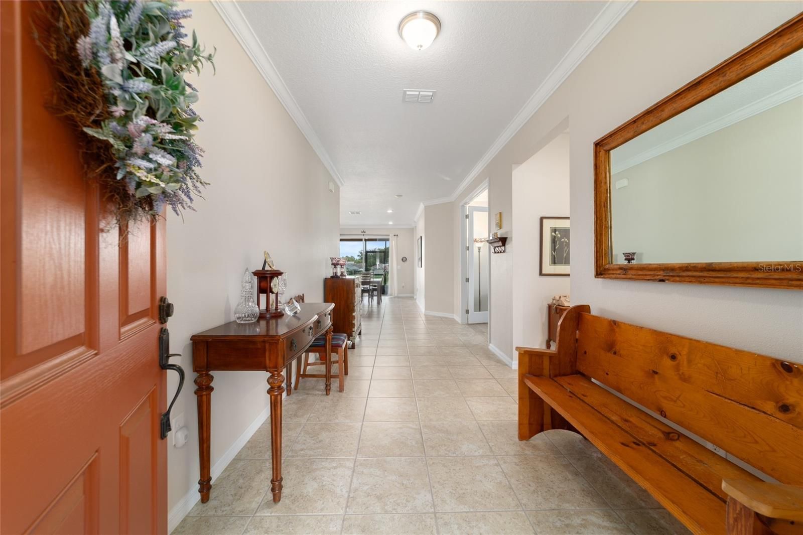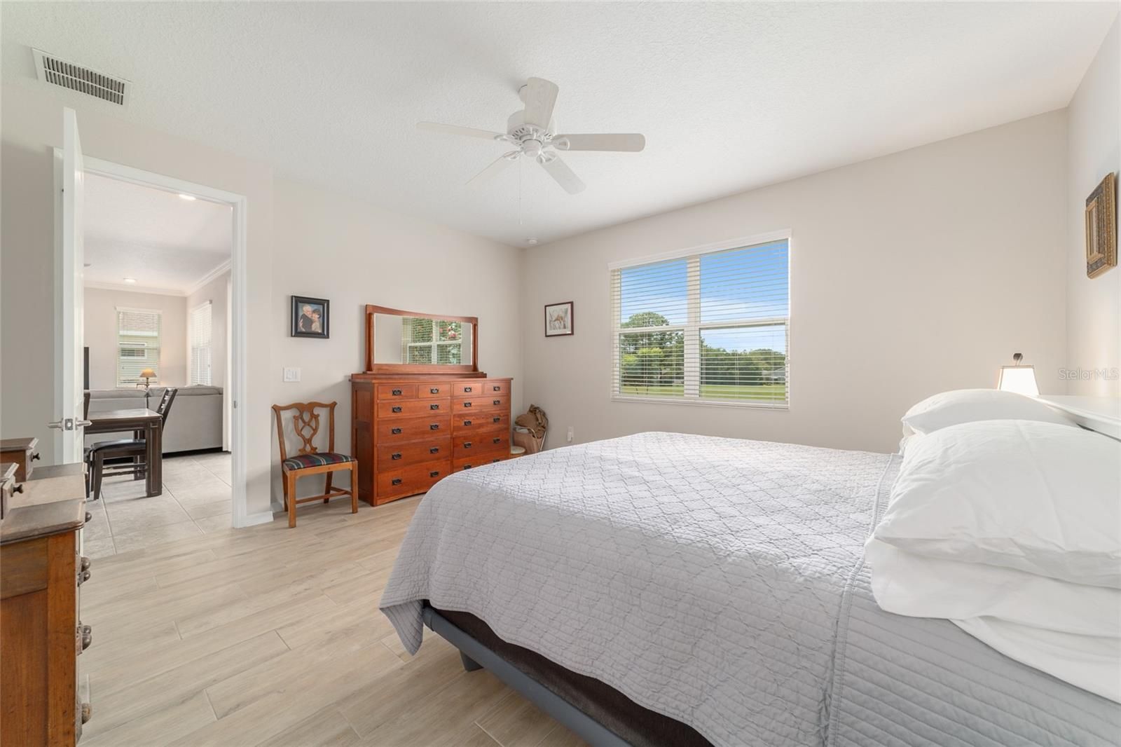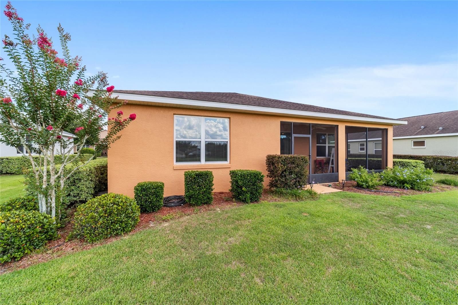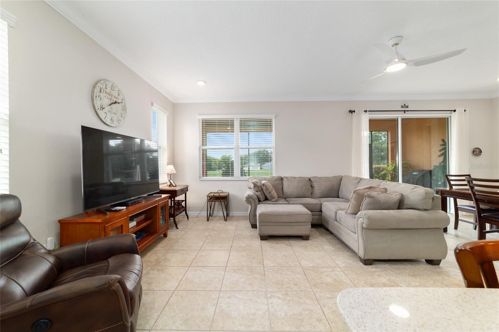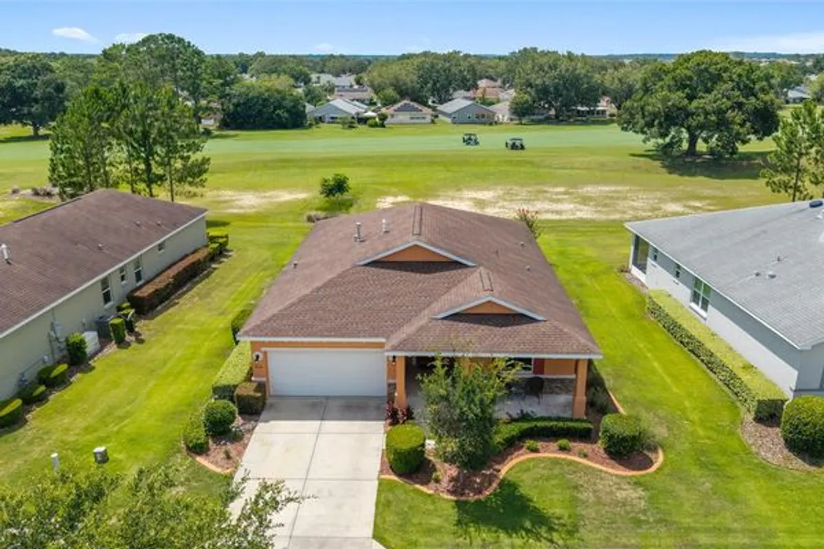 Golf Course Living at Its Best – Stunning Juliana Model with Unobstructed Views on a Quiet Road Perfectly positioned on the golf course on a quiet road, this beautifully maintained 2017 Juliana model offers sweeping, unobstructed views and a thoughtfully upgraded interior designed for both comfort and style. Enjoy low-maintenance living with tile flooring throughout and no carpet, all while taking in the serene golf course backdrop. The open-concept layout is ideal for everyday living and entertaining, featuring a spacious kitchen with staggered cabinetry, under-cabinet lighting, a large center island, and generous prep and gathering space, all oriented to capture the view. Crown molding in the living room, kitchen, and entry enhances the home’s refined feel, while 8-foot interior doors and a stained-glass sidelight at the front entry add architectural character. A versatile flex room with glass French doors provides the perfect space for a home office, den, or hobby room. The private primary suite offers golf course views, a large walk-in closet, and an en-suite bath with dual vanities and a walk-in shower. The laundry room is conveniently located just off the kitchen for everyday ease. Additional highlights include added attic insulation for improved energy efficiency. Located in Ocala’s premier gated 55+ community, residents enjoy access to golf, fitness centers, pools, clubs, and golf-cart access to two nearby shopping centers. Enjoy comfort, convenience, and a front-row seat to the golf course in a peaceful setting. Furnishings available outside of contract.