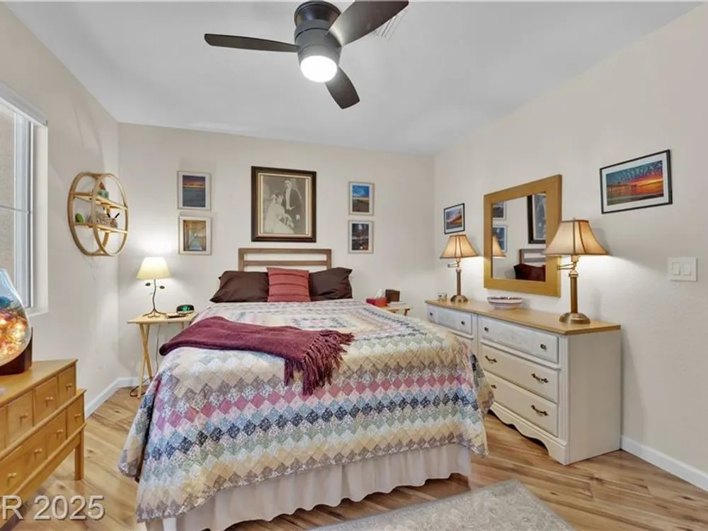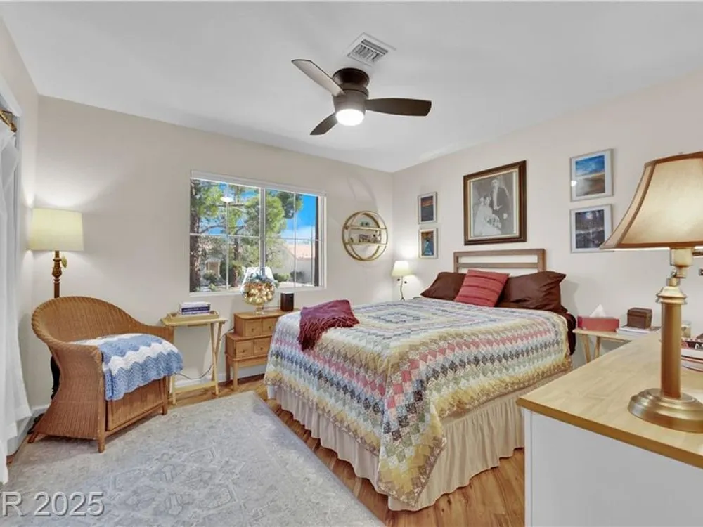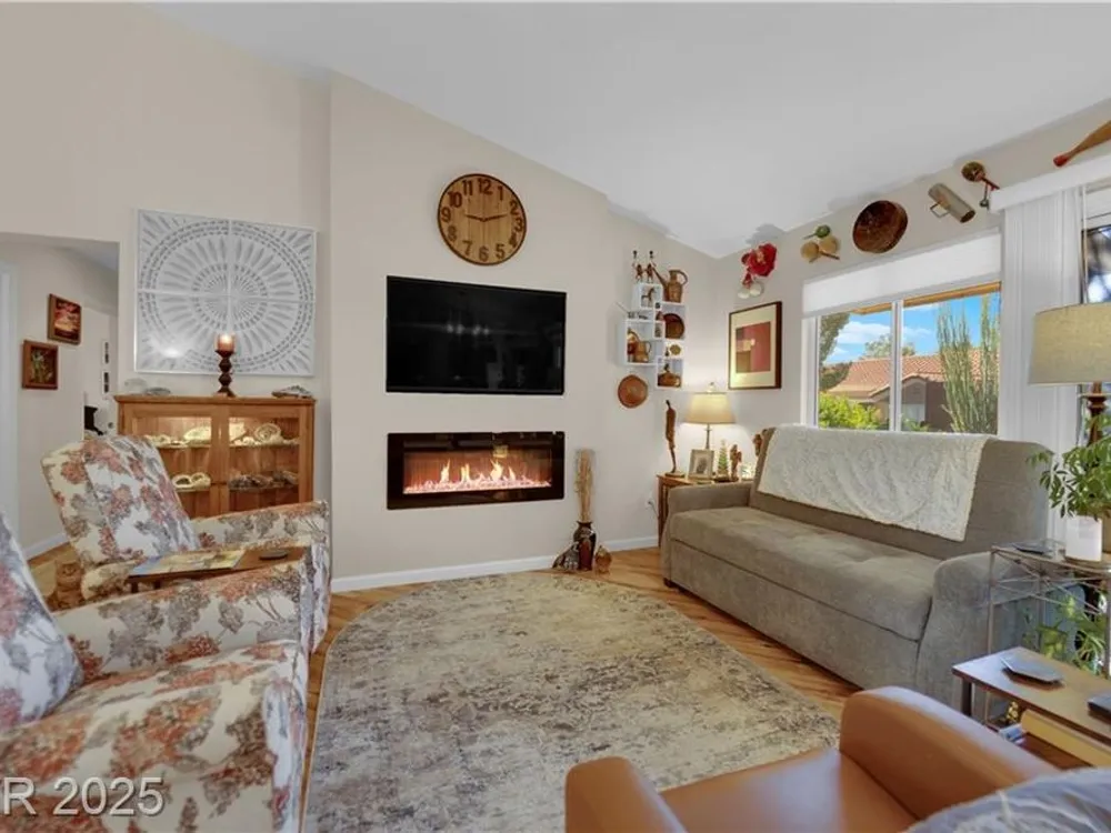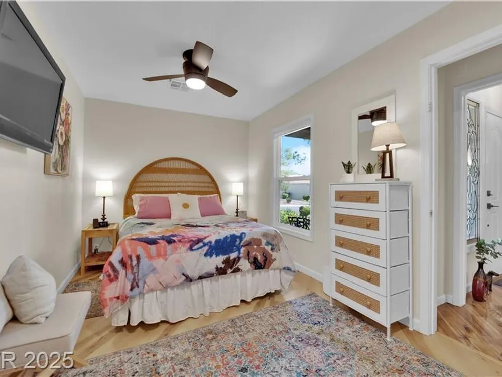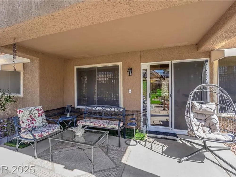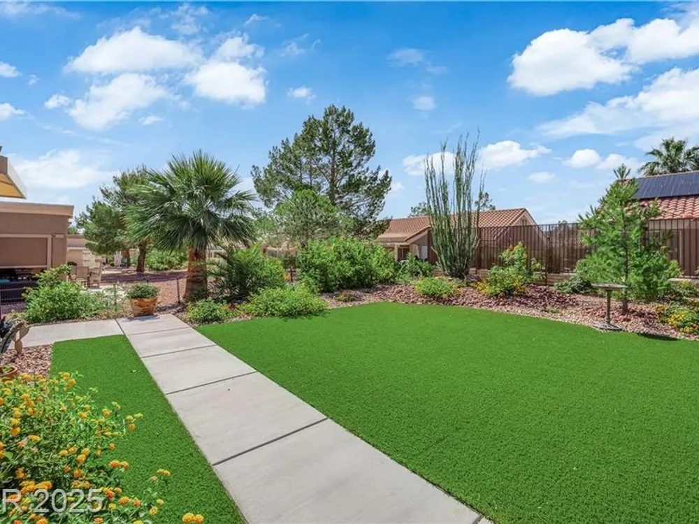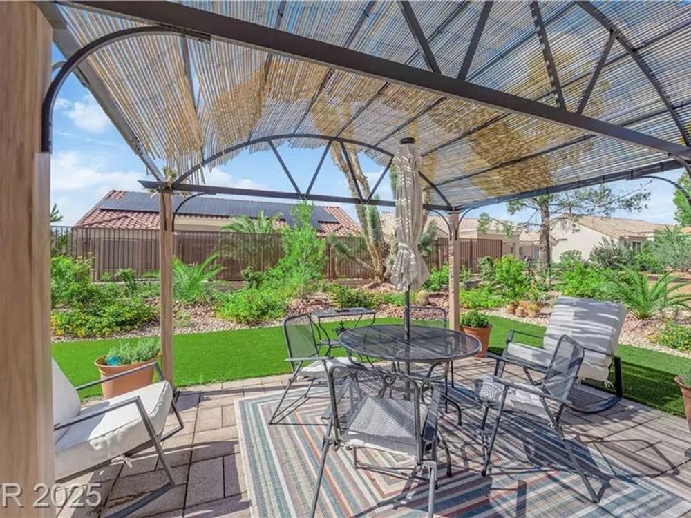 HIGHLY UPGRADED 3-Bedroom Home with Paid-Off Solar Panels in Sun City Summerlin!This beautifully upgraded 3-bed, 2-bath home features paid-off solar panels for \$19/month electric bills. The rare third bedroom adds flexibility, while the upgraded kitchen boasts new counters, sleek black hardware, and modern appliances. Relax by the cozy electric fireplace with optional heat.Enjoy new fans, newer flooring, and cordless pleated blinds throughout. The laundry area is updated with new cabinets for extra storage. Outside, you’ll find new awnings, solar screens, and immaculate landscaping with irrigation. The new garage door and storage rack provide added convenience.This home offers both style and energy efficiency, along with easy access to Sun City Summerlin’s exceptional amenities. Schedule your tour today!