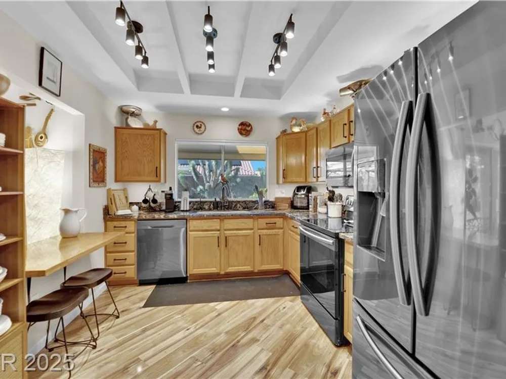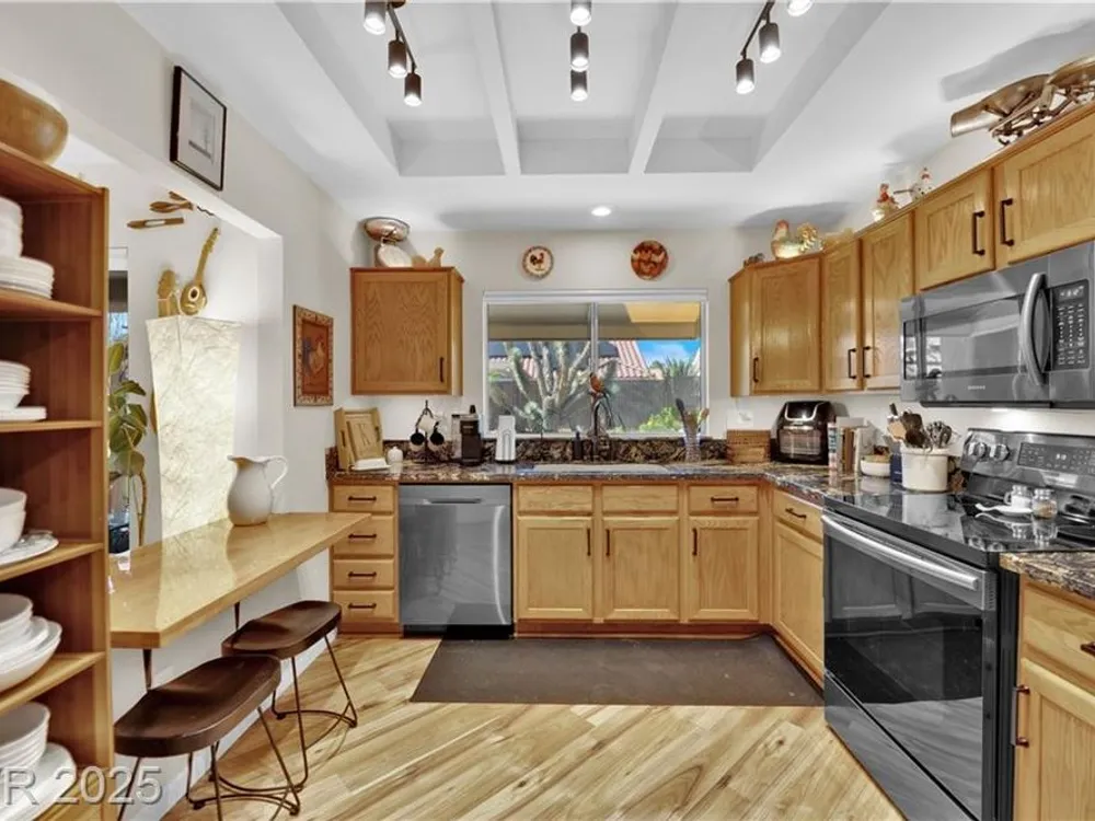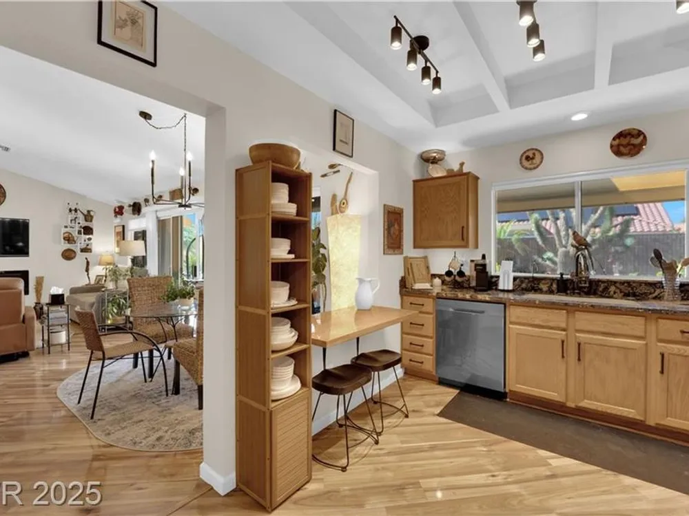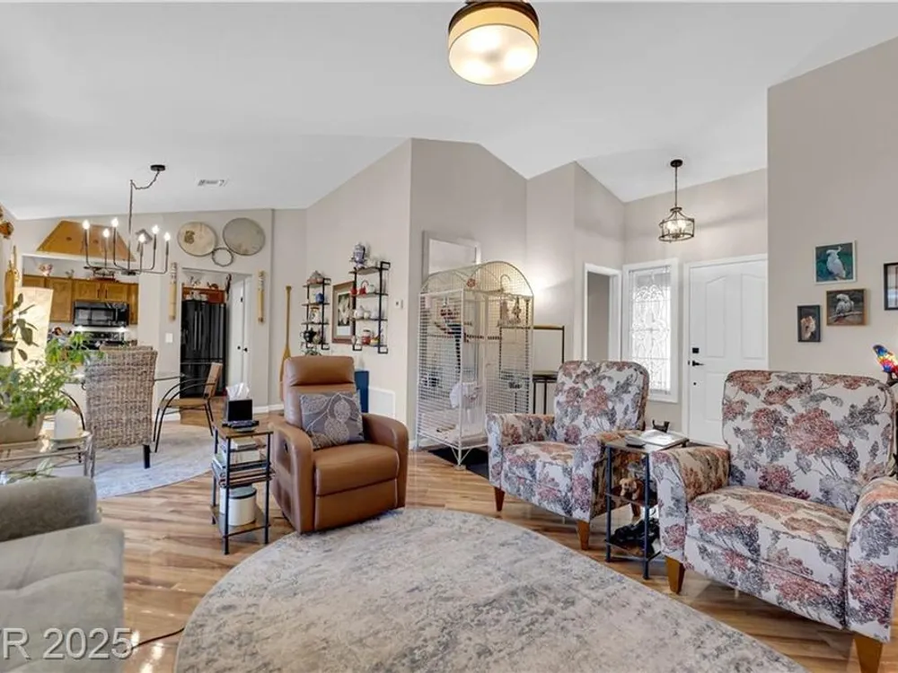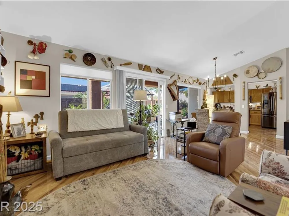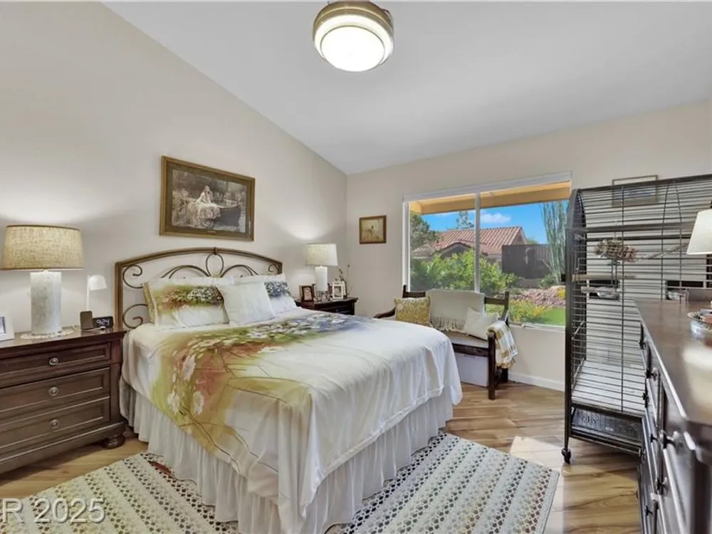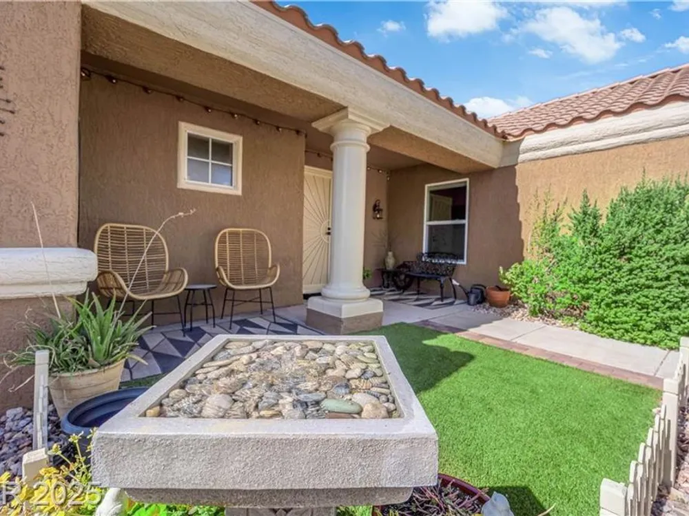 HIGHLY UPGRADED 3-Bedroom Home with Paid-Off Solar Panels in Sun City Summerlin!This beautifully upgraded 3-bed, 2-bath home features paid-off solar panels for \$19/month electric bills. The rare third bedroom adds flexibility, while the upgraded kitchen boasts new counters, sleek black hardware, and modern appliances. Relax by the cozy electric fireplace with optional heat.Enjoy new fans, newer flooring, and cordless pleated blinds throughout. The laundry area is updated with new cabinets for extra storage. Outside, you’ll find new awnings, solar screens, and immaculate landscaping with irrigation. The new garage door and storage rack provide added convenience.This home offers both style and energy efficiency, along with easy access to Sun City Summerlin’s exceptional amenities. Schedule your tour today!