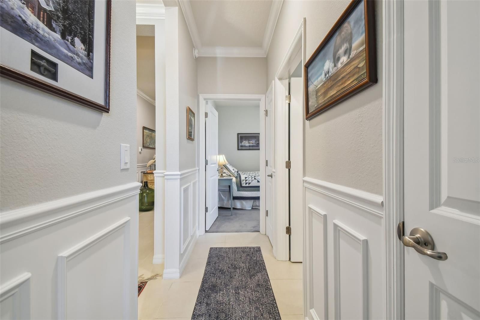 Welcome to this exquisite single-family SMART home nestled within the desirable JB Ranch 55+ community. Boasting a generous total living area of 2,034 sq. ft. on a beautifully landscaped 7,405 sq. ft. lot, this home encompasses a total building area of 2,641 sq. ft. This meticulously maintained residence features 4 spacious bedrooms and 2 full baths, complemented by a convenient 2-car garage. The home has undergone numerous upgrades that enhance its appeal and functionality, including elegant crown molding, wainscoting, tasteful backsplash, upgraded ceiling fans, fresh paint, new carpeting, and updated electrical systems. The standout feature of this home is the stunning enclosed lanai, adorned with custom drapes, providing additional living space perfect for entertaining or relaxing with family and friends. Convenience is key with this property, as it is ideally situated close to all major shopping centers, a variety of restaurants, and local hospitals, ensuring that all your needs are just moments away. Located in the heart of Ocala, you will have ample opportunities to explore and enjoy the beautiful outdoor surroundings, including parks and recreational areas. For your convenience, the current HOA fees are $145 if the homeowner opts to maintain their own lawn or $197 if JB Ranch provides lawn care services. Your HOA dues cover a wealth of amenities, including access to a modern clubhouse, refreshing pool, fitness center, bocce ball courts, pickleball, tennis courts, and trash removal services. As you approach the property, the thoughtfully designed landscaping warmly welcomes you to this charming and cozy home. Don't miss the opportunity to make this vibrant community and beautiful residence your new home!