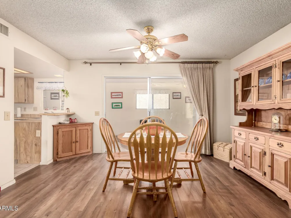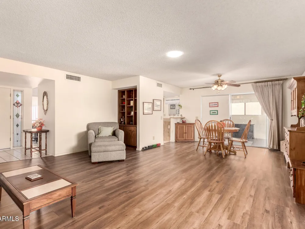 Location, location, location! Charming 2BR home on the GOLF COURSE in Sun Lakes, just 8 homes from the Fire Dept! Enjoy 1,545 sq ft including a 500 sq ft enclosed AZ room with auxiliary heating & cooling—perfect for relaxing or hobbies. Bright and inviting with wood-look & tile floors, spacious living & dining areas, and a cozy kitchen with breakfast nook. The primary suite offers dual sinks, vanity & walk-in closet. Newer A/C and roof! Sit back, unwind, and take in the golf course views while living the Sun Lakes lifestyle!
