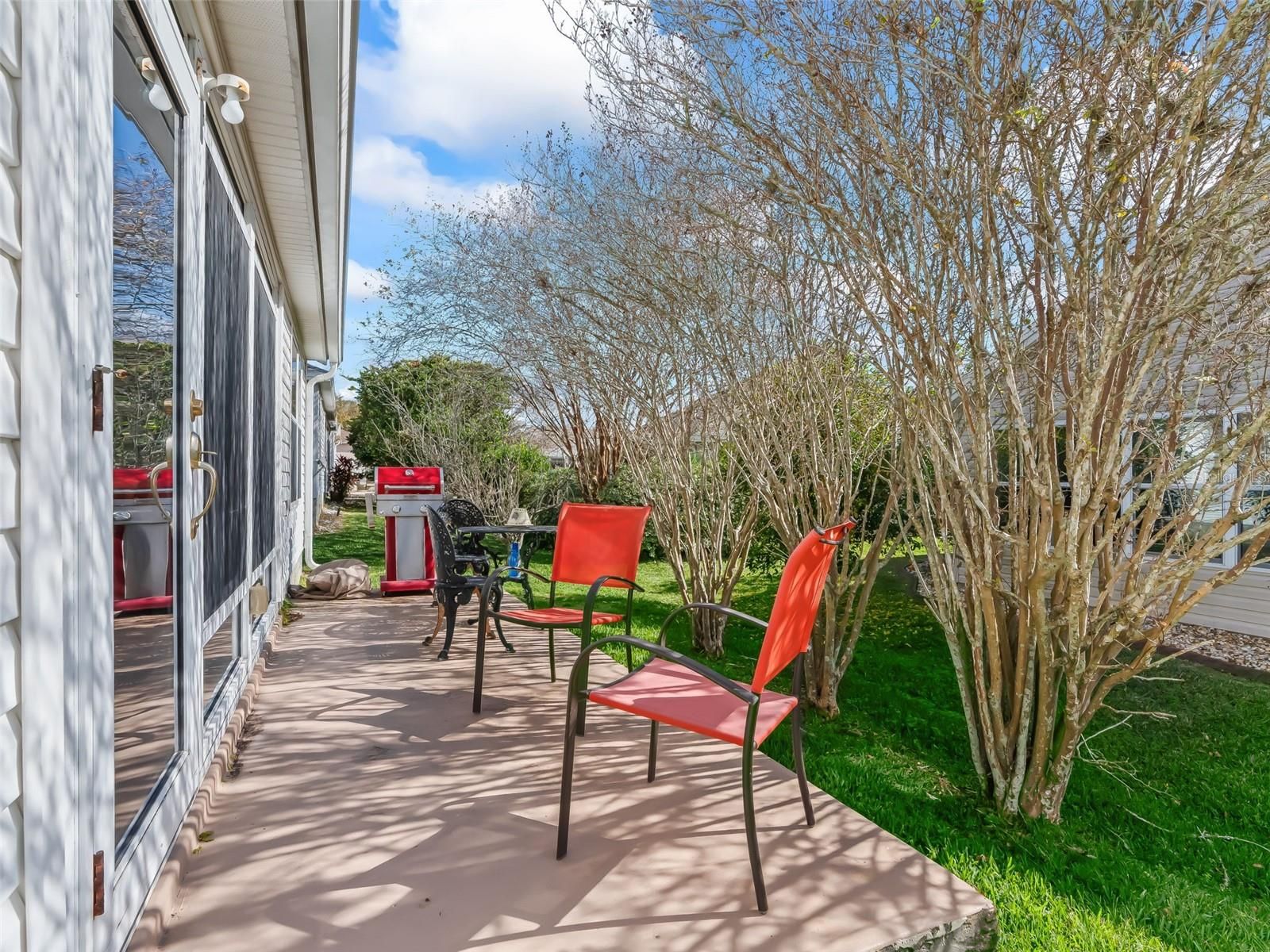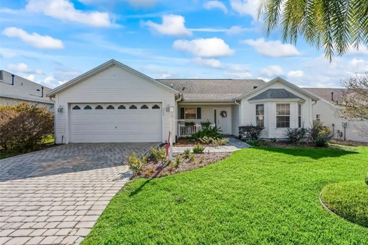 BOND PAID! ~ HVAC 2022 ~ Roof 2019 ~ Welcome to this beautiful 3-bedroom, 2-bath Cypress Designer Home, perfectly situated on a quiet, beautifully landscaped lot in the highly sought-after Village of Woodbury. From the moment you arrive, you’ll appreciate the pavered walkway and driveway, along with the inviting curb appeal. Step inside to a bright, open floor plan featuring high ceilings, tile and luxury vinyl plank flooring throughout (no carpet), and the added convenience of a rare entry closet. The spacious kitchen is a chef’s delight, offering abundant light oak cabinetry with pull-outs, a gas range, pantry, ample counter space, recessed lighting, a large bay window, and a cozy breakfast nook. The formal dining room is conveniently located just off the kitchen. The oversized living room boasts volume ceilings and abundant natural light, flowing seamlessly into the enclosed Florida Room, currently used as an art studio. This sun-filled space features roller shades and a glass door leading to the rear patio—perfect for grilling and entertaining family and friends. The expansive and private primary suite is a true retreat, featuring two walk-in closets, a ceiling fan, and an en-suite bath with dual sinks, a makeup vanity, step-in shower, and natural light. The guest wing, located on the opposite side of the home, includes two bright guest bedrooms with built-in closets and ceiling fans; one bedroom offers direct access to the lanai through sliding glass doors. The guest bath features tile flooring, a tub/shower combo and a hall linen closet. Additional highlights include an indoor laundry room with front-load washer and dryer, cabinetry, extra storage, a utility tub, and space for a small home office. The garage offers extra depth, pull-down attic access, and built-in cabinets for optimal storage. This prime location is located just a short golf cart ride to the Springdale Pool, Dog Park, Mulberry Grove Regional Recreation Center, Nancy Lopez Country Club, First Responders Recreation Center, and Mulberry Grove Shopping Center offering grocery, drugstore, banking, medical, VA clinic, dining, and more! Entertainment at Savannah Center and dining at Nancy Lopez Legacy and Glen View Country Clubs are just minutes away. This home is move-in ready, available for a quick close, and waiting for you to start enjoying The Villages lifestyle today! Schedule your private home tour today! Room Measurements and Square Footage are approximate and should be verified by buyer/buyer’s agent. All information is deemed reliable but not guaranteed.