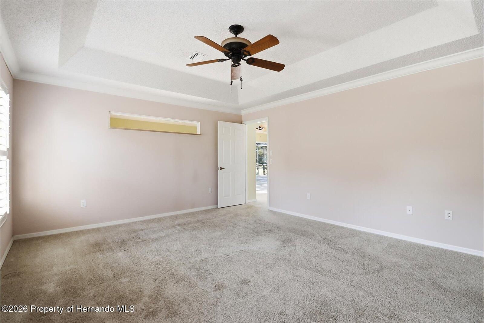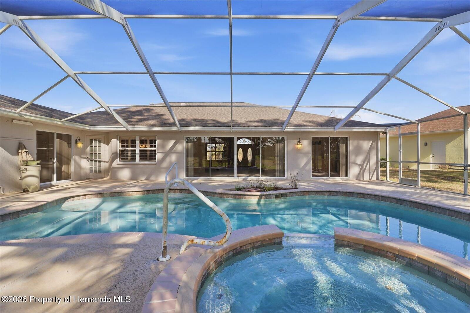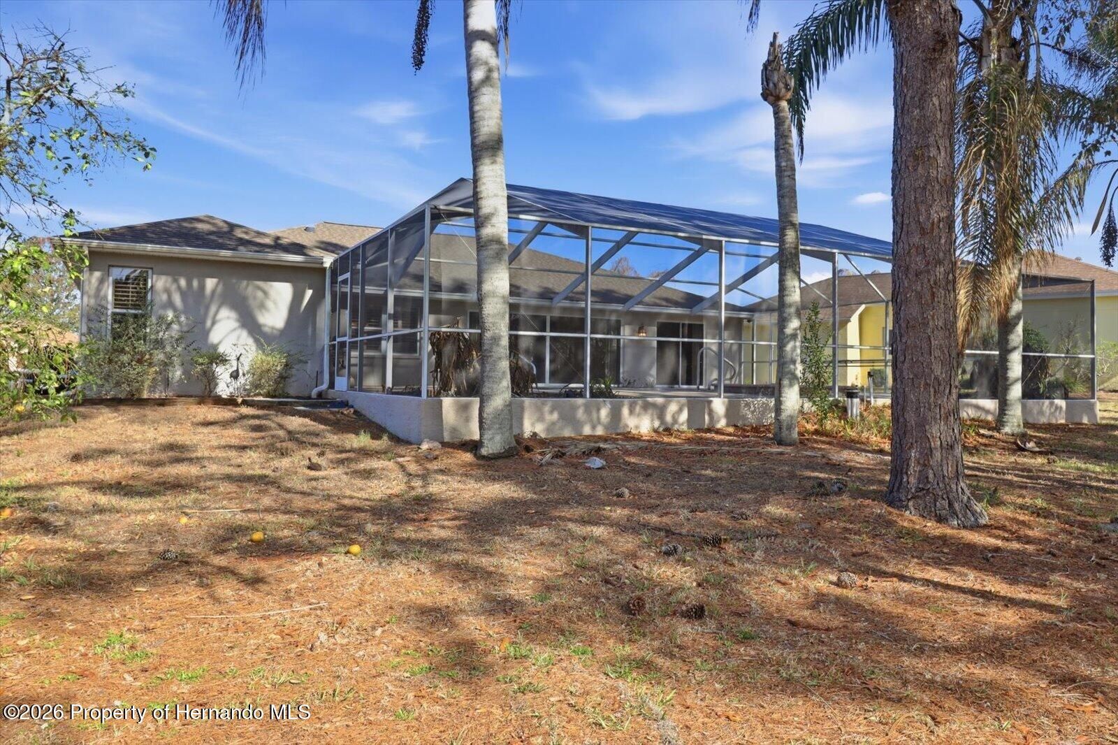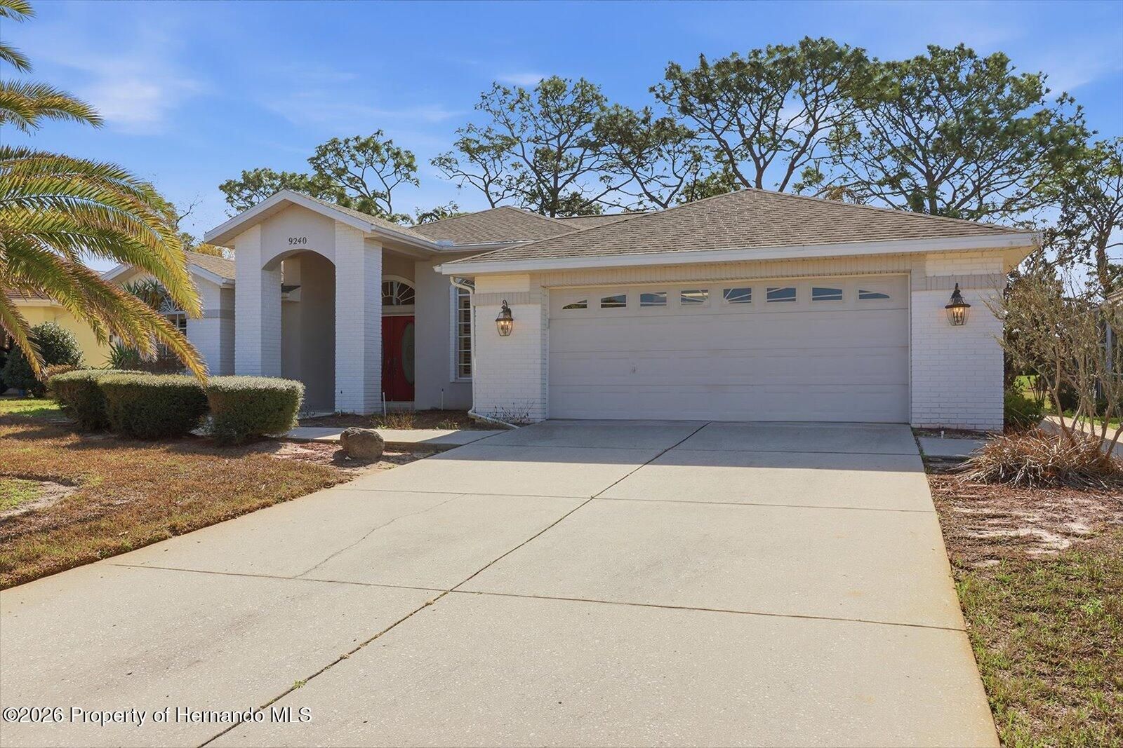 PRICED TO SELL! A 2,390 SQ FOOT POOL HOME WITH A VIEW OF THE GOLF COURSE. This is a great price for the space and location. Spacious layout. This home has 3 bedrooms, 2 bathrooms and oversized garage with a separate garage door for a golfcart. All the windows have plantation shutters. All the rooms are great size. The master bedroom has two walk-in closets, and the master bath has dual sinks and a separate tub and shower. The nice size den is a great place to relax, watch tv and enjoy the view of the golf course. Large sliding glass doors leads you to the swimming pool area has great space to place all your patio furniture. This gated community provides a country club lifestyle with access to an 18-hole championship golf course, clubhouse, fitness center tennis courts and much more. Easy access and just minutes away from the Weeki Wachee River, the gulf, shopping, restaurants, Publix and the Veterans Expressway that takes you to Tampa International Airport in no time.