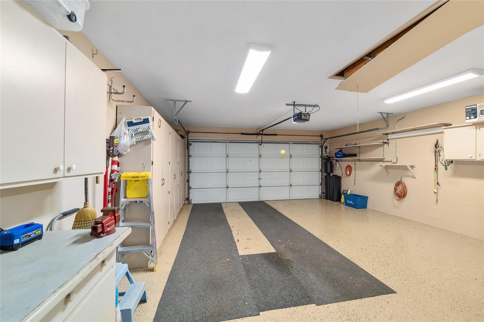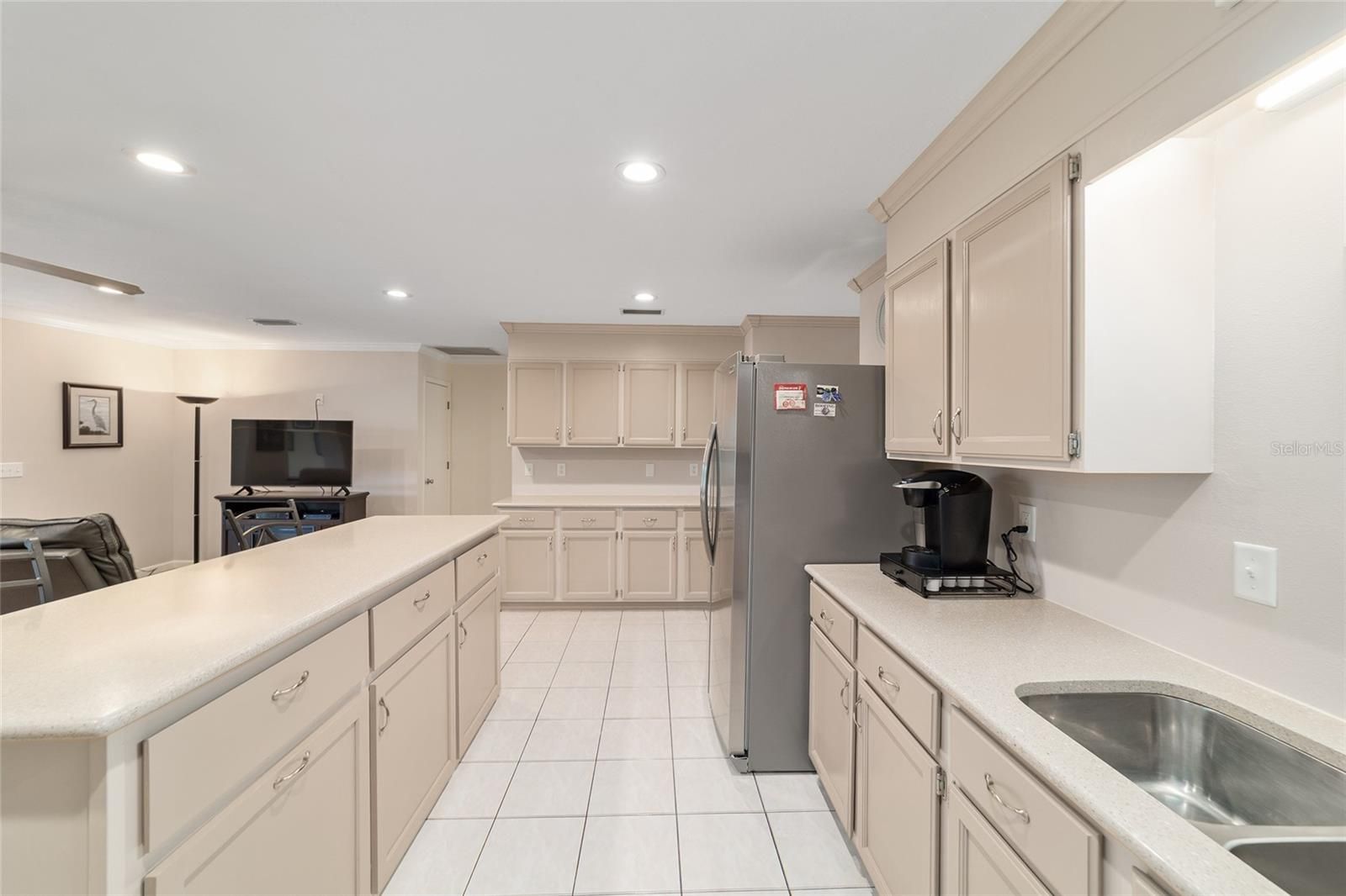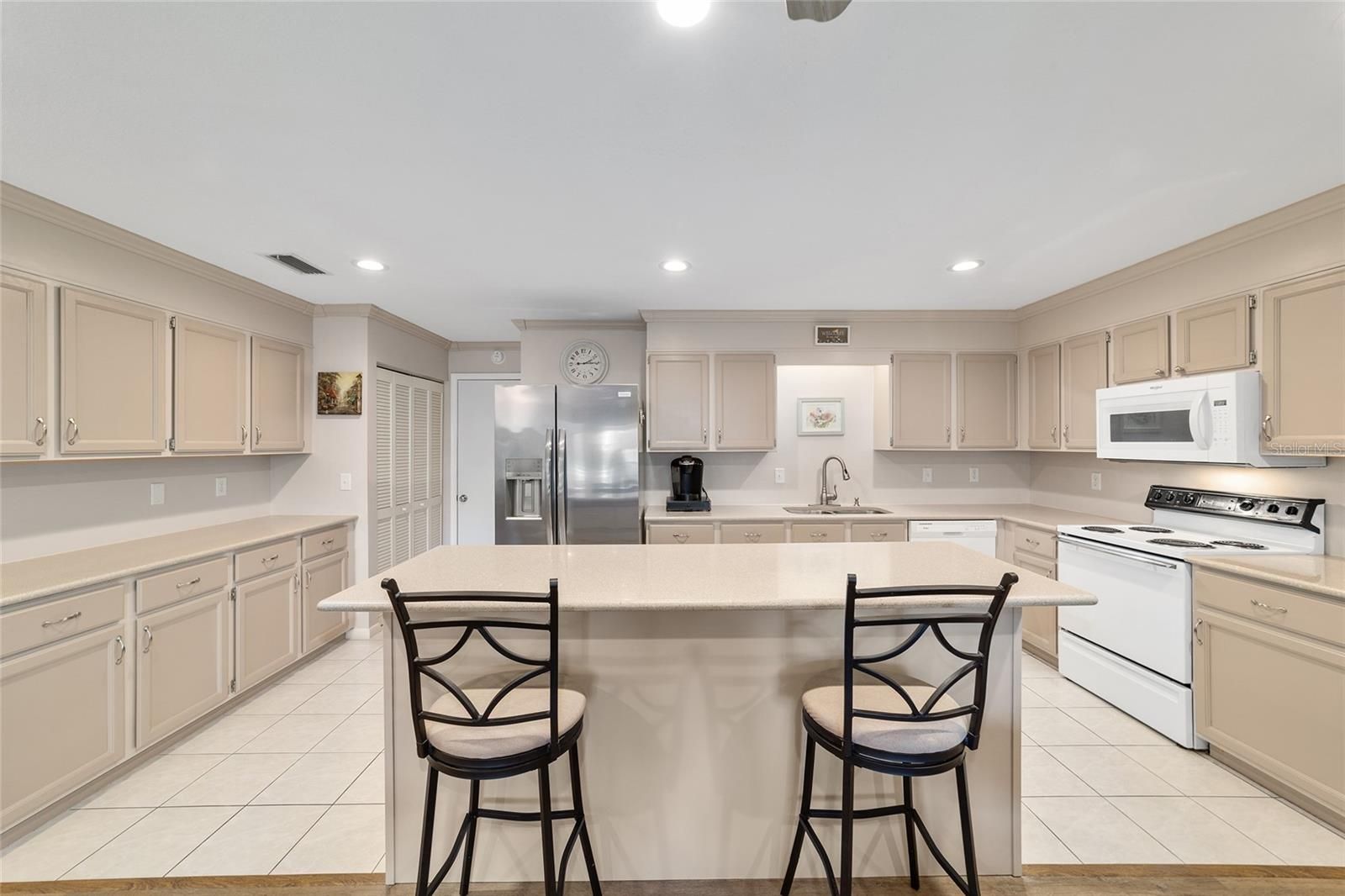 Bostonian Model Villa in On Top of the World Ocala offering 1,748 square feet, a 2-car garage, private backyard, Florida room under heat and air, and updated windows, all priced at $199,000. This well-maintained home presents a rare opportunity for buyers seeking space, storage, and move-in ready condition under $200K in OTOW. The interior features neutral paint, crown molding, recessed lighting, and no popcorn ceilings in the living space, creating a clean and updated feel. Tile flooring is featured in the kitchen, laminate flooring runs throughout the main living areas and bedrooms, and the bathrooms are finished with durable linoleum flooring. The kitchen includes Corian countertops, pullouts in all cupboards, abundant cabinetry, and a salt water filtration system. The washer and refrigerator were replaced in February 2026. Most furnishings can be included, offering a convenient, move-in ready option for buyers. The Murphy bed in the spare bedroom conveys, providing flexibility for guest or office use. The updated primary bathroom features dual sinks and tasteful finishes. Additional updates include an AC replaced in 2023. The garage offers epoxy flooring, built-in storage, new springs on the garage door, and pull-down attic stairs with lighting for added storage. Outdoor living is enhanced by a Florida room under air, an additional screened room, and an open rear patio. Mature privacy shrubs create a peaceful and private backyard setting. Villa living includes exterior maintenance, allowing for a low-maintenance lifestyle while enjoying the resort-style amenities On Top of the World offers, including golf courses, heated pools, fitness centers, restaurants, clubs, and golf-cart access to shopping and medical offices. At $199,000, this Bostonian villa combines size, updates, privacy, and flexibility, making it a strong value in today’s OTOW market.