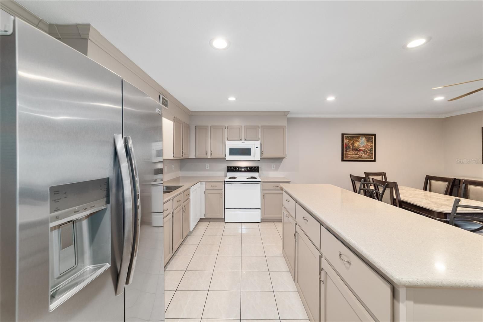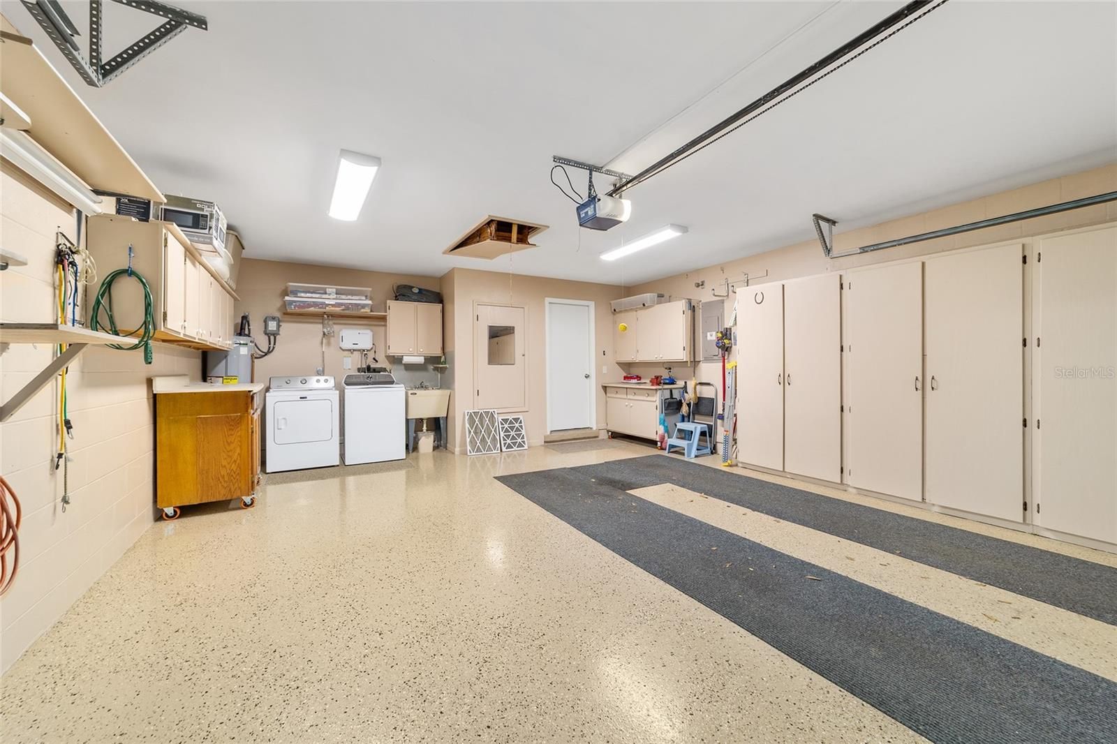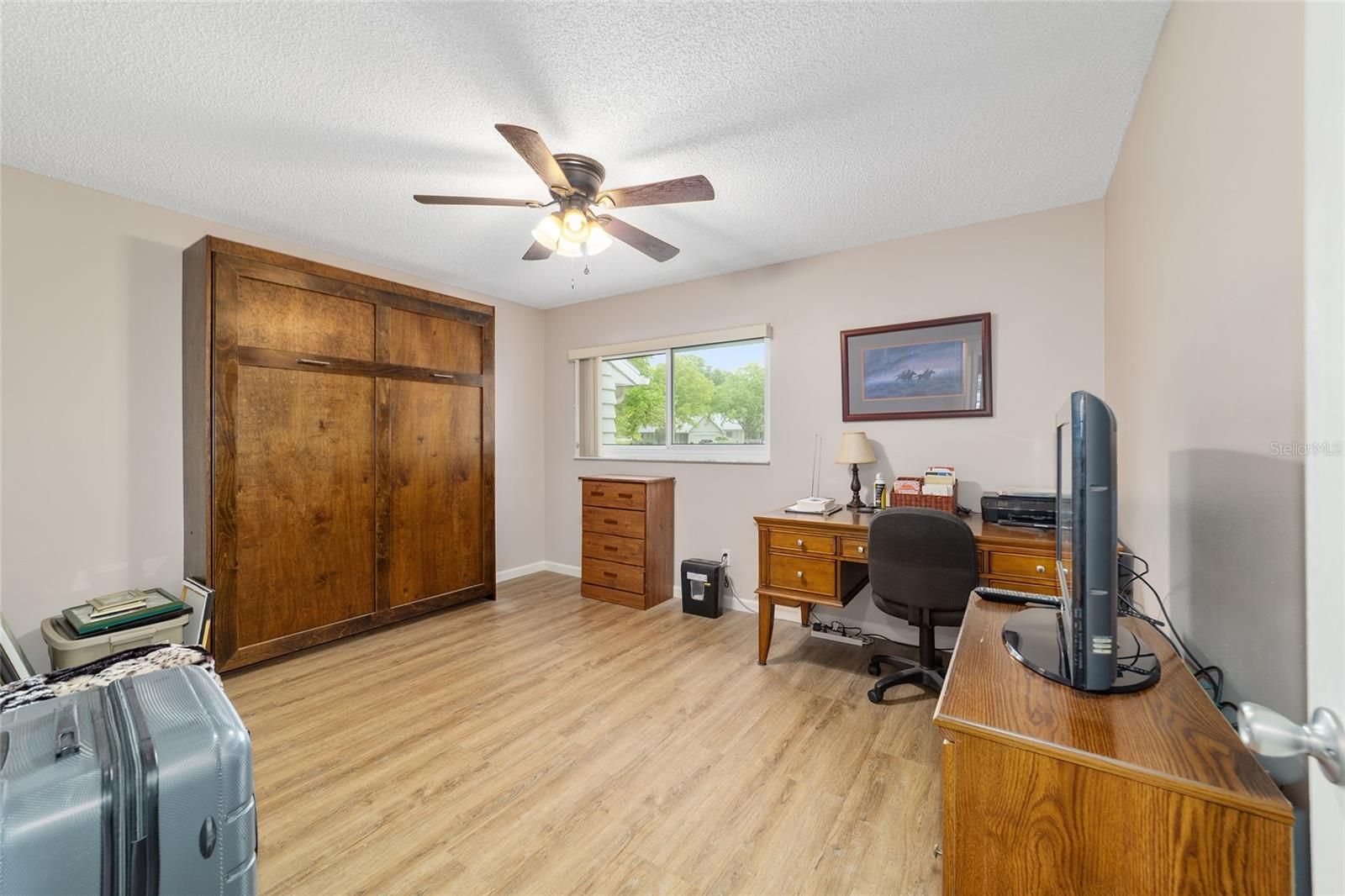 Bostonian Model Villa in On Top of the World Ocala offering 1,748 square feet, a 2-car garage, private backyard, Florida room under heat and air, and updated windows, all priced at $199,000. This well-maintained home presents a rare opportunity for buyers seeking space, storage, and move-in ready condition under $200K in OTOW. The interior features neutral paint, crown molding, recessed lighting, and no popcorn ceilings in the living space, creating a clean and updated feel. Tile flooring is featured in the kitchen, laminate flooring runs throughout the main living areas and bedrooms, and the bathrooms are finished with durable linoleum flooring. The kitchen includes Corian countertops, pullouts in all cupboards, abundant cabinetry, and a salt water filtration system. The washer and refrigerator were replaced in February 2026. Most furnishings can be included, offering a convenient, move-in ready option for buyers. The Murphy bed in the spare bedroom conveys, providing flexibility for guest or office use. The updated primary bathroom features dual sinks and tasteful finishes. Additional updates include an AC replaced in 2023. The garage offers epoxy flooring, built-in storage, new springs on the garage door, and pull-down attic stairs with lighting for added storage. Outdoor living is enhanced by a Florida room under air, an additional screened room, and an open rear patio. Mature privacy shrubs create a peaceful and private backyard setting. Villa living includes exterior maintenance, allowing for a low-maintenance lifestyle while enjoying the resort-style amenities On Top of the World offers, including golf courses, heated pools, fitness centers, restaurants, clubs, and golf-cart access to shopping and medical offices. At $199,000, this Bostonian villa combines size, updates, privacy, and flexibility, making it a strong value in today’s OTOW market.