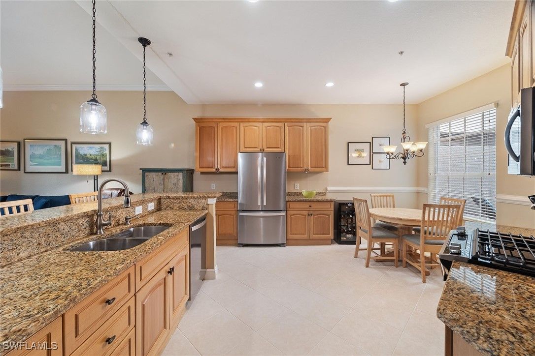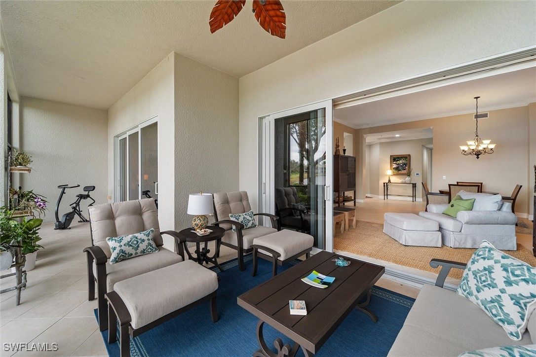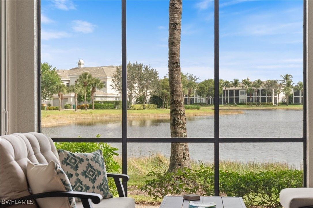 The J.W. Marriott golf membership is available with this charming luxury condominium. In newly upgraded Laguna at Fiddler's Creek, this superior location has an exceptional lake view and is close to the Laguna neighborhood pool. The attached two-car garage and delightful courtyard provide a welcoming entry into an open foyer. The charming interior includes 10-foot ceilings, 8-foot doors and impact glass throughout. Ceramic tile flooring and the ideally designed floor plan add to this environment of gracious living. Granite counters, new appliances and open space throughout create a theme of luxury living with three bedrooms and three full baths. Walk-in closets and the exceptionally spacious primary bedroom area are particularly attractive at end of a busy day. A gracious and lovely environment, beautifully done, this desirable condominium complex has been newly renovated throughout with paint, new roof, trim hardware and impact glass doors, and windows. Attention to detail includes new lanai screens and a redesign of the landscaping areas throughout. Significant attention was paid to the community pool area. Fiddler's Creek is exceptional in many ways, including a full range of activities with pickleball, tennis, bocce ball and a fitness center and spa, including full staff and new equipment. Full time social director to keep the fun going and easy access to Marco Island and Old Naples. Fiddler's Creek provides an unparalleled luxury environment for full and seasonal homeowners.