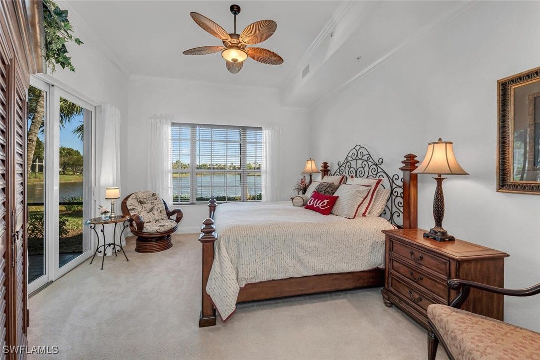 Experience the epitome of elegance and sophistication in this stunning ground floor condominium, nestled within the prestigious Laguna Village of Fiddler’s Creek. This award-winning community offers world-class amenities in a luxurious setting. Designed for comfort and entertaining, this residence features a custom pub-style bar, complete with wet bar, custom ceiling beams, and more. The spacious kitchen boasts a gas range, stylish backsplash, and coordinating laundry room upgrades. Seamlessly blending indoor and outdoor living, the home offers a charming front courtyard and an east-facing tiled lanai—perfect for morning sunrises over the serene lake. With three spacious bedrooms, each with its own full bath, this home is designed for both privacy and sophistication. Additional features include crown molding, diagonal tile flooring, custom window treatments, and a natural gas line for outdoor grilling. Residents of Fiddler’s Creek enjoy access to the 54,000-square-foot Club and Spa, resort-style pools, a fitness center, and exceptional dining options, tennis, pickleball, and optional golf and boating memberships. Ideally located between Naples and Marco Island, this residence provides effortless access to pristine beaches, dining, and entertainment. Don’t miss the opportunity to embrace resort-style living at its finest.