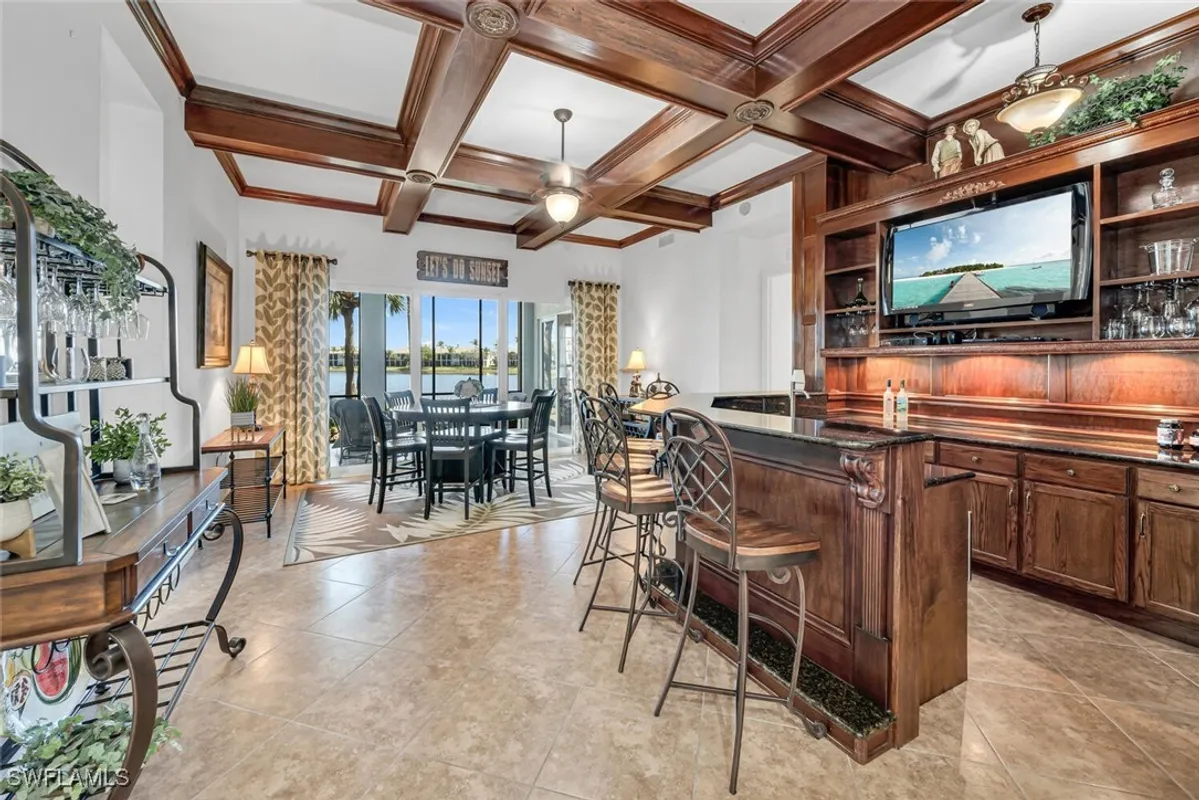 - Breakfast Bar, Bathtub, Coffered Ceiling(s), Dual Sinks, Entrance Foyer, Eat-in Kitchen, High Ceilings, Living/Dining Room, Main Level Primary, Separate Shower, Cable TV, Bar, Walk-In Closet(s), Window Treatments, Split Bedrooms