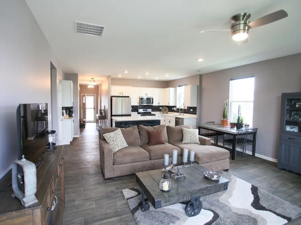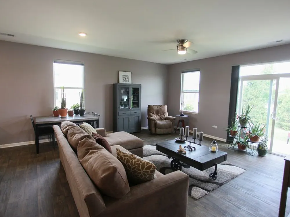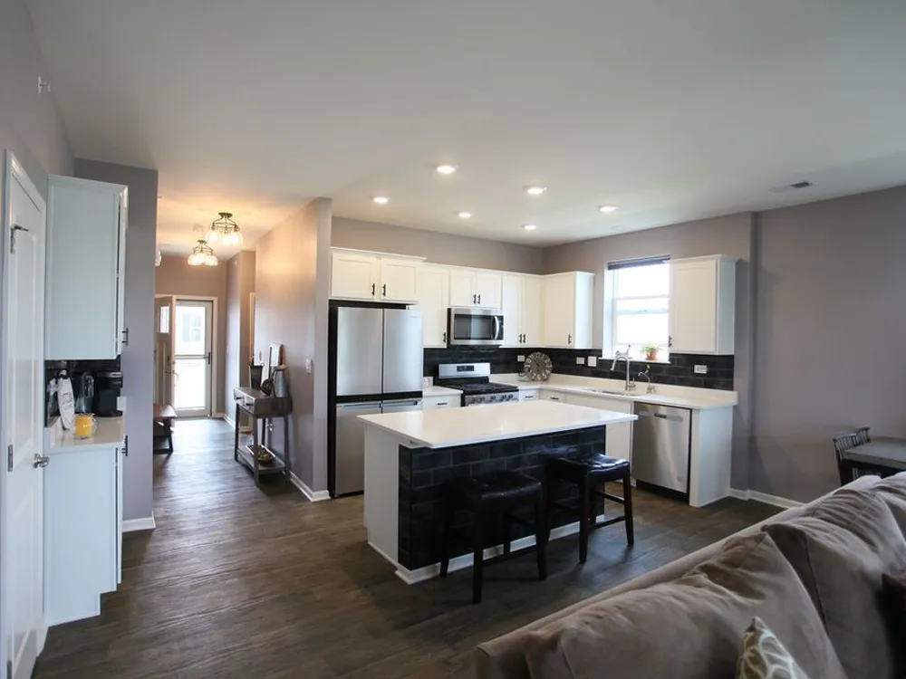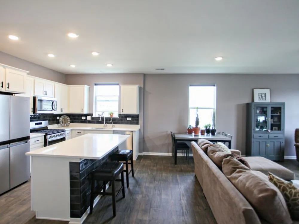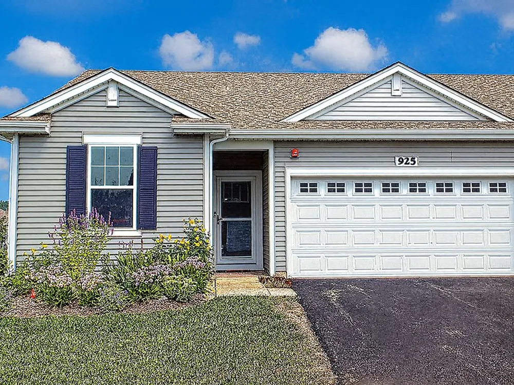 Welcome to 925 Darwin St - a beautifully designed END UNIT RANCH townhome located in the sought-after Lincoln Valley community! This move-in-ready Campbell model offers 2 spacious bedrooms, 2 full bathrooms, and an attached 2-car garage, all nestled on a professionally landscaped homesite.Step inside to find a freshly painted light-filled open-concept layout featuring a designer kitchen with a large center island, pantry, white cabinetry, custom backsplash and a full suite of stainless steel appliances. The expansive great room and dining area flow effortlessly-perfect for entertaining or everyday living.The private primary suite includes a generous walk-in closet and a luxurious bath with a walk-in shower and oversized linen closet.Featured upgrades: Upgraded light fixtures, Custom window treatments, Kitchen upgrades, ADA features and more! Enjoy Smart Home Technology features for added convenience and efficiency.Lincoln Valley is a vibrant clubhouse community offering an unbeatable lifestyle: fitness center, health club, outdoor pool, bocce and pickleball courts, walking trails, and more-all just steps from the Red Oak Nature Center and the scenic Fox River Trail.