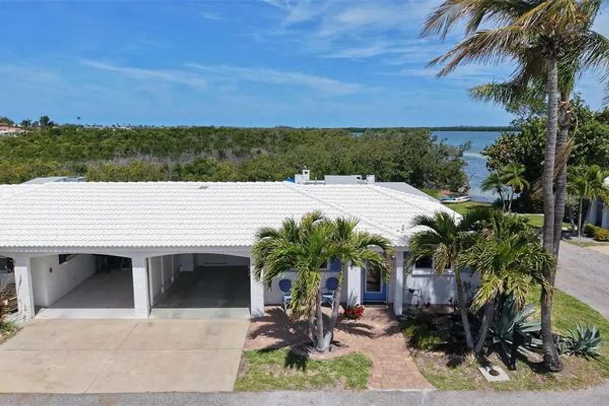 Wow! Panoramic water views from almost every window, plus rare direct access to Bay waters just steps from the back paver patio. This completely renovated 2 bed/2 bath, 1449 sq. ft home is a must see! Fully remodeled in 2025/2026 in full compliance with FEMA requirements. It is all about the details as this gorgeous Spanish Main turn-key furnished villa is ready to welcome you home! The centerpiece of the kitchen is the very large strategically custom designed Quartz island that doubles as a dining table, in a soft color palette that can seat 10. The kitchen features beautiful all wood 42” cabinetry, stainless steel appliances, large undermount sink with a push button garbage disposal, lovely backsplash and lots of storage with an abundant of additional counter space, perfectly designed for entertaining. The villa flows seamlessly with an expansive open floor plan, plank tile flooring in every room plus crown molding that frames each room. The large primary bath has an oversized classically designed walk-in shower created for handicap access with double sinks. The tastefully appointed guest bath has an all-glass enclosed walk-in shower. From guest bath, enter the 9X6 in villa laundry room with new stacked Electrolux washer and dryer. All hurricane grade windows and doors to secure the home from the Florida storms. Custom window shades provide sun mitigation and ultimate privacy. The fully enclosed glass Florida room is a treasure in and of itself with extensive views of Sarasota Bay with a lush backdrop providing total privacy. There is also a built-in office space, large walk-in closet, additional flex space for dining and/or lounging plus a dry bar and wine center which makes this a very useful space. Step outside onto the brick paver patio and lounge, grill and relax with the sound and views of the Bay waters and abundant bird and wildlife. Grab your kayak or paddleboard and launch right from the backyard with direct water access to the open Bay waters. This villa is packed with so many upgraded features with new tile roof in 2019, A/C 2020, and tankless hot water in 2018. The villa is part of the Spanish Main Yacht Club community which has some of the best waters to explore in Sarasota for fishing, sandbar enjoyment, kayaking and swimming right in your own backyard. You have direct access to the Intra-coastal waterway and a quick boat ride to the Gulf of Mexico with restaurants you can get to by boat. The Spanish Main maintenance free- community has a wonderful neighborhood feel with a heated pool overlooking the 40-slip Marina, deeded beach access, with social events galore making every day feel like a vacation as you lounge in the sun and enjoy the sea breeze. Slips are available for very affordable leasing. The deeded beach access is perfect for those numerous beach days and magnificent sunsets. This pet-friendly very active 55+ community are added benefits for your enjoyment. Located only a short drive to the fantastic shops and restaurants including Anna Maria Island plus cultural events that Sarasota and St. Armand’s Circle have to offer.