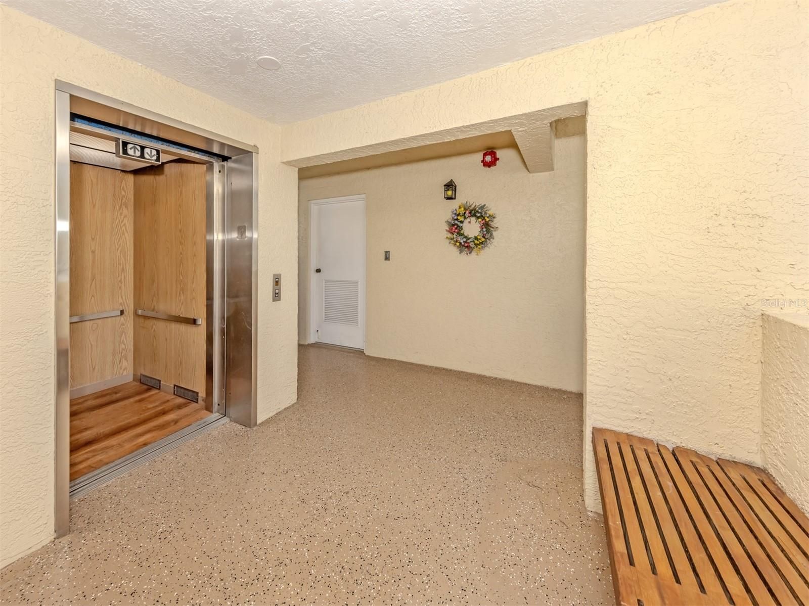 After arriving at the residence from the large main elevator, an open southern exposure with light crossing Plantation's Bobcat golf course greets you as you enter this comfortable two-bedroom, two-bath condominium. With ceramic tile and recent luxury vinyl flooring throughout, plus a well-lit kitchen with a tray ceiling and a breakfast bar facing the dining area, the living and dining area flow make it easy to enjoy the panoramic views of the golf course's ninth fairway that is also captured by the enclosed lanai. The primary bedroom with its ensuite bath has a southern view overlooking the golf course. A stack washer and dryer in the home adds to its ease of living. A small dog or cat is allowed. Included is a large storage closet and carport parking (space #13) as well as adjacent guest parking. The Fairway's community clubhouse and pool are right nearby. The clubhouse features an active social calendar, a kitchen and a library. Membership is optional at Plantation Golf and Country Club offering amenities including a fitness center, Olympic scale swimming pool, tennis, pickleball and two full golf courses. This residence is close to shopping, restaurants and professional baseball at Wellen Park or the beaches in Venice and its many community delights. Rental investors may find this residence a good opportunity.