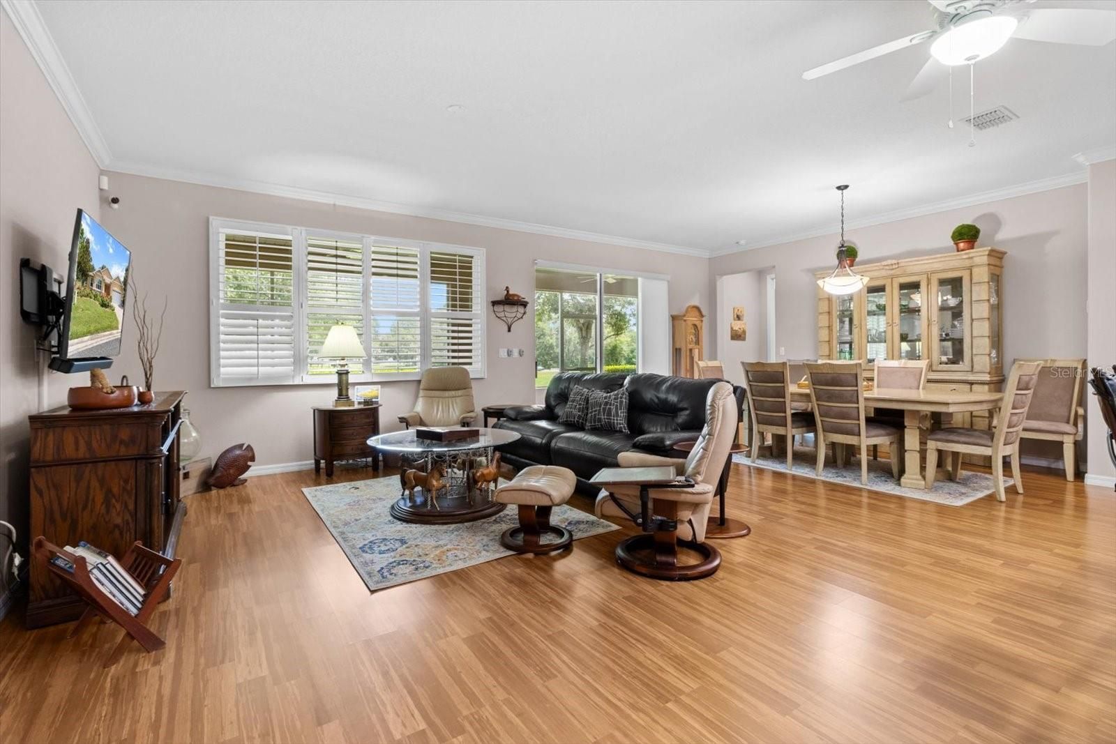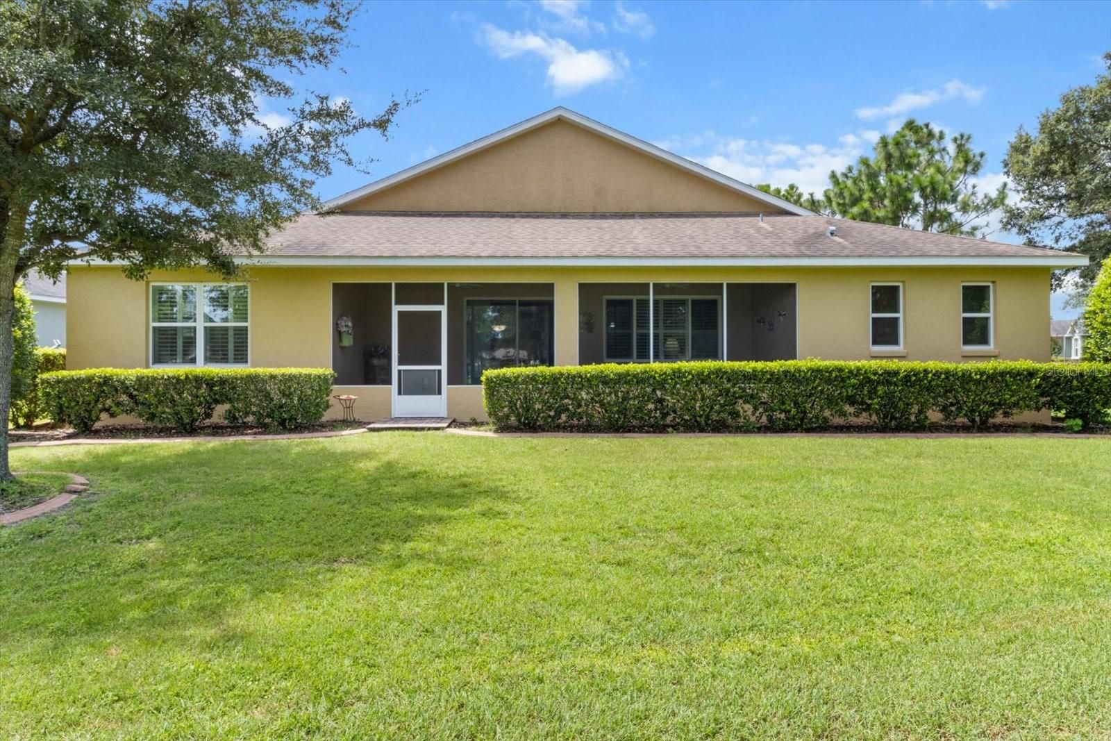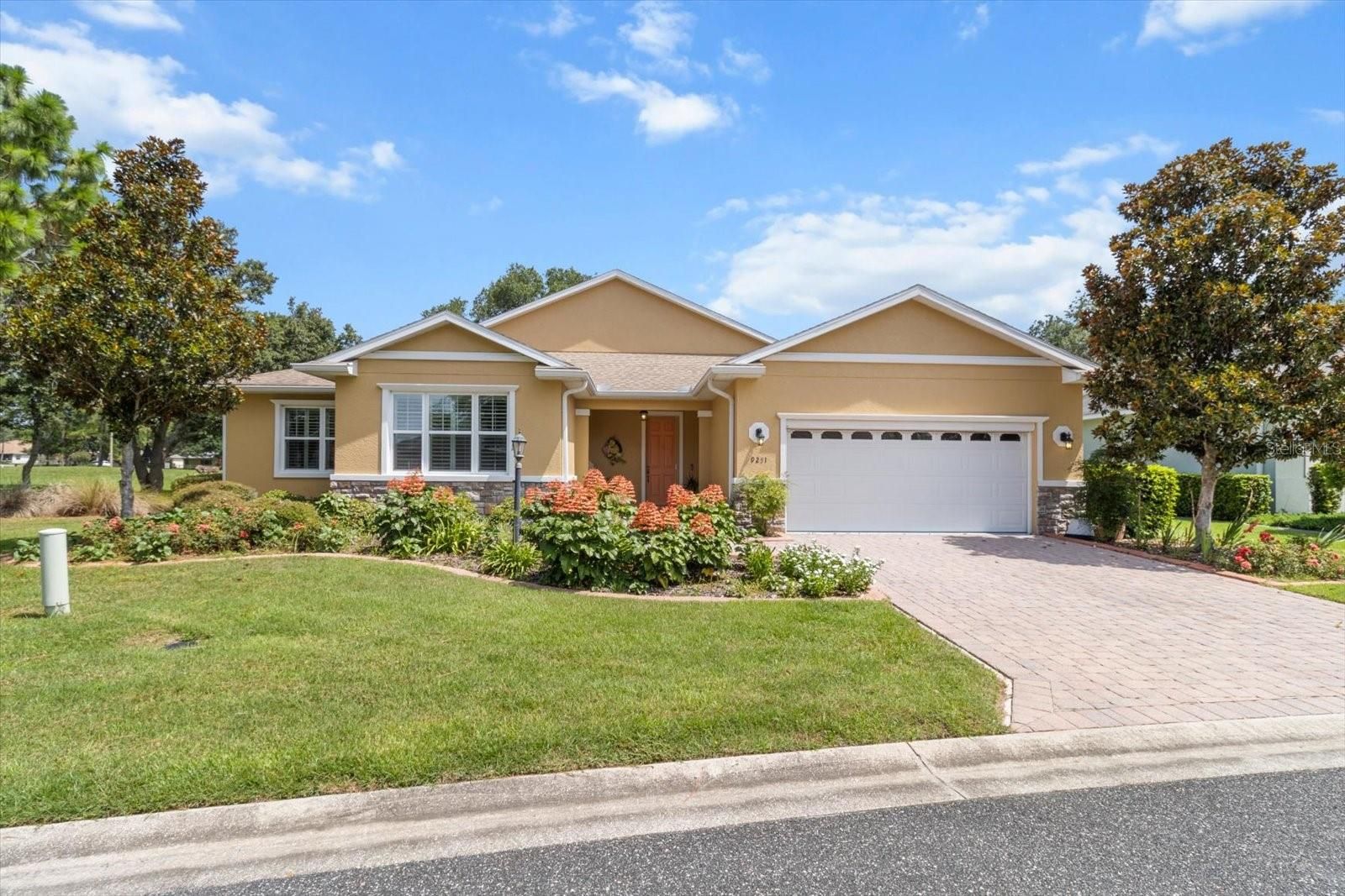 GOLF COURSE LIVING AT ITS FINEST! Located on the 18th tee box of the Tortoise and the Hare course in the highly sought-after Windsor East neighborhood of On Top of the World. This sophisticated Westminster (predecessor to the Willem) model offers elegance, space, and privacy. Situated on a premium corner lot with no neighbor to the left and a beautifully landscaped green space, this home boasts striking curb appeal with stone-accented exterior, full irrigation, and lush sod. Step inside to an open concept layout that's both stylish and functional. This 3-bedroom, 3-bath home features a smart 3-way split floorplan, with two ensuite bedrooms offering walk-in closets, ideal for guests or live-in family members. A spacious flex room provides options for a home office, library, or craft room. The gourmet kitchen is a chef's dream, with stainless steel appliances including a built-in oven and microwave, gas cooktop, dishwasher, and refrigerator. Staggered wood cabinets, solid surface countertops, a large pantry, and golf course views right from the kitchen make this space a true standout. Laminate flooring and crown molding run throughout the home, and classic plantation shutter blinds add timeless style. The private owner's entrance features a built-in drop zone, perfect for a coffee station or bar, leading through a spacious laundry room with abundant storage to the primary suite. Enjoy morning coffee in the enclosed courtyard just off the kitchen and flex room or unwind on the screened lanai with comfortable northern exposure and views of the fairway. Additional highlights include a new HVAC system installed in 2024, central vacuum system, and an oversized 2.5 car garage (nearly 700 sq ft) that easily accommodates large vehicles, a golf cart, or extra storage. Furniture is for separate purchase. Windsor East offers an active social calendar and a welcoming community- don't miss your opportunity to enjoy the lifestyle you've been dreaming of!