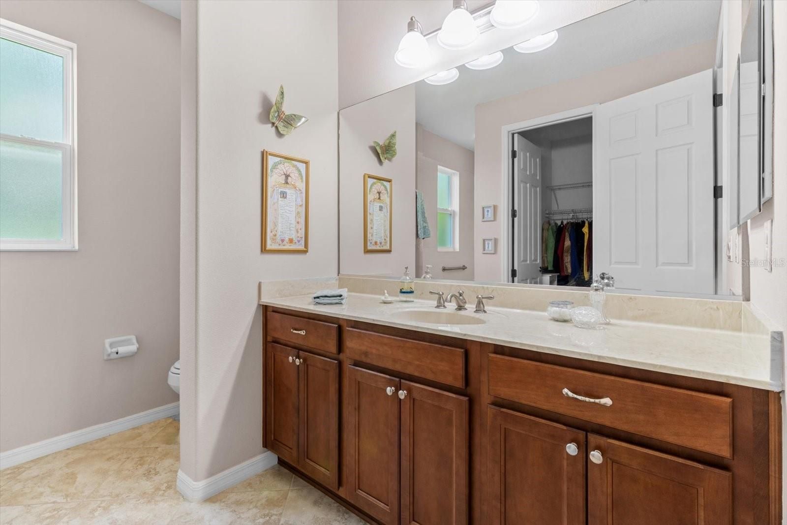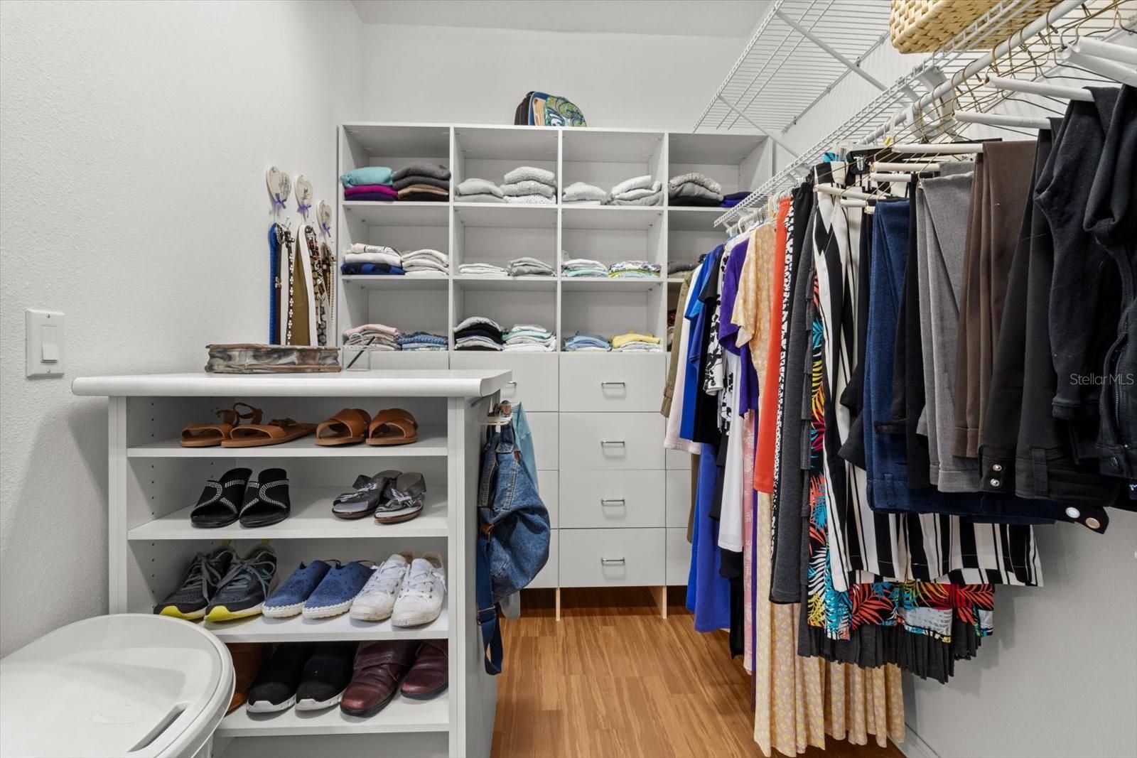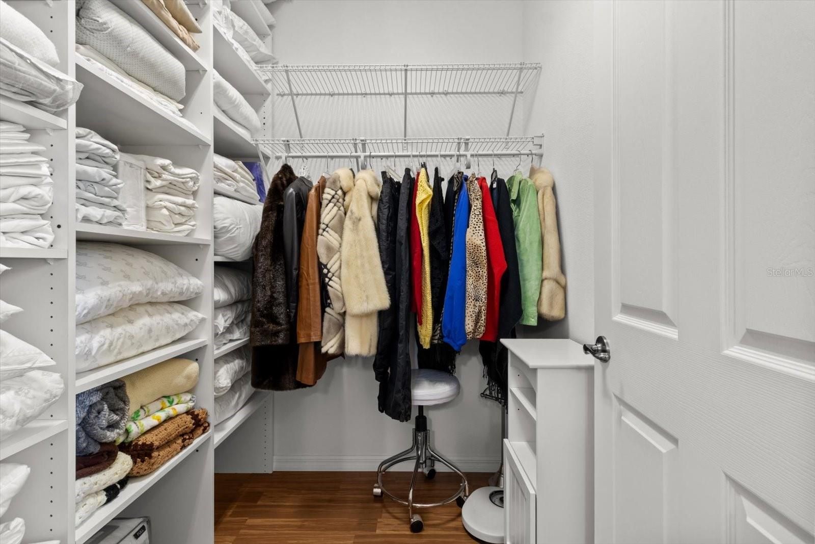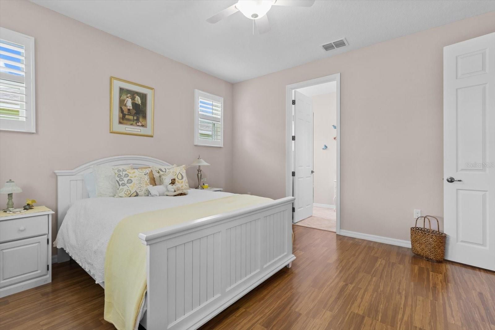 - Ceiling Fan(s), Central Vacuum, Crown Molding, High Ceilings, Open Floorplan, Main Level Primary, Solid Surface Counters, Solid-Wood Cabinets, Split Bedrooms, Thermostat, Walk-In Closet(s), Window Treatments