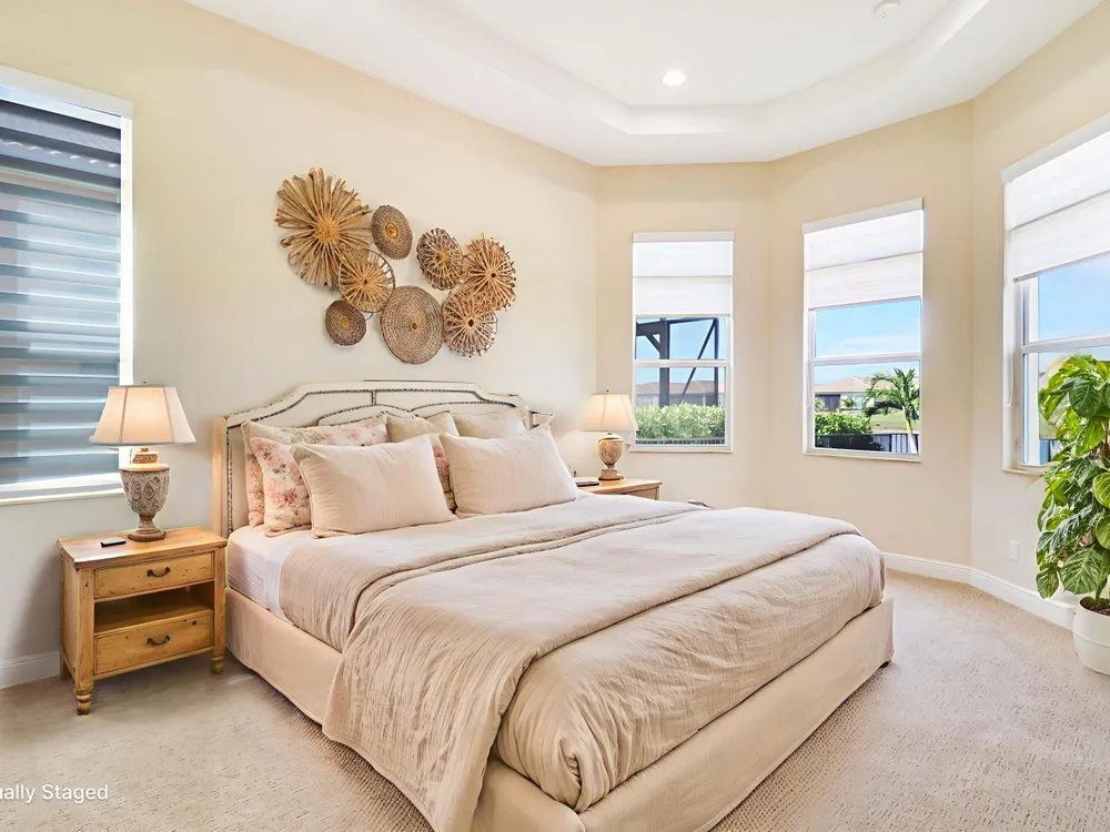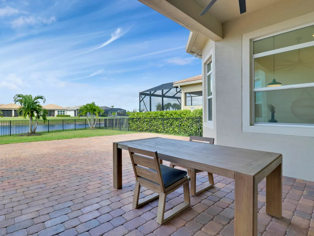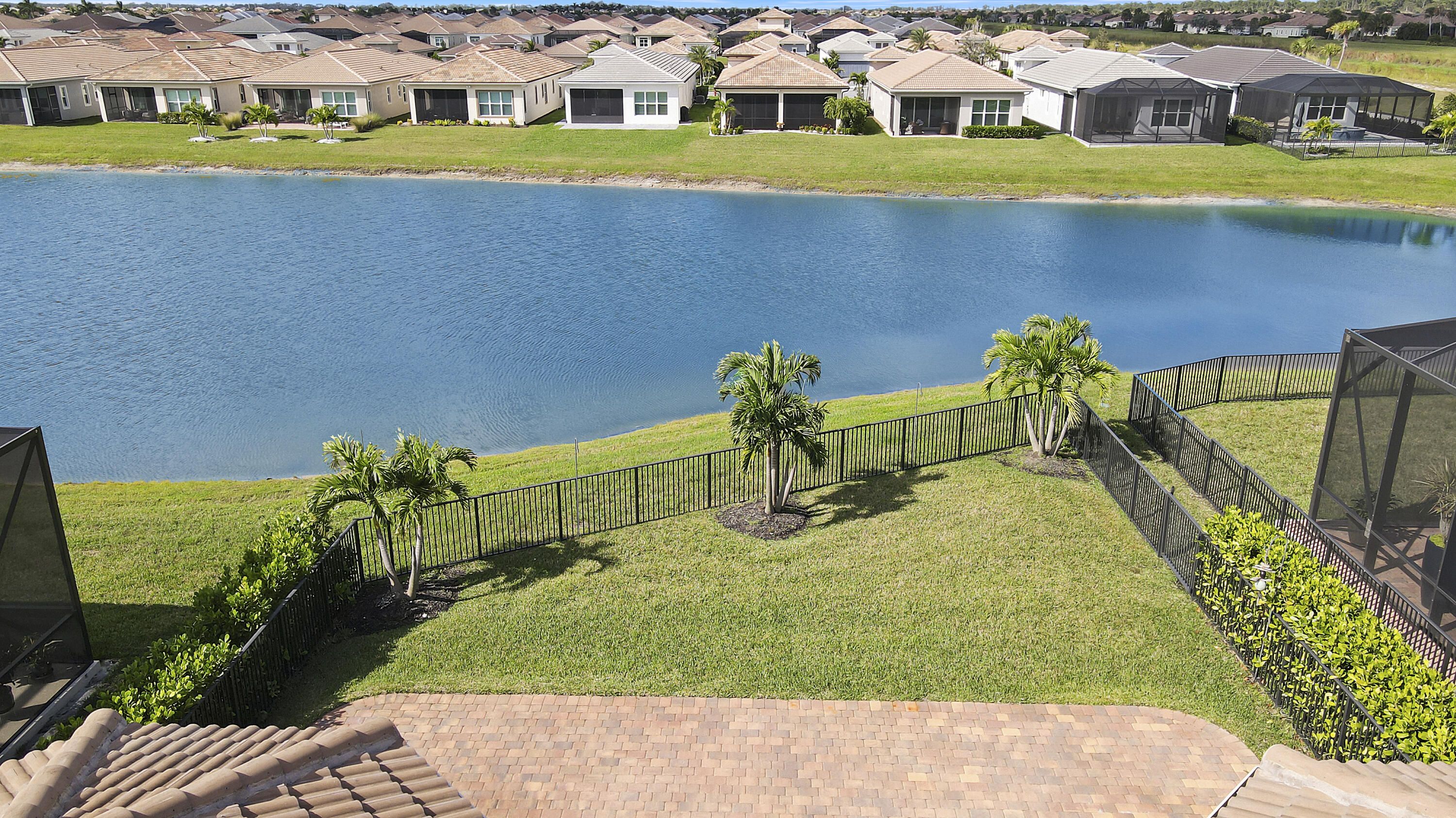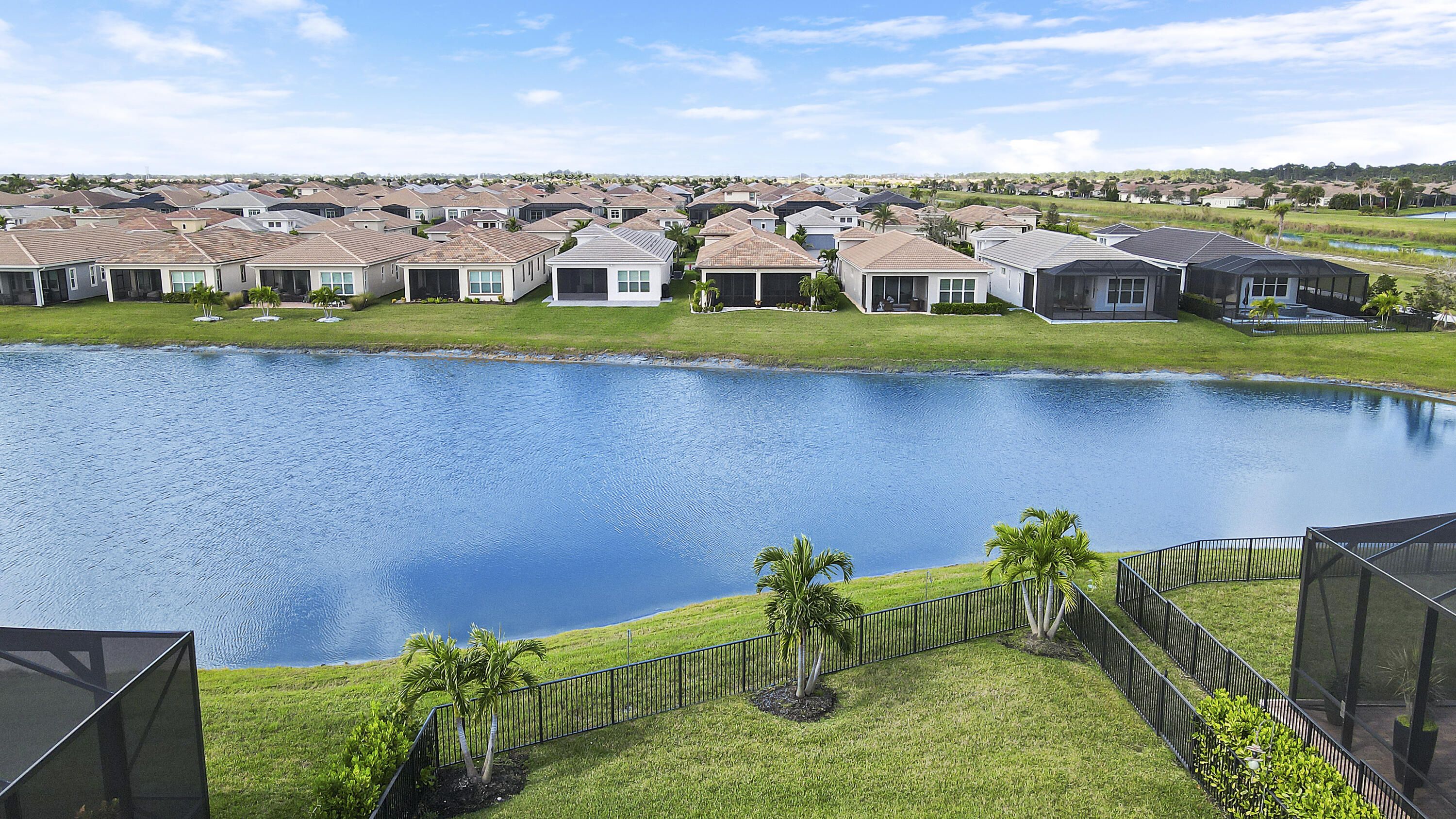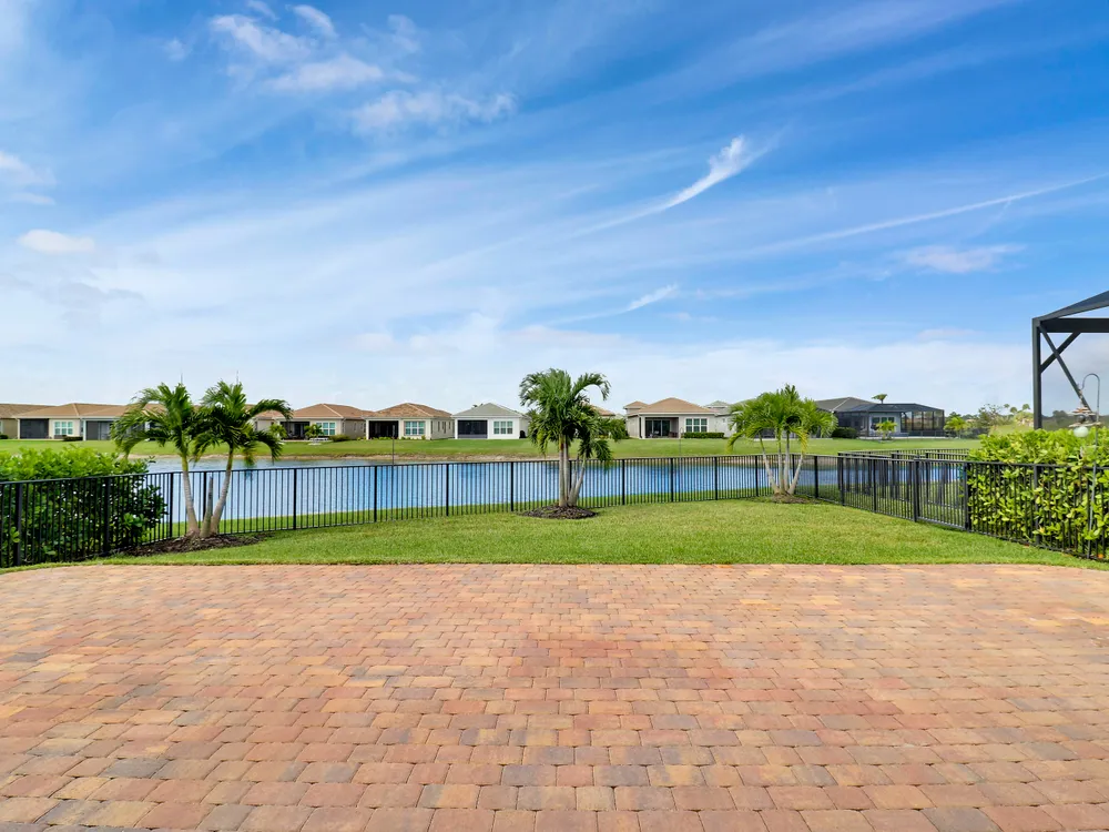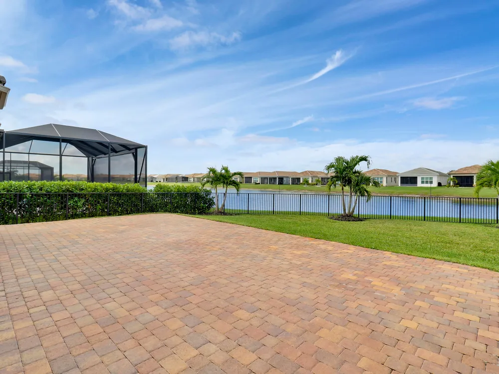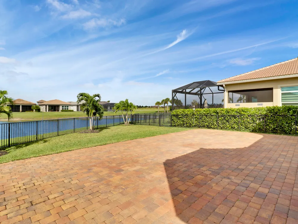 DEEP LAKE FRONT LOT ON A CUL-DE-SAC WITH A SPACIOUS, FENCED BACK YARD AND A THREE CAR GARAGE IN THE RESORT STYLE 55+ NEIGHBORHOOD OF CRESSWIND AT VERANO! Don't miss this tastefully upgraded home that is completely move-in ready! This 2BR+Den/2BA/3CG 'Isabella' floor plan was built in 2022 and is brimming with practical and stylish upgrades including decorative stone work on the front exterior, impact glass windows & doors, an oversized fenced yard, extended paver patio, glass entry front door, wallpaper accent wall, upgraded light fixtures t/o, hihat lighting in almost all the rooms, wood-look plank flooring through the main living areas & den, plush carpeting in the bedrooms, upgraded tiled bathrooms and more.