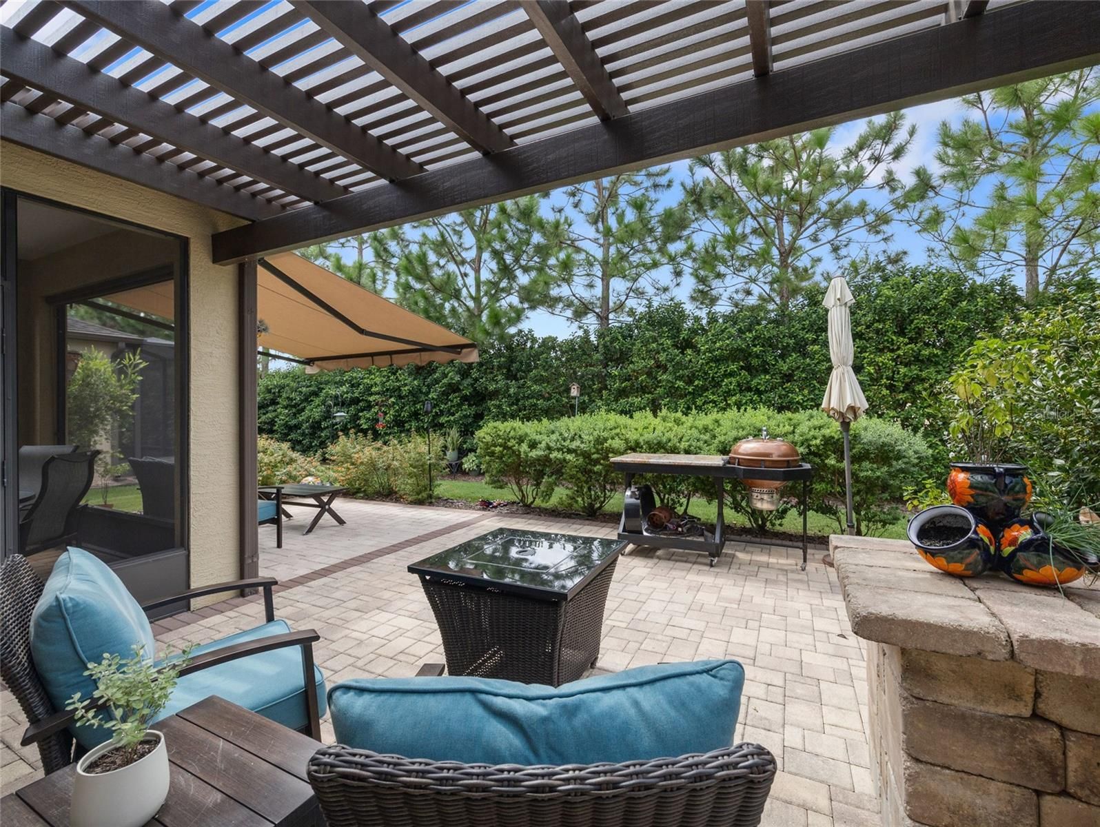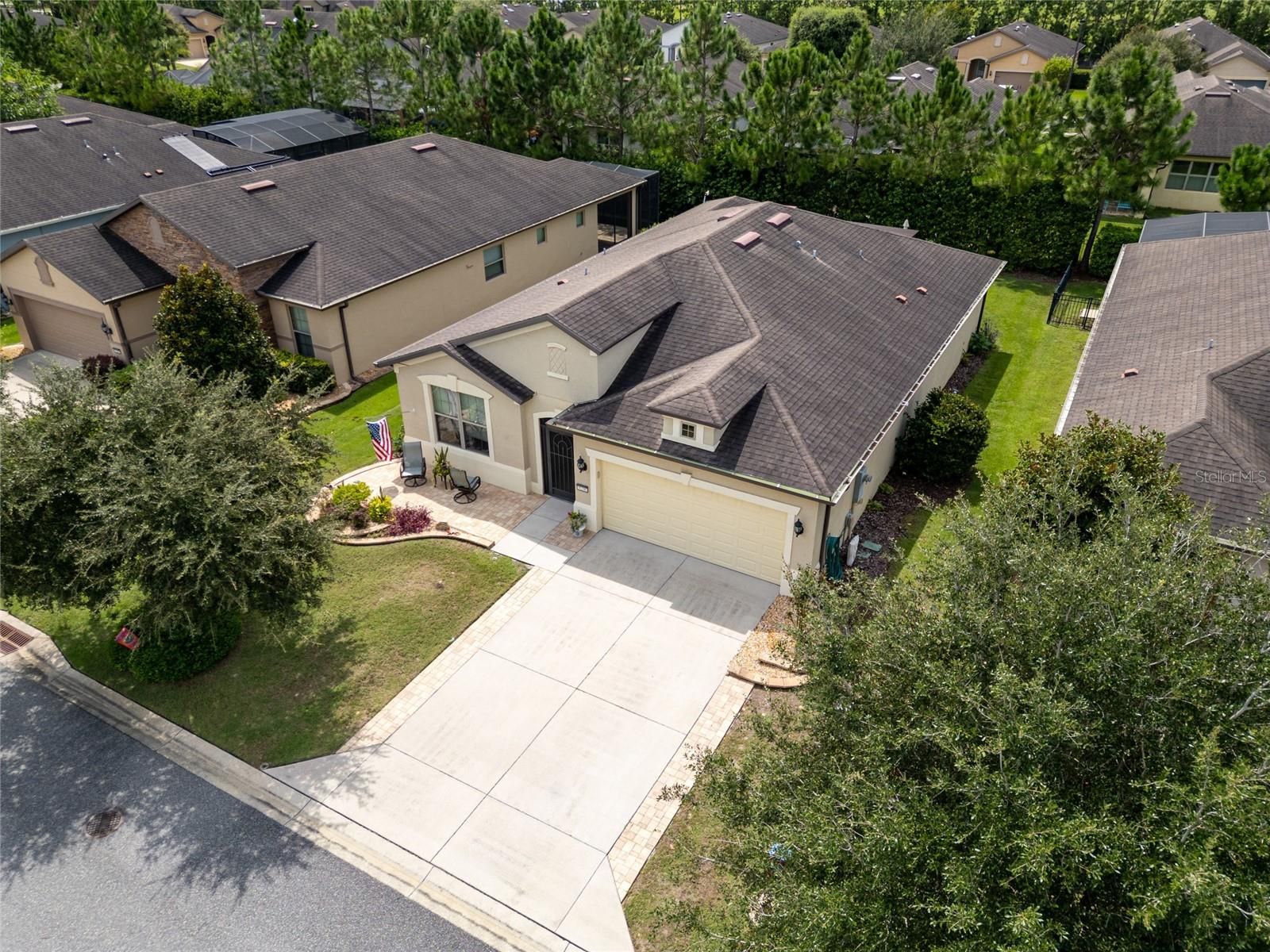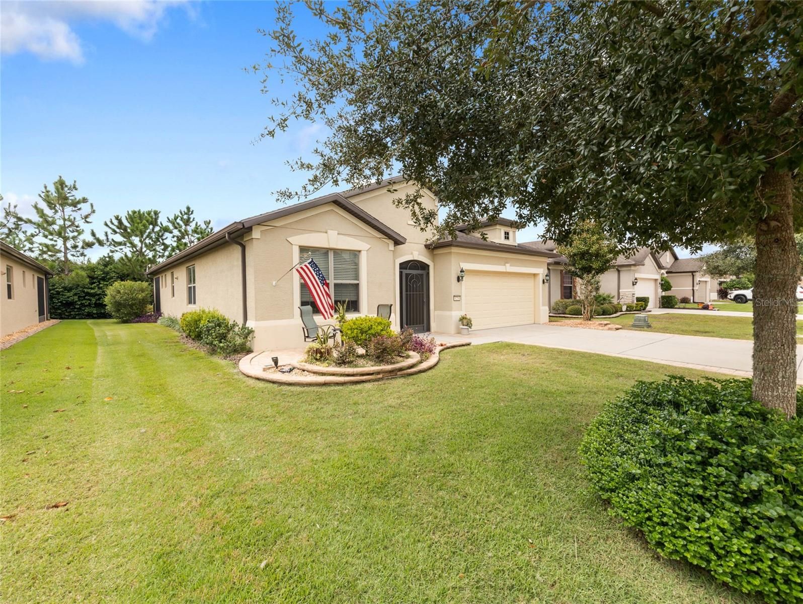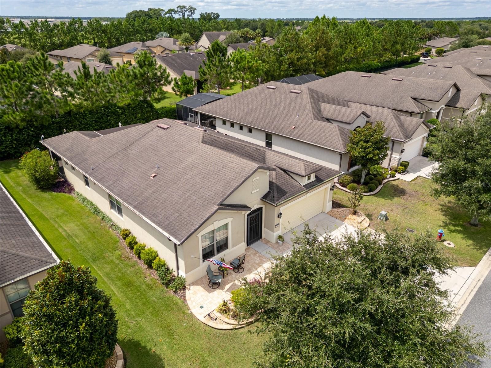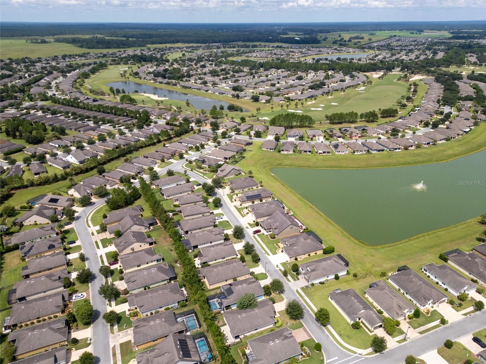 Welcome to this beautifully maintained Abbeyville model in the sought-after 55+ community of Del Webb Stone Creek. This 2-bedroom, 2-bath home with a versatile flex room offers both comfort and style. Tile flooring flows seamlessly throughout the home, complementing the open floor plan. The spacious kitchen is a true centerpiece, featuring a large granite-topped island, perfect for entertaining. Both bathrooms include elegant tiled walk-in showers, while the primary suite boasts a custom closet organizer for maximum storage. Step outside to your private retreat where a screened-in lanai with pavers extends to a paver patio with a charming pergola, creating the perfect outdoor entertainment space. Thoughtful landscaping adds privacy and enhances the serene setting. This move-in ready home combines functionality, style, and a resort-style lifestyle in one of Ocala’s premier active adult communities.