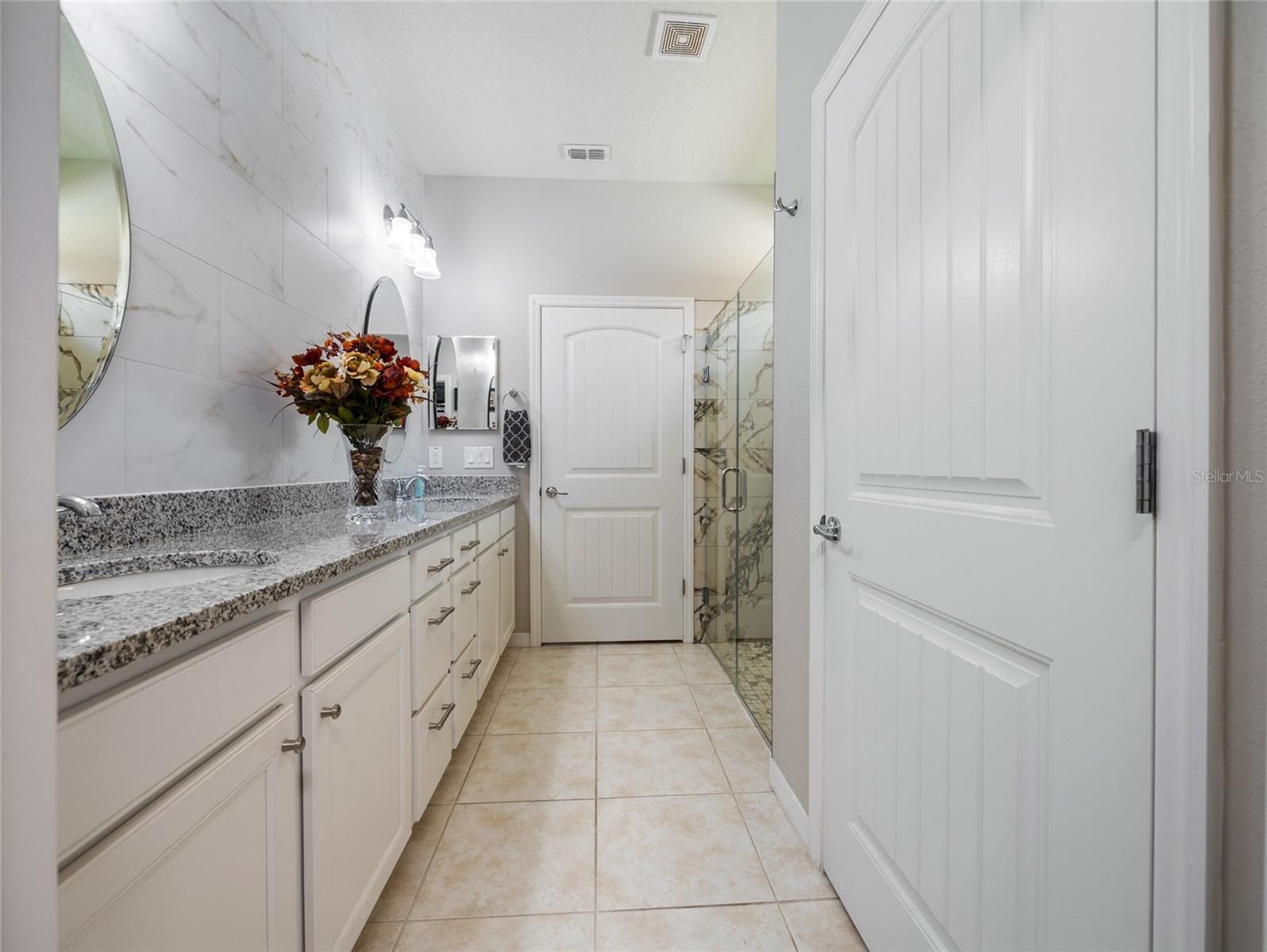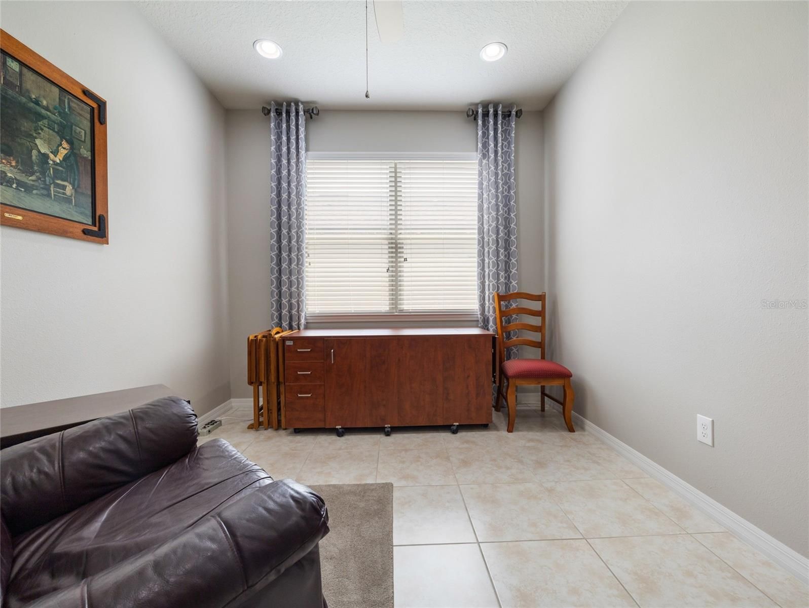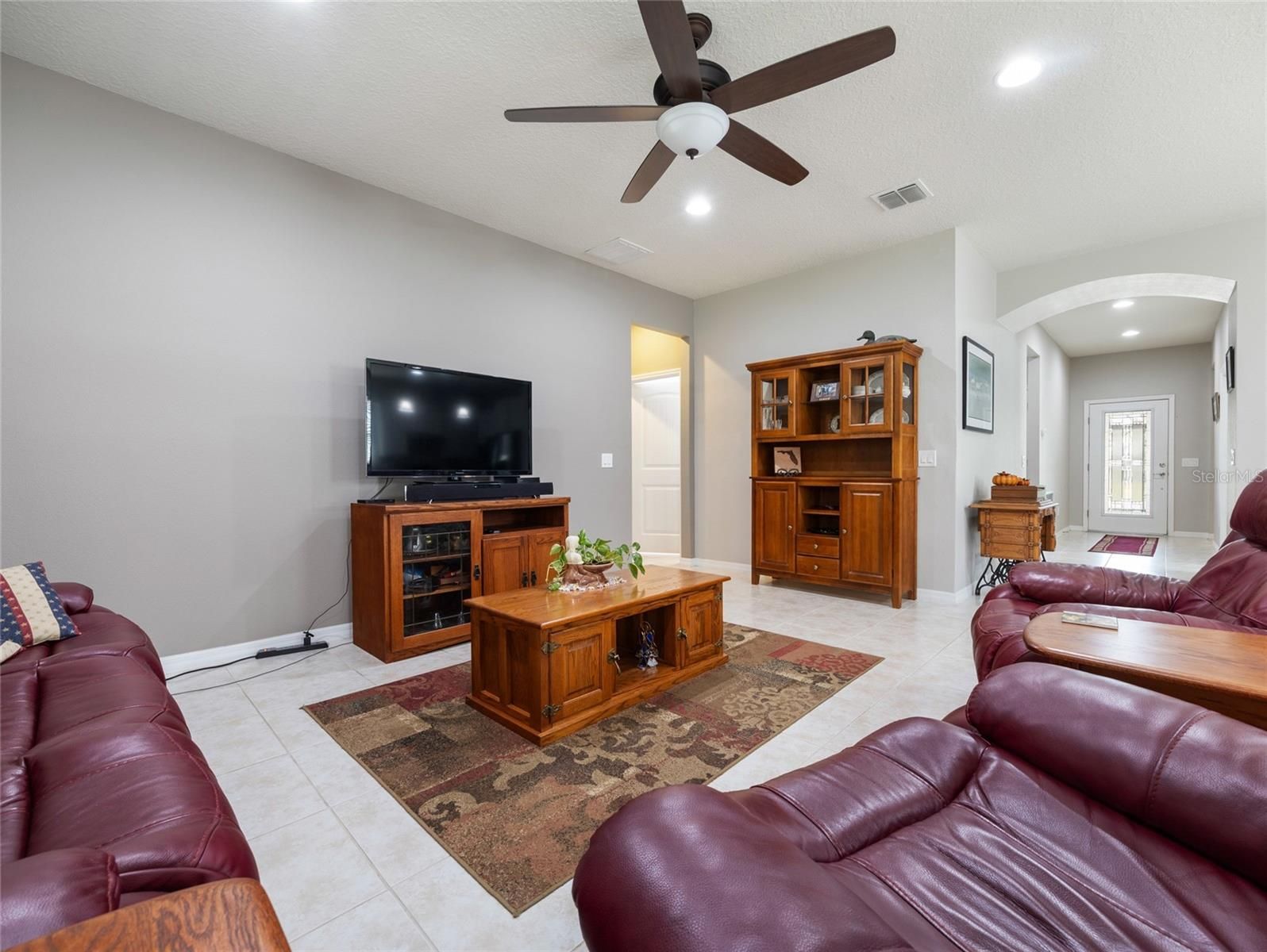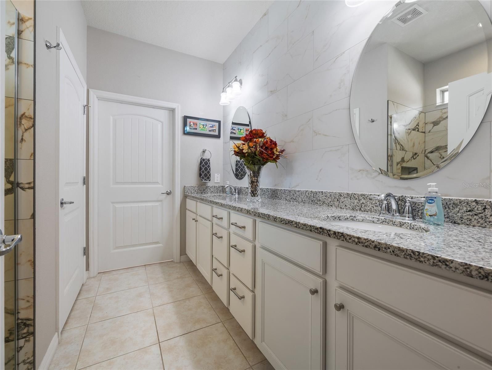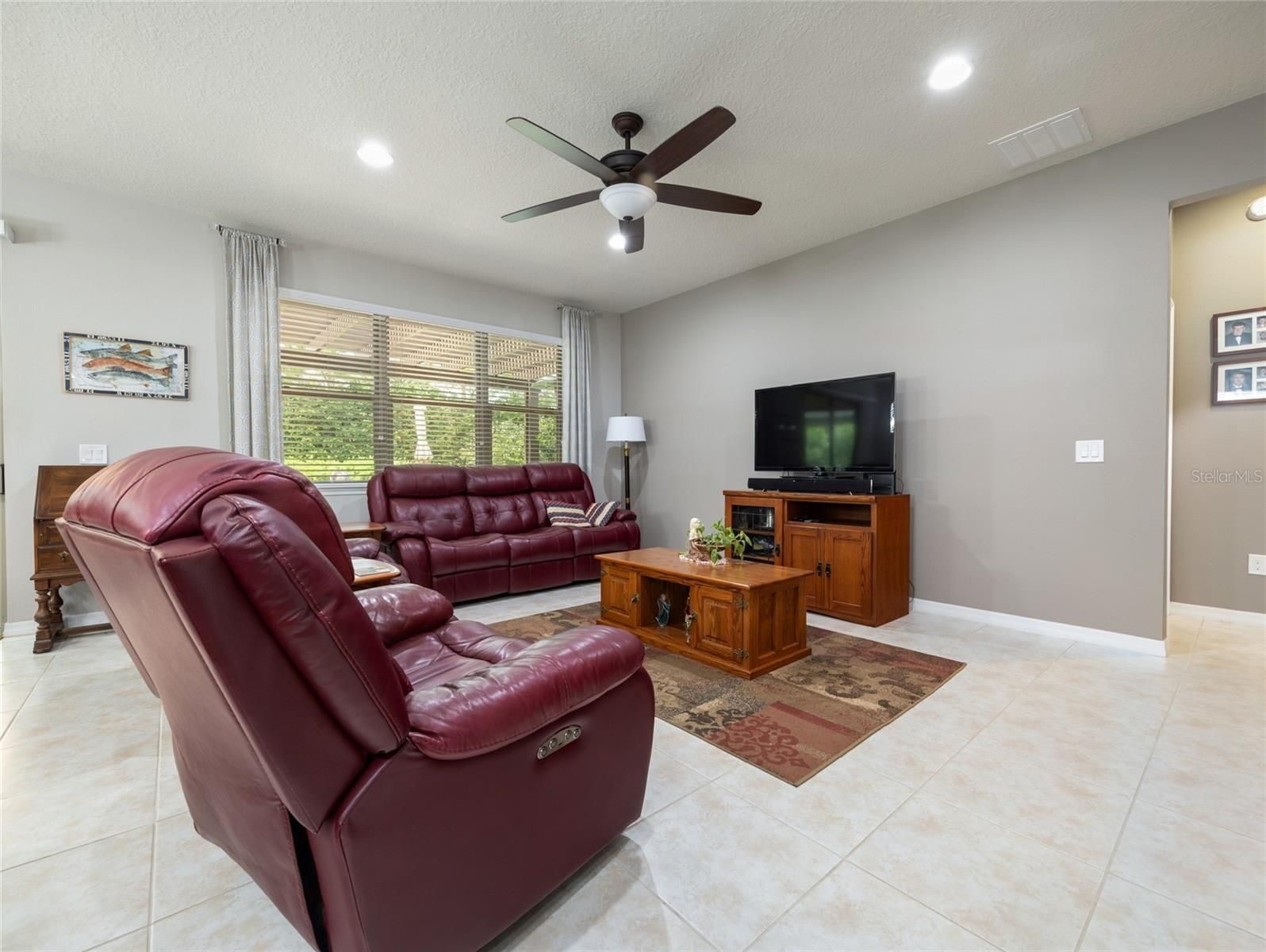 Welcome to this beautifully maintained Abbeyville model in the sought-after 55+ community of Del Webb Stone Creek. This 2-bedroom, 2-bath home with a versatile flex room offers both comfort and style. Tile flooring flows seamlessly throughout the home, complementing the open floor plan. The spacious kitchen is a true centerpiece, featuring a large granite-topped island, perfect for entertaining. Both bathrooms include elegant tiled walk-in showers, while the primary suite boasts a custom closet organizer for maximum storage. Step outside to your private retreat where a screened-in lanai with pavers extends to a paver patio with a charming pergola, creating the perfect outdoor entertainment space. Thoughtful landscaping adds privacy and enhances the serene setting. This move-in ready home combines functionality, style, and a resort-style lifestyle in one of Ocala’s premier active adult communities.