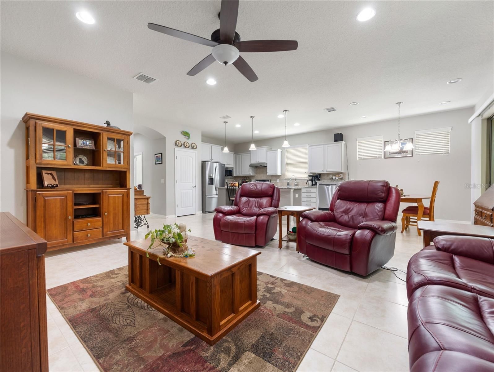 - Eat-in Kitchen, High Ceilings, Kitchen/Family Room Combo, Living/Dining Room, Open Floorplan, Main Level Primary, Thermostat, Walk-In Closet(s)
