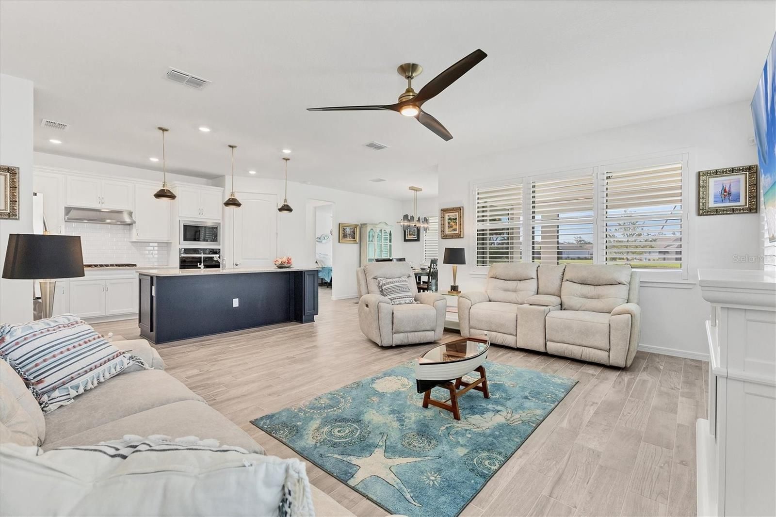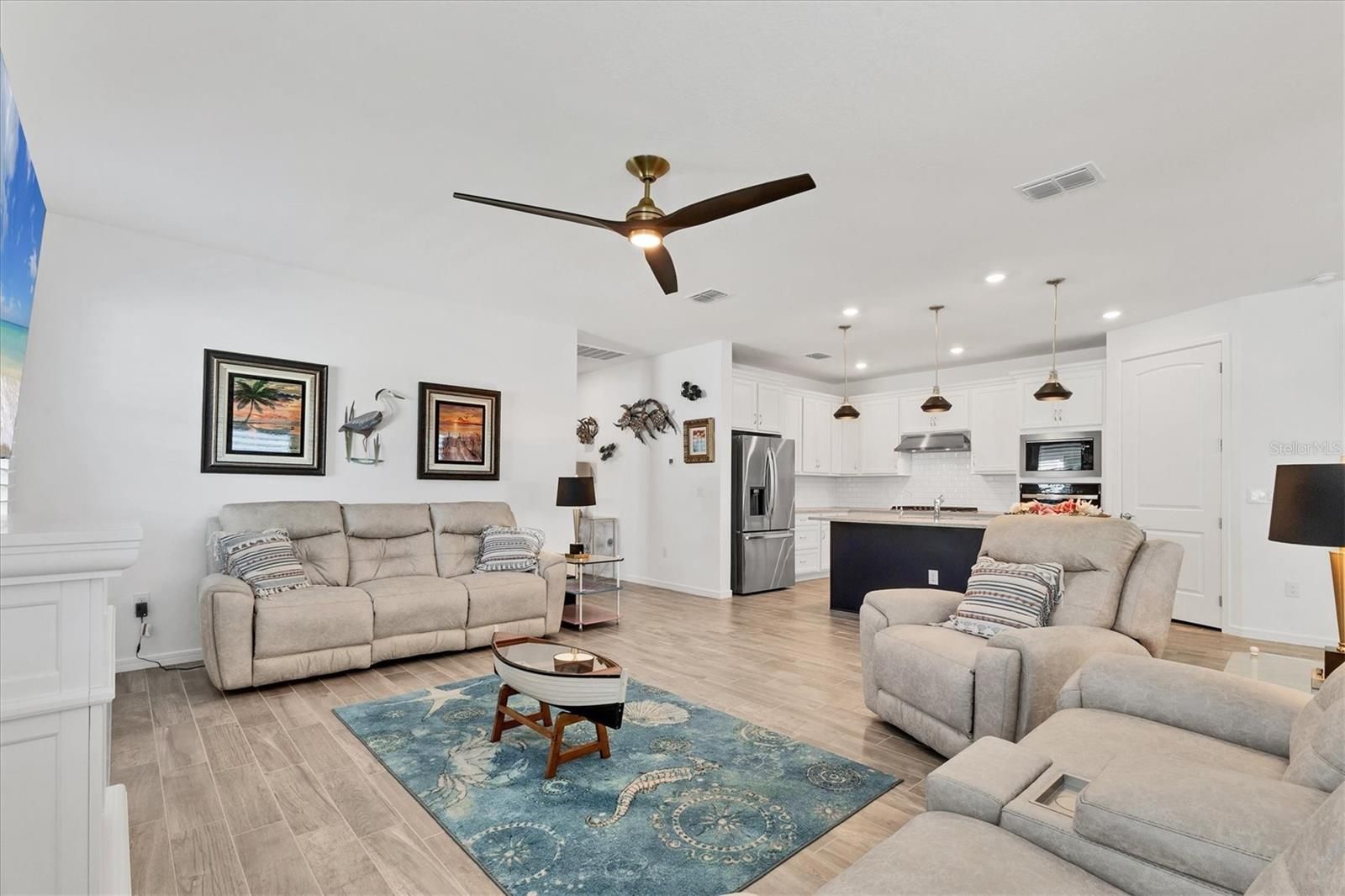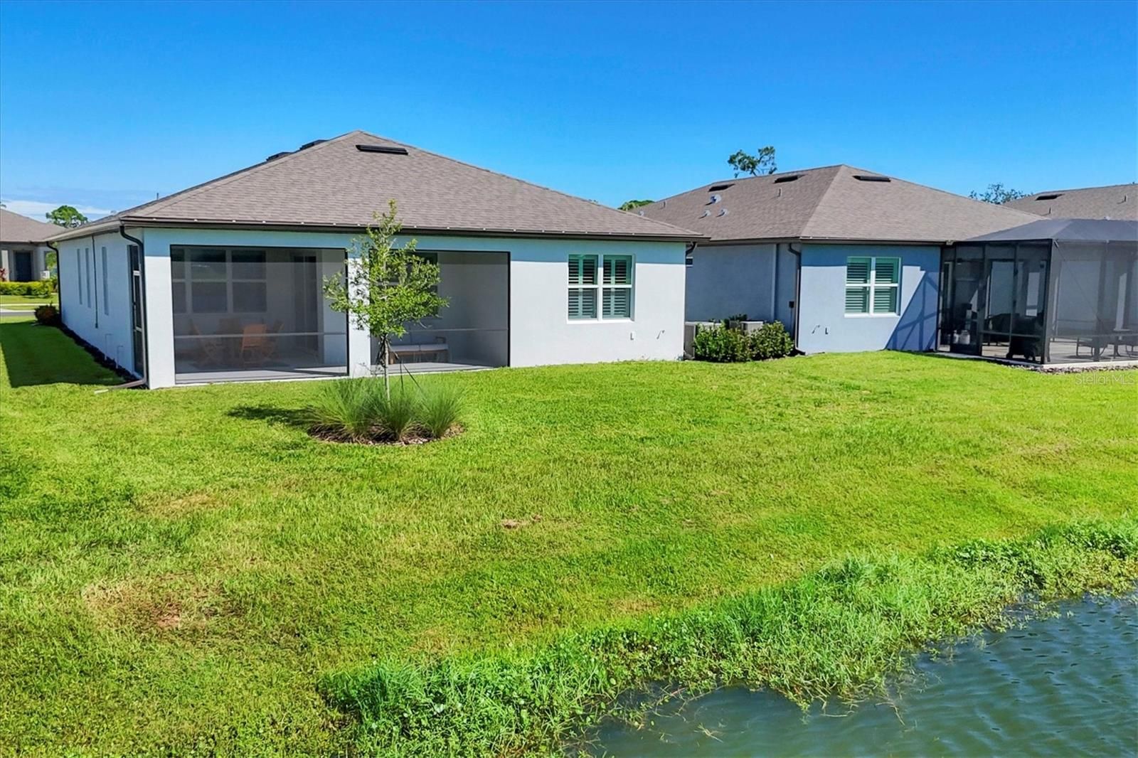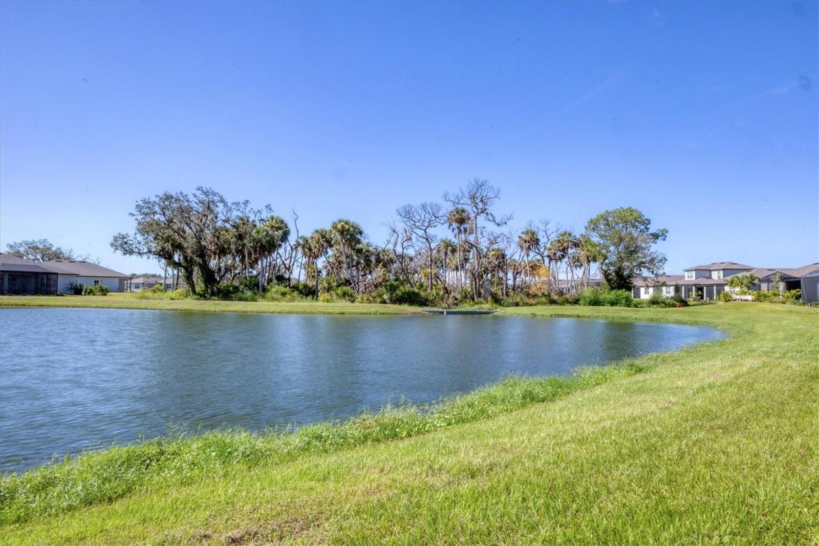 Enjoy unbelievable water and preserve views from this one-story home with 3 bedrooms, a versatile den/office, 2 bathrooms and an extended, screened-in lanai in the guard-gated Del Webb Bayview – a popular 55+ community with lots of activities and amenities. This Mystique floor plan has an open kitchen with a center island that overlooks a bright gathering room, perfect for entertaining and everyday living. The kitchen has lots of upgrades including the gourmet kitchen package with top-of-the-line cabinetry, 5-burner gas cooktop with stainless steel hood, built-in oven and microwave, stainless steel fridge, extra deep stainless-steel sink with reverse osmosis faucet and beautiful quartz counter tops. The kitchen flows effortlessly into the dining room which has a sliding door with an electric, remote-controlled shade that leads to the lanai. Wood-look tile runs throughout the home – no carpet to deal with – and the 8-foot solid wood doors were upgraded with a designer finish! And, the home is equipped with IMPACT GLASS WINDOWS AND DOORS for peace of mind, plantation shutters throughout and a tankless hot water heater!! The owner’s suite is a private oasis with windows that overlook the stunning water views, large walk-in closet and an en-suite bathroom with a double vanity with quartz countertops and square sinks, oversized shower with niche and space for a make-up station or more storage. The other two bedrooms are in the front of the home which provides privacy for your guests. The den/office has double doors and is the perfect space to work or retreat after a day in the sun. The two-car garage has a 4-foot extension so you can fit all your gear or golf cart! The laundry room has a utility sink and plenty of room for storage! You’ll be able to soak up the Florida sun or watch the wildlife from your covered and screen-in lanai with gas pre-plumbing for your outdoor kitchen and grill. There is also plenty of room in the backyard for a private pool. This home is only a year old and has so many upgrades that the builder is not offering!! The roof has a TRANSFERRABLE WARRANTY. Located a short stroll from the resort-style amenity center, access to the endless activities and social events is year-round. Living in Del Webb Bayview means enjoying an active 55+ lifestyle with a resort-style pool, state-of-the-art fitness center, pickleball and tennis courts, vibrant clubhouse, activities director, dog park, community garden, walking trails, restaurant/bar and more. Located within easy reach of St. Petersburg, Tampa, and Sarasota, you’re never far from award-winning dining, shopping, and world-famous Gulf Coast beaches and international airports. Come live the Florida lifestyle today!!