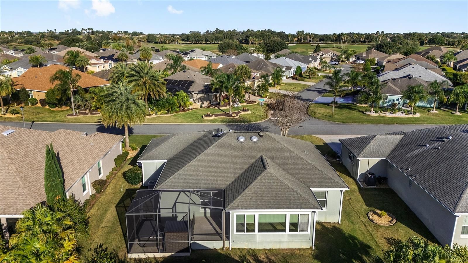 Gorgeous Home in The Village of Sanibel , one of the most desirable areas in The Villages! Welcome to this STUNNING 3-bedroom, 2-bath home featuring an impressive 2-CAR PLUS GOLF CART GARAGE and thoughtfully designed living spaces that blend comfort, privacy, and modern upgrades. One of the home’s most desirable features is the elevated, ENCLOSED LANAI—offering exceptional privacy with no “kissing lanais” from rear neighbors—along with a screened lanai showcasing a gorgeous HEATED SPA, creating the perfect setting for relaxing or entertaining year-round. Inside, the open-concept kitchen is both stylish and functional, boasting NEWER STAINLESS STEEL APPLIANCES, upgraded cabinetry, and abundant storage space—ideal for everyday living and hosting guests. The spacious primary suite serves as a private retreat, complete with a luxurious ensuite bathroom featuring a beautiful, oversized WALK IN TILED SHOWER. This home is loaded with valuable upgrades, including a whole-home water filtration system, UV air system, recently cleaned air vents, and gutters for added peace of mind. The standout three-car garage is fully equipped with built-in cabinets, a refrigerator, a standalone freezer, and a 50-amp hookup ready for electric vehicle charging—perfect for today’s lifestyle plus extra parking with an extended driveway! With its exceptional layout, high-end features, and incredible indoor-outdoor living spaces, this home is truly a rare find and must be seen to be fully appreciated