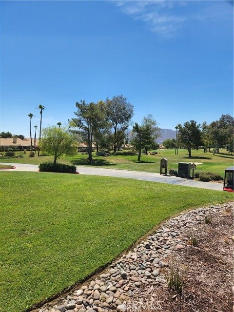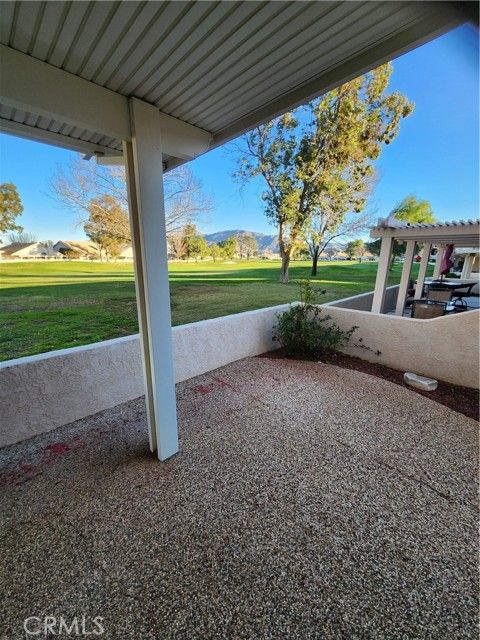 Just imagine yourself with your favorite beverage and setting back and enjoy the view of the golf course from your back patio – taking in this beautiful view and enjoy the conversation you might have with your neighbors and friends. When you’re finished relaxing, come and play the 18-hole professional course here at Sun Lakes and partake in the enjoyment of playing on a well maintained and picturesque golf course. If this course seems to be challenging – then play the Executive 18-hole golf course that offers similar breathtaking views and challenges. If golf isn’t your bag – then how about playing tennis on the renovated tennis courts near the South Club house. If tennis isn’t your interest, how about playing pickleball on the renovated pickleball courts near the North Club house. If tennis or pickleball isn’t your cup of tea – try relaxing at the large pool and spas located at the main club house, north club house, or the in-door pool and spa at the South Club house. There’s a saying here at Sun Lakes Country Club – if you’re bored, it’s your fault” because if you have a interest, there probably is a club you can join. Having tried out the different facilities – ranging from golf, tennis, pickleball, bocce ball, weight rooms, hobby rooms, entertainment center, exquisite on-site restaurant and sand wedge sandwich shop, and now you need to relax – This 2 bedrooms, Den/bedroom/bonus room and 2 1/2 bath can be called your home This home has professionally installed plantation shutters, ceiling fans throughout, and white cabinets, newer water heater. The back yard has a full-length covered patio with outdoor fan and has a great view of the golf course and can be used for relaxation or entertaining your friends and family. This model has a 2-car expanded garage (for your golf cart storage). Even more exciting, Sun Lakes doesn’t have any Melo Ross as does all new construction in Banning and Beaumont areas!