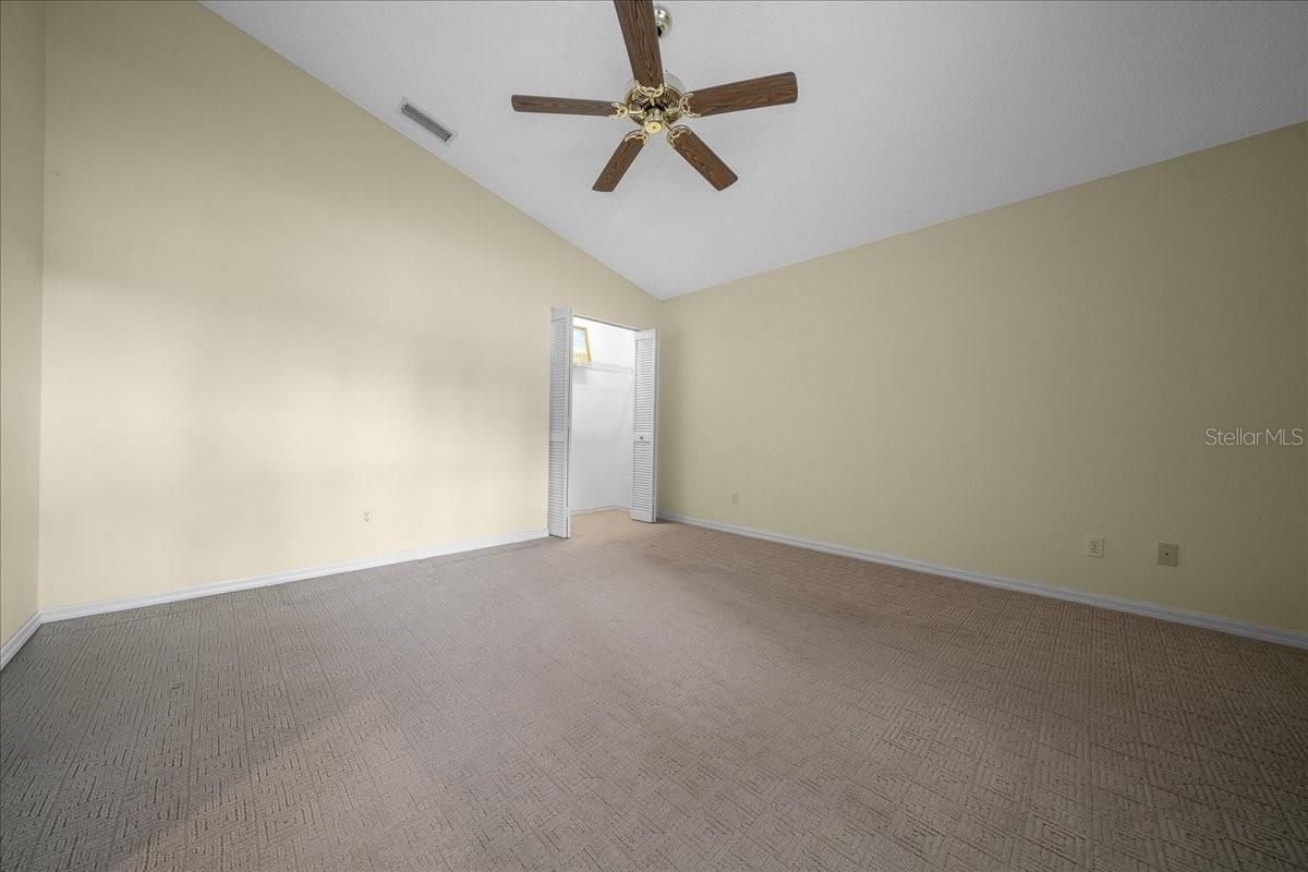 - Ceiling Fan(s), Eat-in Kitchen, High Ceilings, Main Level Primary, Split Bedrooms, Thermostat, Vaulted Ceiling(s), Walk-In Closet(s)