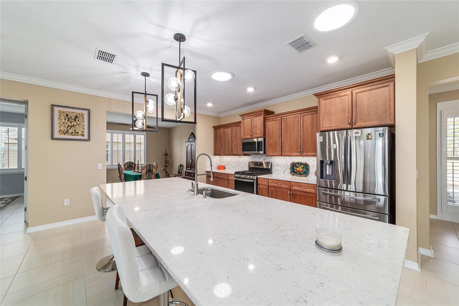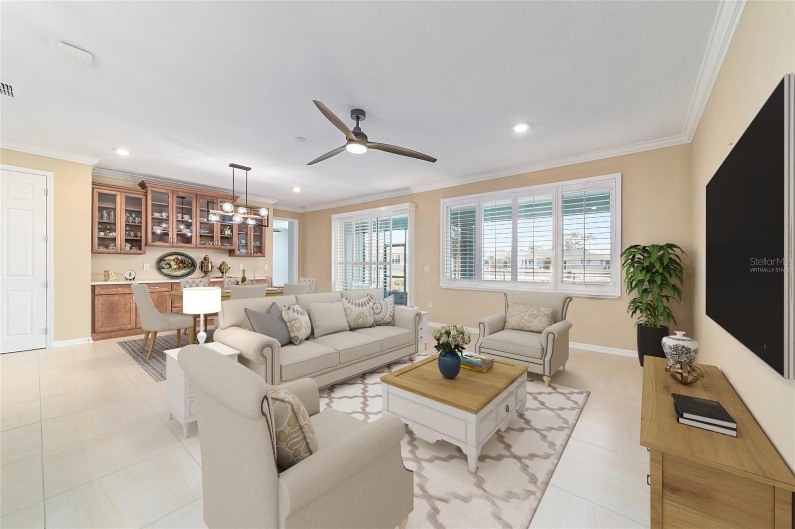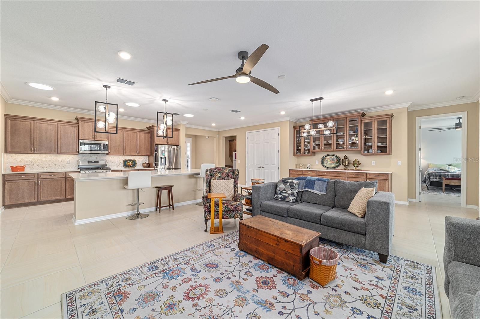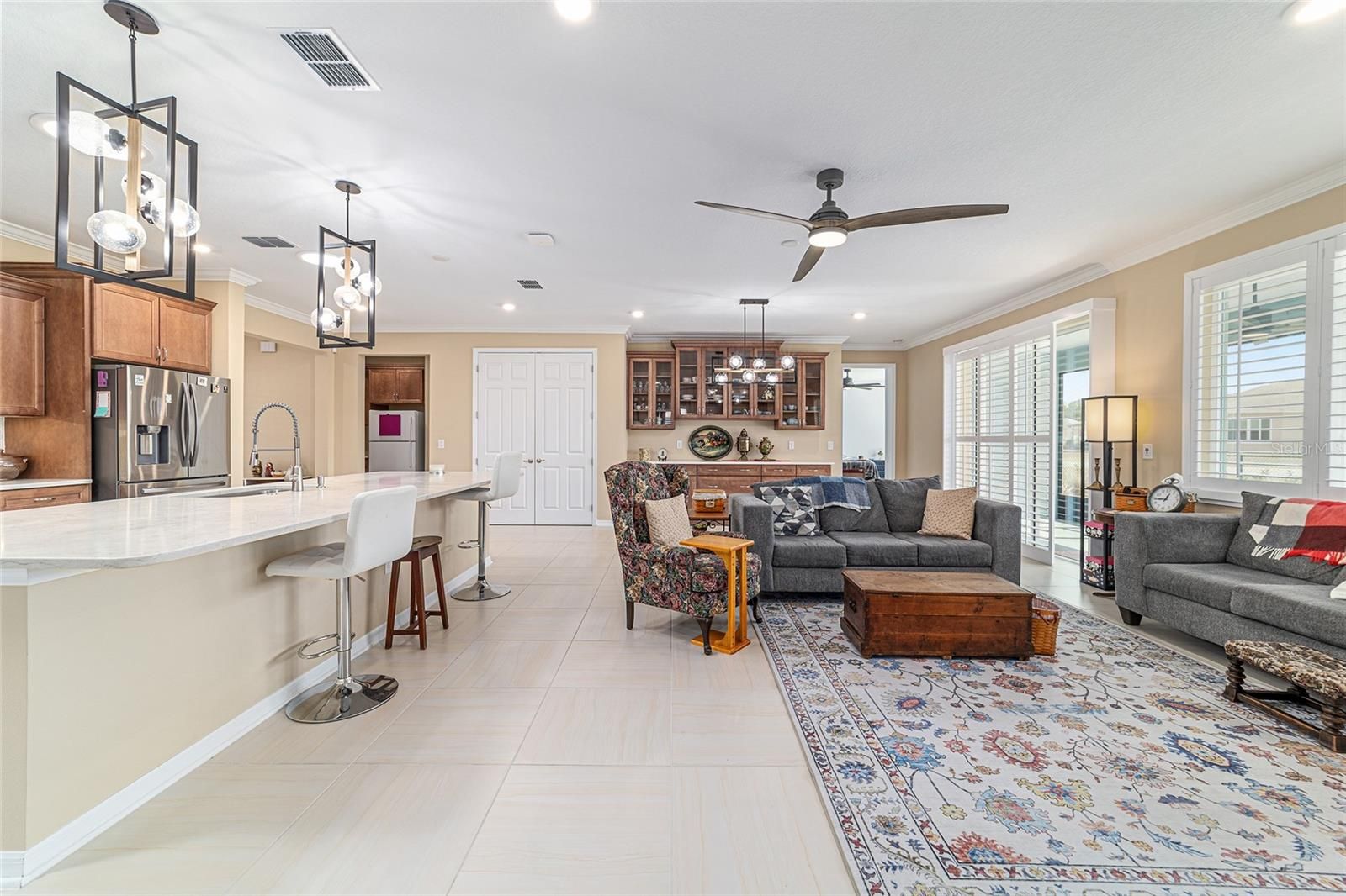 Willem model on Private Lot!! Step into move-in ready comfort and skip the headaches of new construction! Why wait months dealing with construction trucks, contractors parking on your lawn, and the risk of nails in your tires when you can own this almost-new Willem model that already has all the essential upgrades completed? This thoughtfully enhanced home includes wood shutters, fans, gutters, a water softener, fenced yard, epoxy garage floors, added cabinetry in the laundry room, and a stunning custom built-in feature wall in the living room - all done and ready to enjoy, with no need to chase contractors or gather estimates. The popular Willem floor plan offers three distinct private wings. The spacious primary suite features a large ensuite bathroom with dual vanities and an oversized walk-in shower. A second bedroom enjoys its own private ensuite, while the third wing includes a bedroom, bathroom, and versatile flex room- perfect for an in-law suite, guest retreat, or private office. The home showcases tile flooring throughout with a seamless, single-level surface and no transition strips. Upgraded light fixtures, 8 ft doors, and crown molding throughout. The chef's kitchen features upgraded soft-close cabinetry, high-end quartz countertops, and a marble backsplash. The laundry room is equally well appointed with matching cabinets and a large utility sink, and the closets are fitted with custom shelving systems. Enjoy Florida living on the large, screened lanai, plus an extended paver patio in the backyard; ideal for relaxing or entertaining. Set on a premium private lot with no rear neighbors, no neighbor to the left, and no direct front neighbors, this home offers exceptional privacy. A paver driveway adds to the curb appeal. Ideally located on a quiet community loop with no through traffic, the home is nestled between two premier amenities - The Arbors featuring a heated indoor pool, and The Summit, the new recreation center with convention space and a resistance pool. Schedule your showing today to experience this stunning, private Longleaf Ridge home.