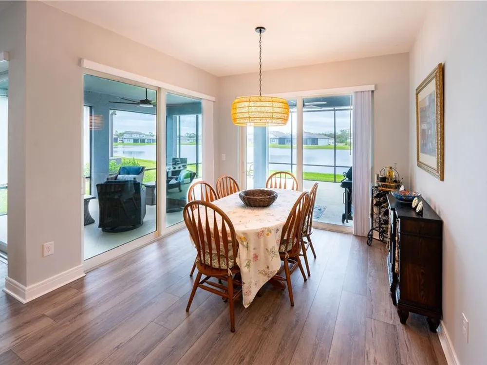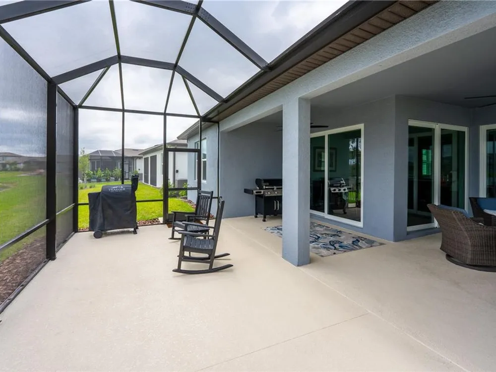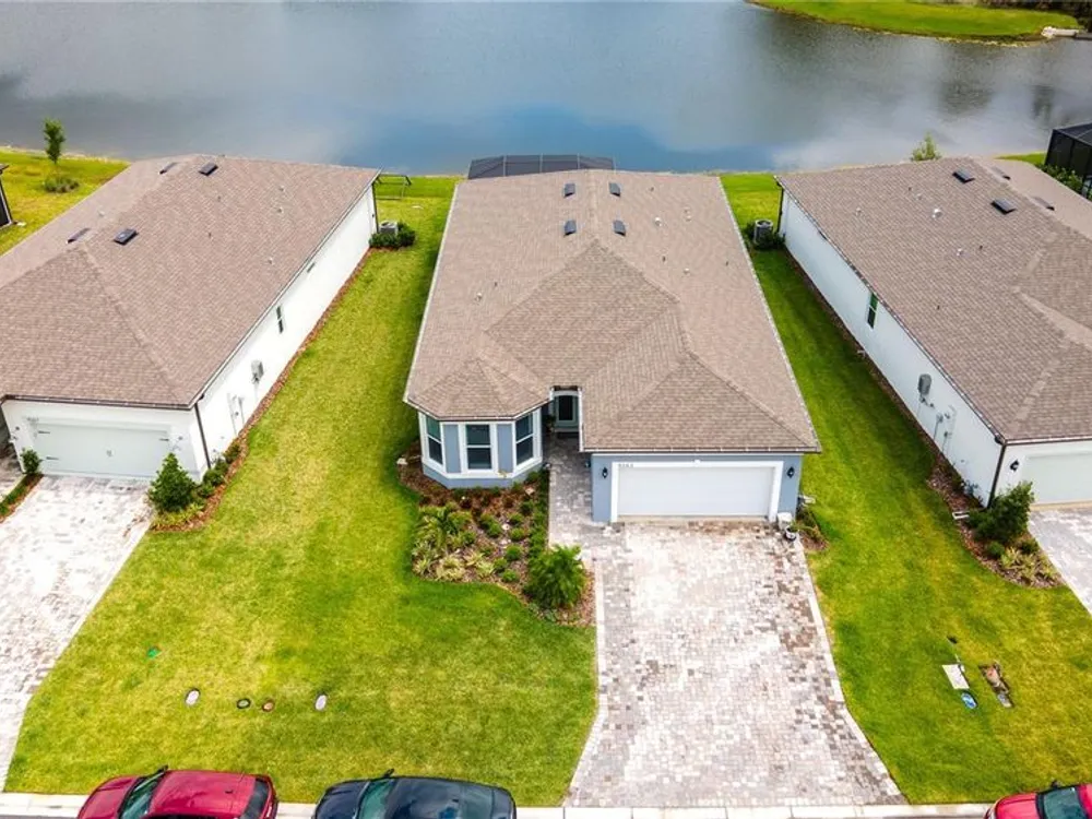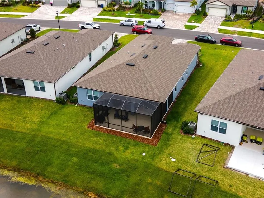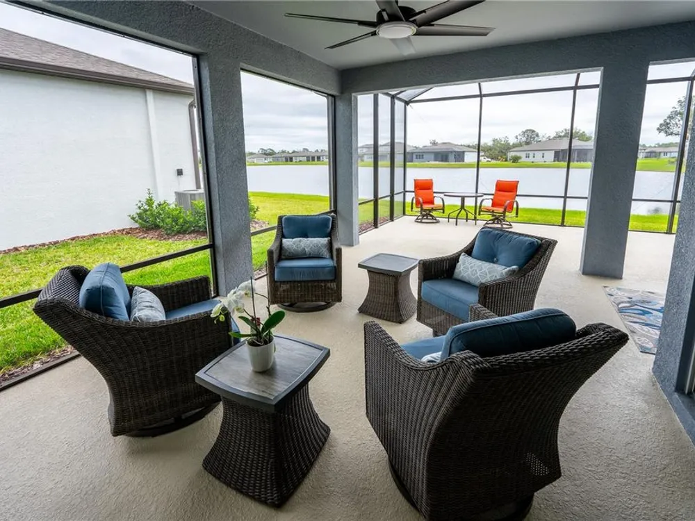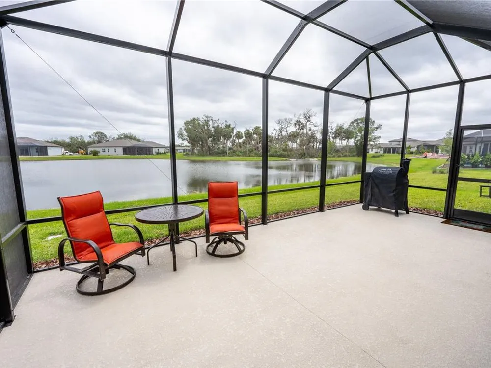 Price improvement!!! Imaging drinking coffee to gorgeous sunrises with a wide open pond view. To just say this 2/2/3 + flex room is move-in ready does not do it justice. The list of upgrades is extensive, both in the design and post construction. Starting with the designer kitchen, featuring quartz counters, granite sink, built in appliances, under cabinet lighting, gas cooktop, canopy hood, and a walk-in pantry, it is sure to be the heart of many gatherings to come. The open concept is highlighted with three impact sliders in the back, blending your indoor and outdoor spaces together with ample natural light. The screened-in lanai extension was added to make for 626 sq/ft of outdoor space to enjoy the beautiful evenings overlooking the water. Other upgrades include the owner's bathroom, elevation, impact windows, fixtures, LVP waterproof flooring (no carpet anywhere!), tray ceilings, baseboards, laundry room, and french doors for the flex room. For the full list of upgrades please contact your agent or the listing agent. Need storage space? The tandem 3 car garage has a 4' extension with a fresh epoxy coating and the driveway has been widened! When venturing outside your new home, the community offers top notch resort style amenities, including a 24hr fitness center, dog park, pool, spa, tennis and pickleball courts, bocce ball and a full service bar and restaurant! Join the active lifestyle with plenty of community events and clubs to choose from. The area is thriving with quick access to St. Pete, Tampa, Sarasota and world class beaches!