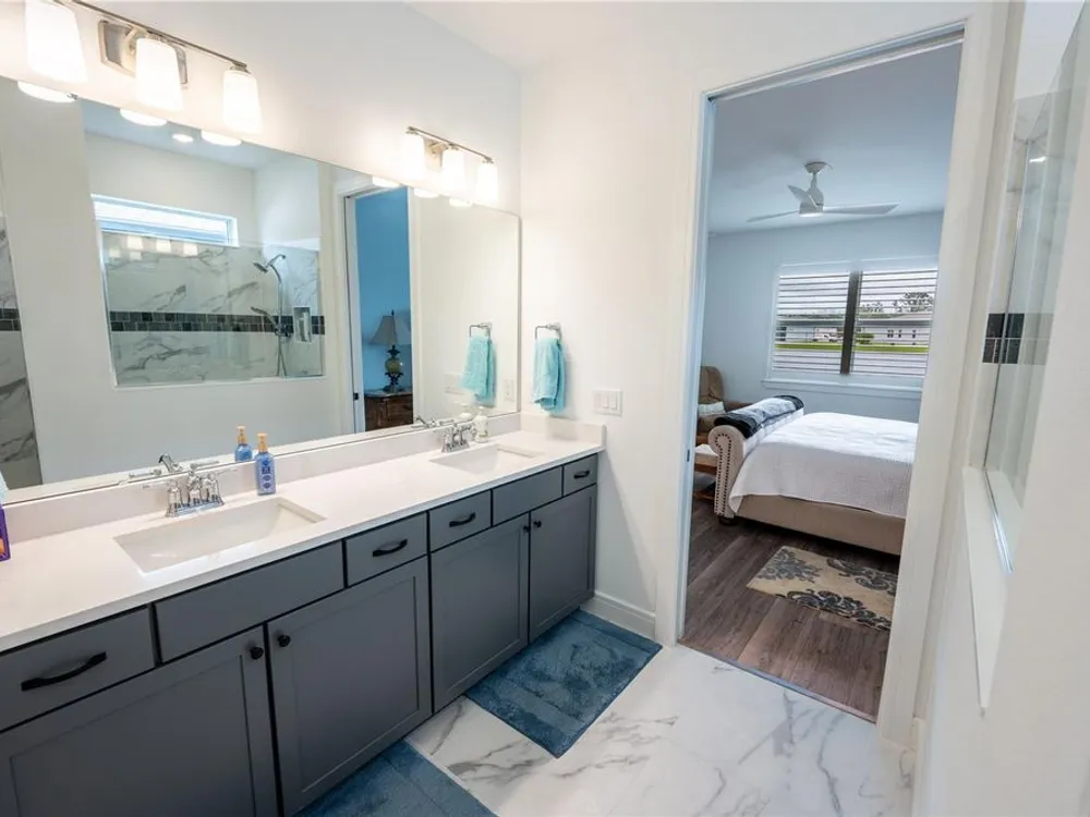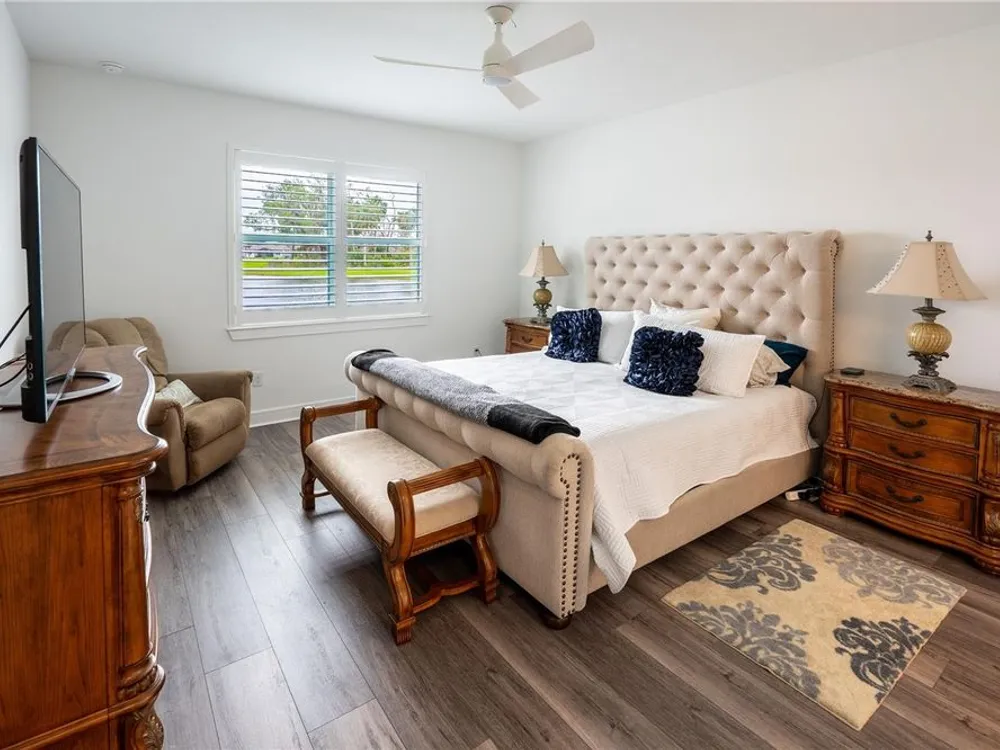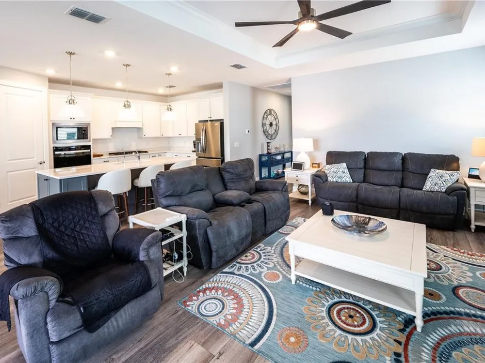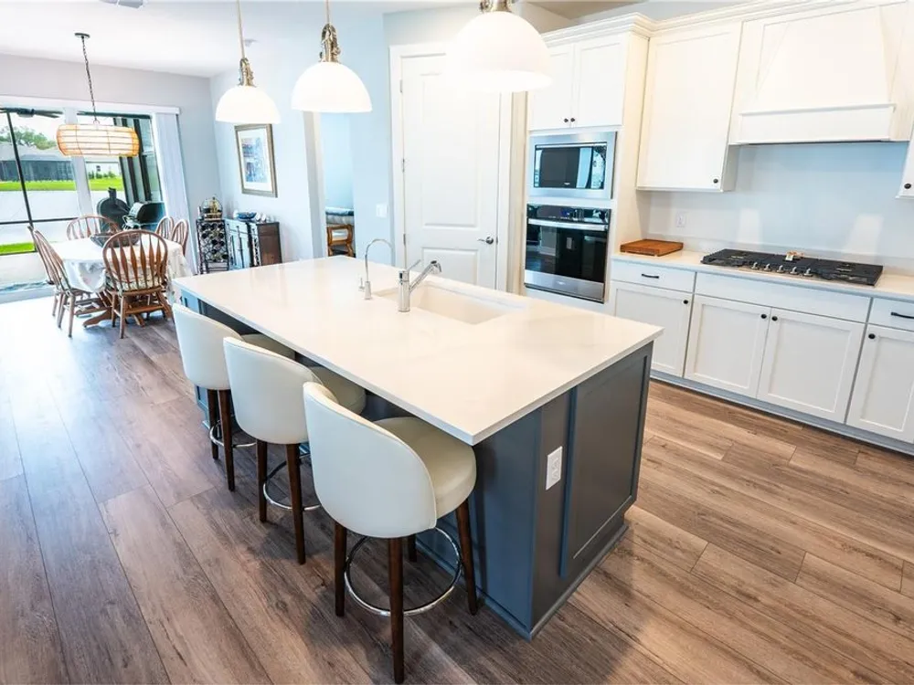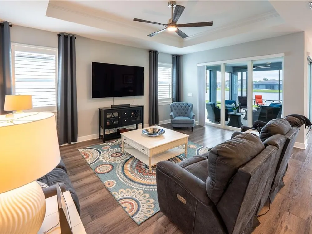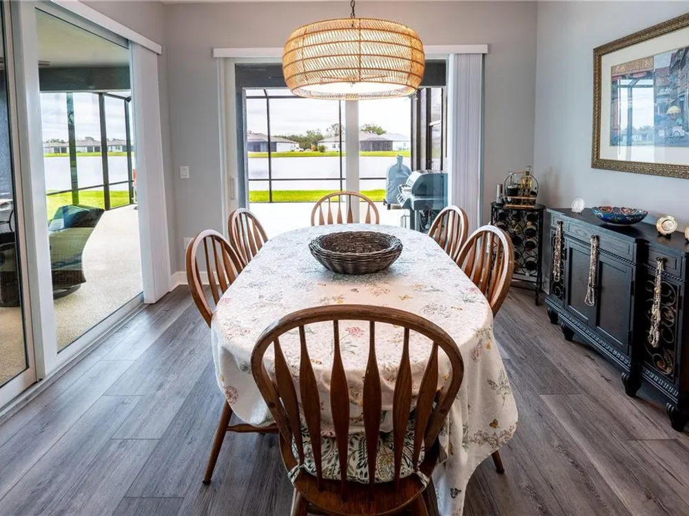 Price improvement!!! Imaging drinking coffee to gorgeous sunrises with a wide open pond view. To just say this 2/2/3 + flex room is move-in ready does not do it justice. The list of upgrades is extensive, both in the design and post construction. Starting with the designer kitchen, featuring quartz counters, granite sink, built in appliances, under cabinet lighting, gas cooktop, canopy hood, and a walk-in pantry, it is sure to be the heart of many gatherings to come. The open concept is highlighted with three impact sliders in the back, blending your indoor and outdoor spaces together with ample natural light. The screened-in lanai extension was added to make for 626 sq/ft of outdoor space to enjoy the beautiful evenings overlooking the water. Other upgrades include the owner's bathroom, elevation, impact windows, fixtures, LVP waterproof flooring (no carpet anywhere!), tray ceilings, baseboards, laundry room, and french doors for the flex room. For the full list of upgrades please contact your agent or the listing agent. Need storage space? The tandem 3 car garage has a 4' extension with a fresh epoxy coating and the driveway has been widened! When venturing outside your new home, the community offers top notch resort style amenities, including a 24hr fitness center, dog park, pool, spa, tennis and pickleball courts, bocce ball and a full service bar and restaurant! Join the active lifestyle with plenty of community events and clubs to choose from. The area is thriving with quick access to St. Pete, Tampa, Sarasota and world class beaches!