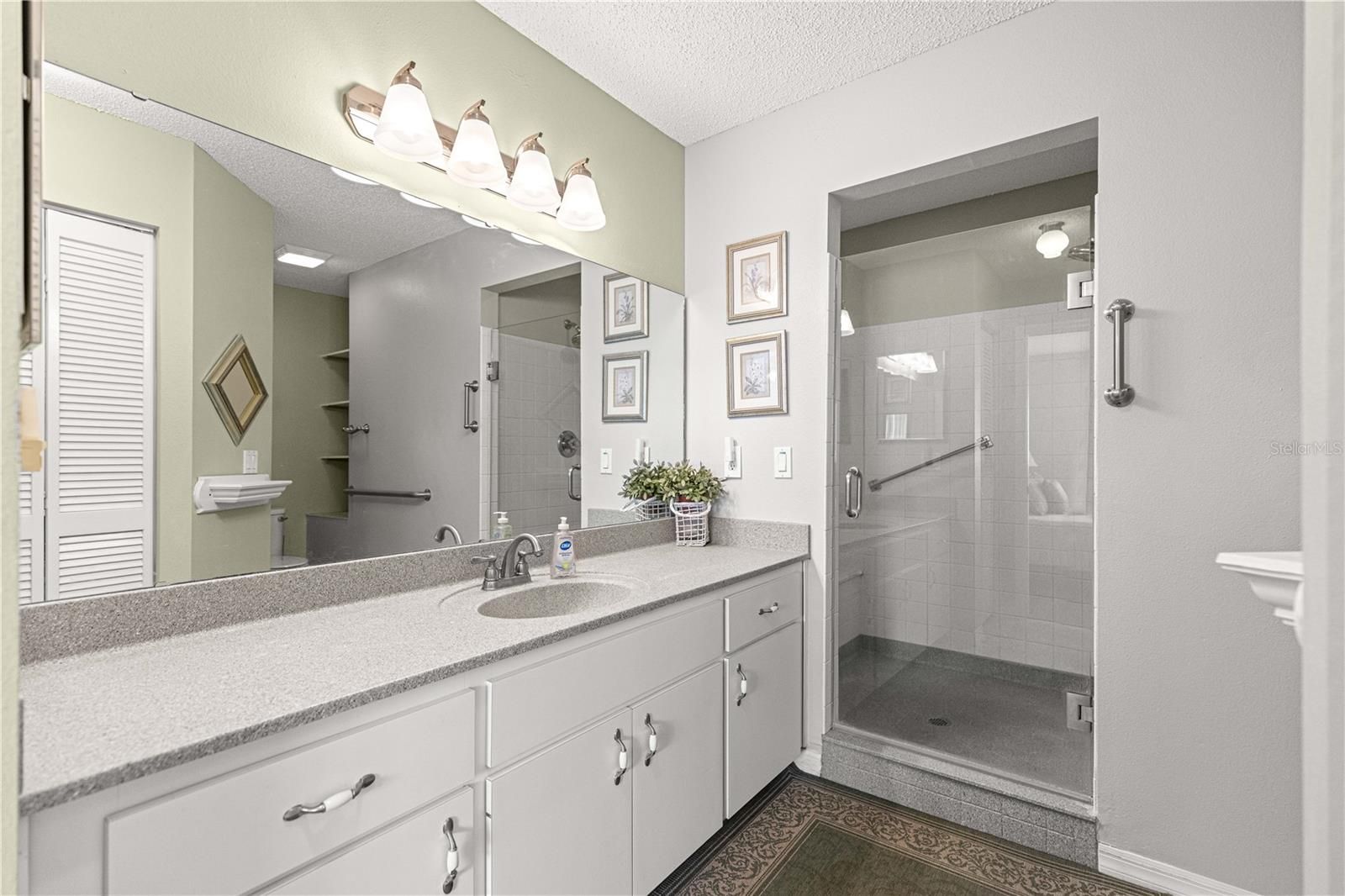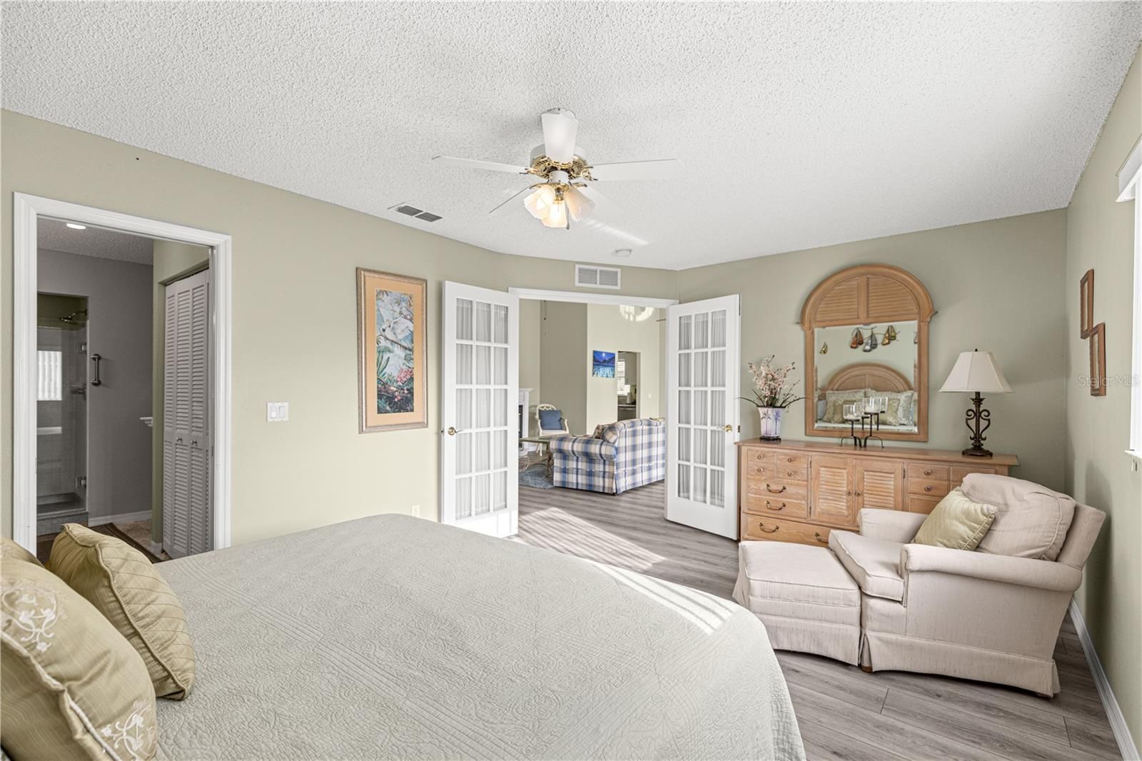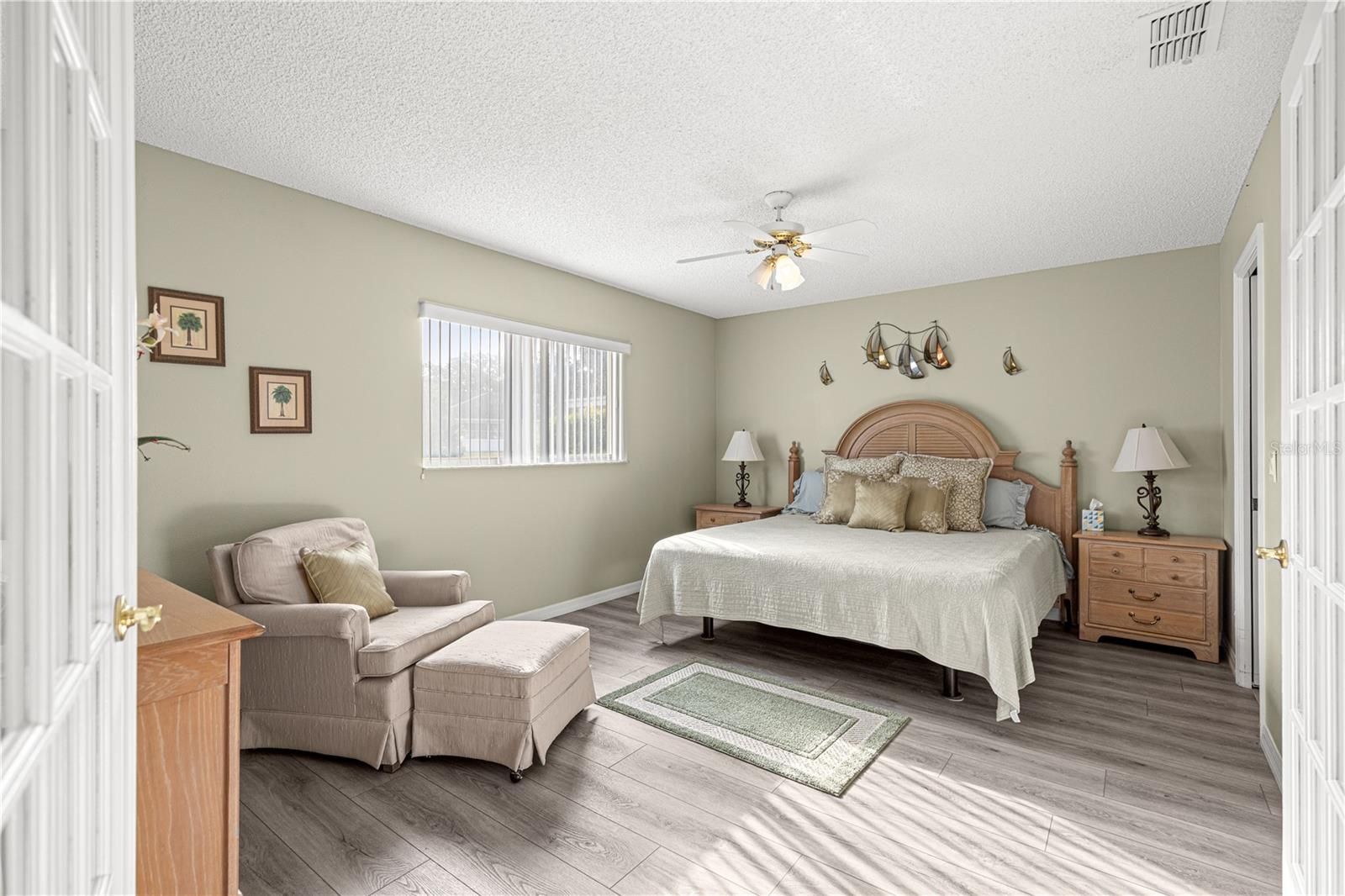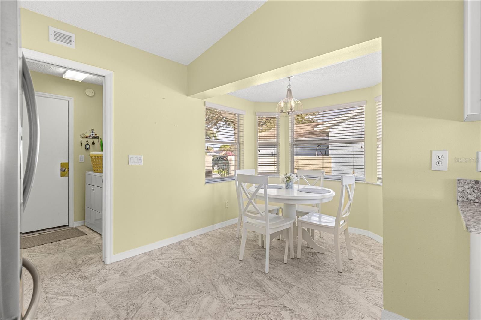 - Attic Ventilator, Cathedral Ceiling(s), Ceiling Fan(s), Eat-in Kitchen, Living/Dining Room, Open Floorplan, Main Level Primary, Solid-Wood Cabinets, Split Bedrooms, Stone Counters, Thermostat, Walk-In Closet(s), Window Treatments