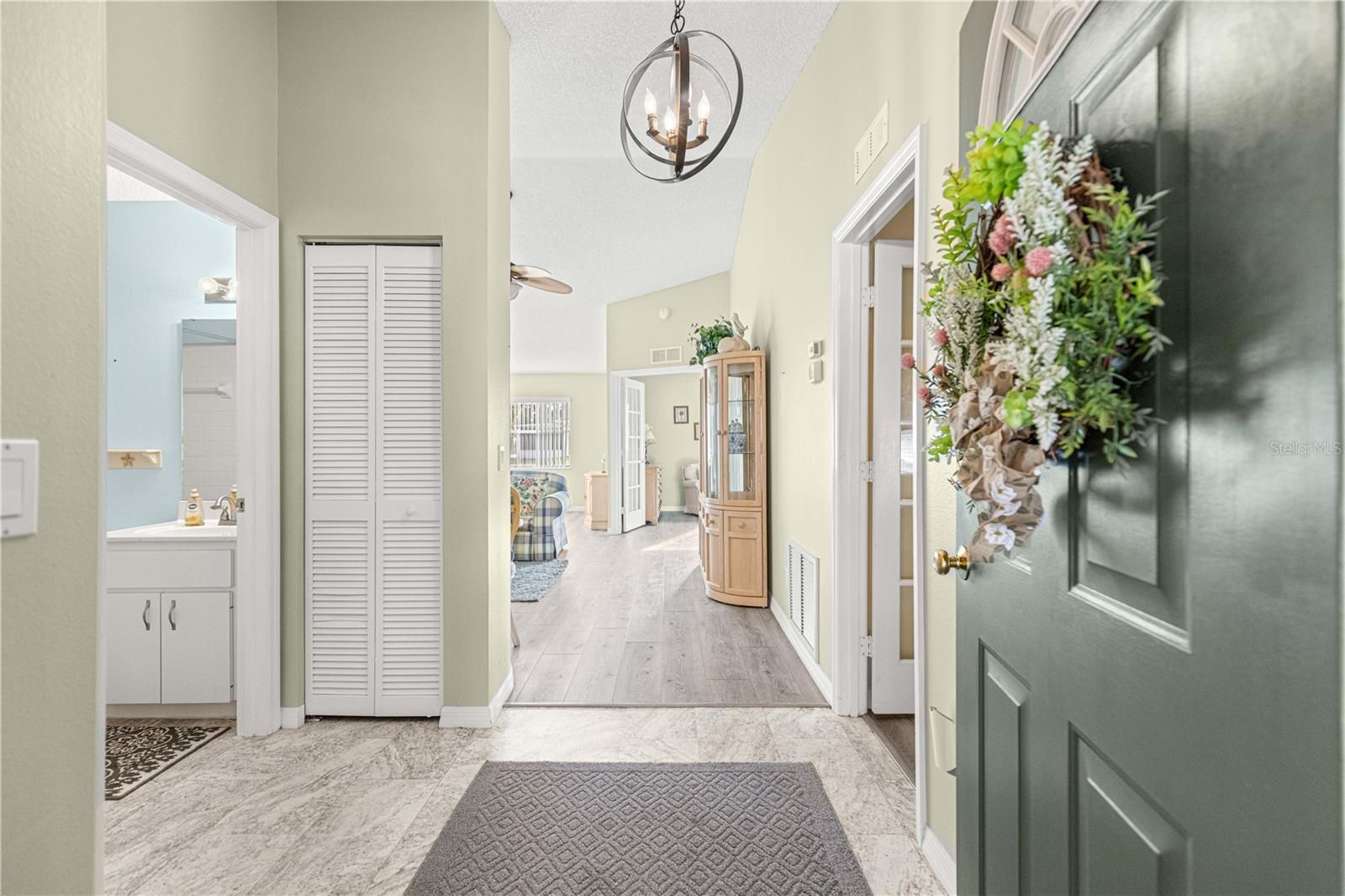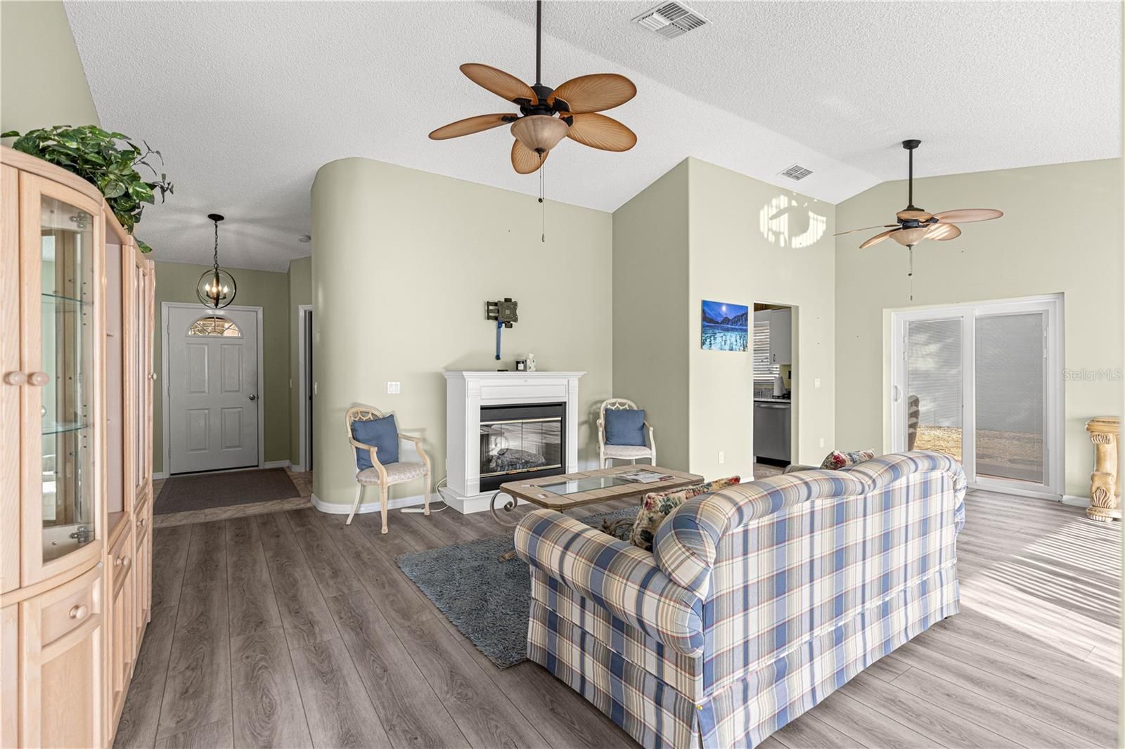 *** BRAND NEW WATER HEATER 12/2025! PRIVATE COURTYARD SINGLE FAMILY HOME! Popular Expanded Franklin Model Single-Family Private Courtyard Home in the Williamsburg Neighborhood of On Top of the World, Premiere 55+ Gated Golf Community in SW Ocala FL! Solid surface floors throughout this split bedroom plan home with 3 bedrooms, 2 baths, 2-car garage is an Expanded Franklin model with extended living space and a private courtyard to the left. ROOF 2014, HVAC 2013. Notice the beautiful 2013 beveled glass storm door as you step into the foyer with bedroom #3 on the right (being used as a den), guest/hall bath w/tub & tile surround on the left that can be accessed via the foyer/hall or guest bedroom #2’s pocket door. Both guest bedrooms are large with more than ample closet space. Moving back through the home into the Great Room notice the vaulted ceiling and expanded living space and views out back! French doors lead to the primary bedroom located in the back right of the home for privacy w/walk-in closet. The primary en suite bath has a large vanity, custom finished step-in shower with seat and solid glass door, comfort height toilet, and linen closet. Notice upgraded light fixtures and ceiling fans throughout. Beautiful French Doors w/blinds between the grids provide access to the gigantic private courtyard (your neighbors don’t have windows on your courtyard!). The large kitchen includes a bump out for table space. Quartz counters, newer appliances including a slim line microwave and deep sink make this a chef’s dream kitchen! The laundry room is off the kitchen via pocket doors, with additional access to the garage! The private courtyard is one of the widest in the neighborhood with Green Space in between back neighbors. This home is an entertainer’s dream with lots of inside space, well equipped kitchen, and the courtyard for FL outside living! The monthly HOA fee includes Basic Spectrum Cable, roof repair, exterior painting every seven years, exterior maintenance and insurance, landscaping, trash & recycling, 24/7 monitored gates and all the amenities that OTOW has to offer; three pools (2 outside & 1 inside & another under construction), two state of the art fitness centers, pickleball, billiards, archery range, corn hole, bocce ball, tennis, shuffleboard, horse shoes, remote control flying field and race cars, 175+ clubs, woodworking shop (extra fee), library, and much, much more! A golf cart community with access to three shopping centers. Centrally located 20 minutes from the World Equestrian Center, easy drive to 4 cruise ports and/or airports, and close proximity to entertainment complexes in Orlando. Some furniture available. ***FURNITURE NOT AVAILABLE: KITCHEN TABLE & CHAIRS, BLUE/WHITE HANDPAINTED HUTCH IN LIVING ROOM, ALL FURNITURE IN GUEST ROOM, PERSONAL ITEMS IN PRIMARY WALK-IN CLOSET, & PRIMARY BEDROOM HEADBOARD.